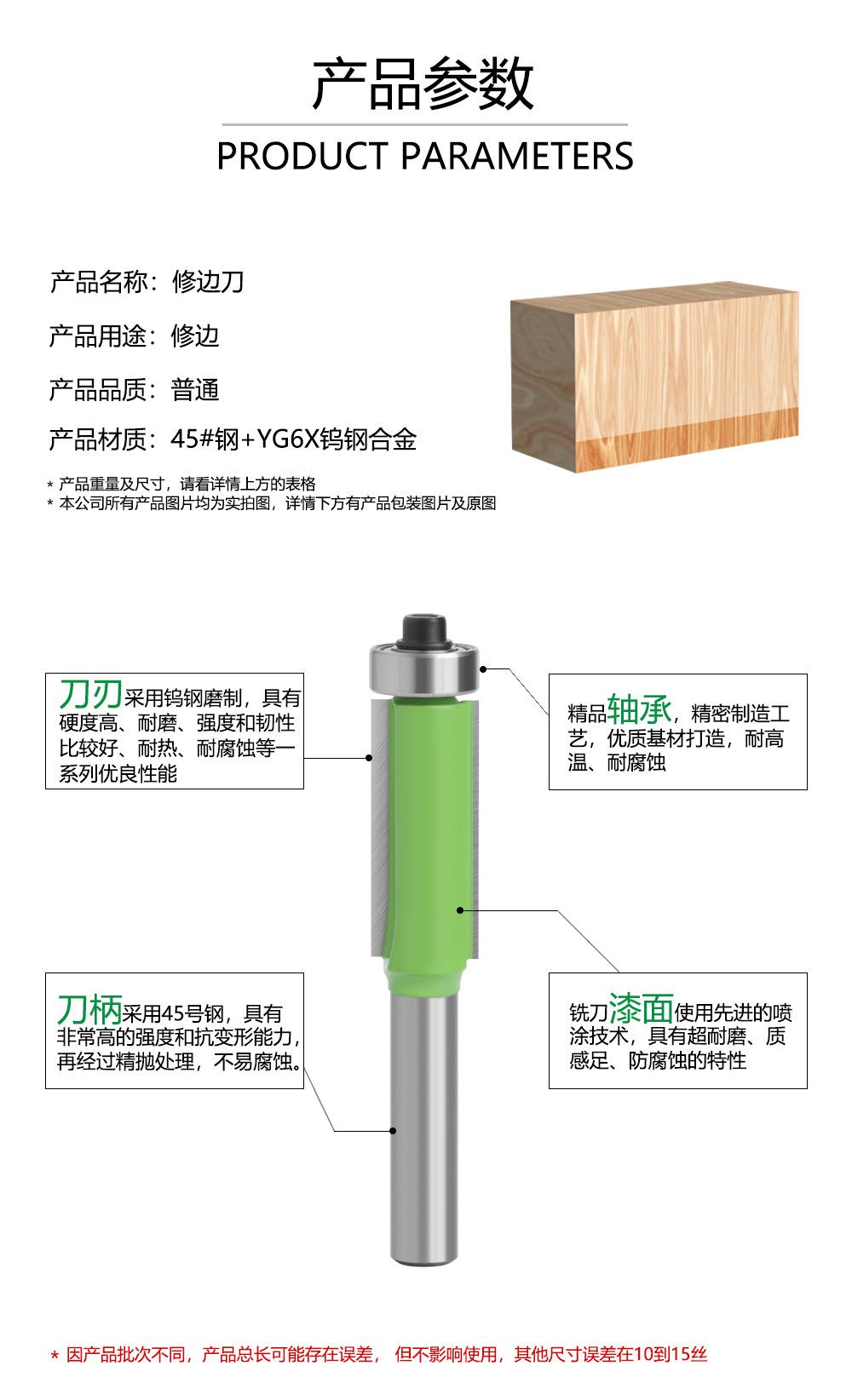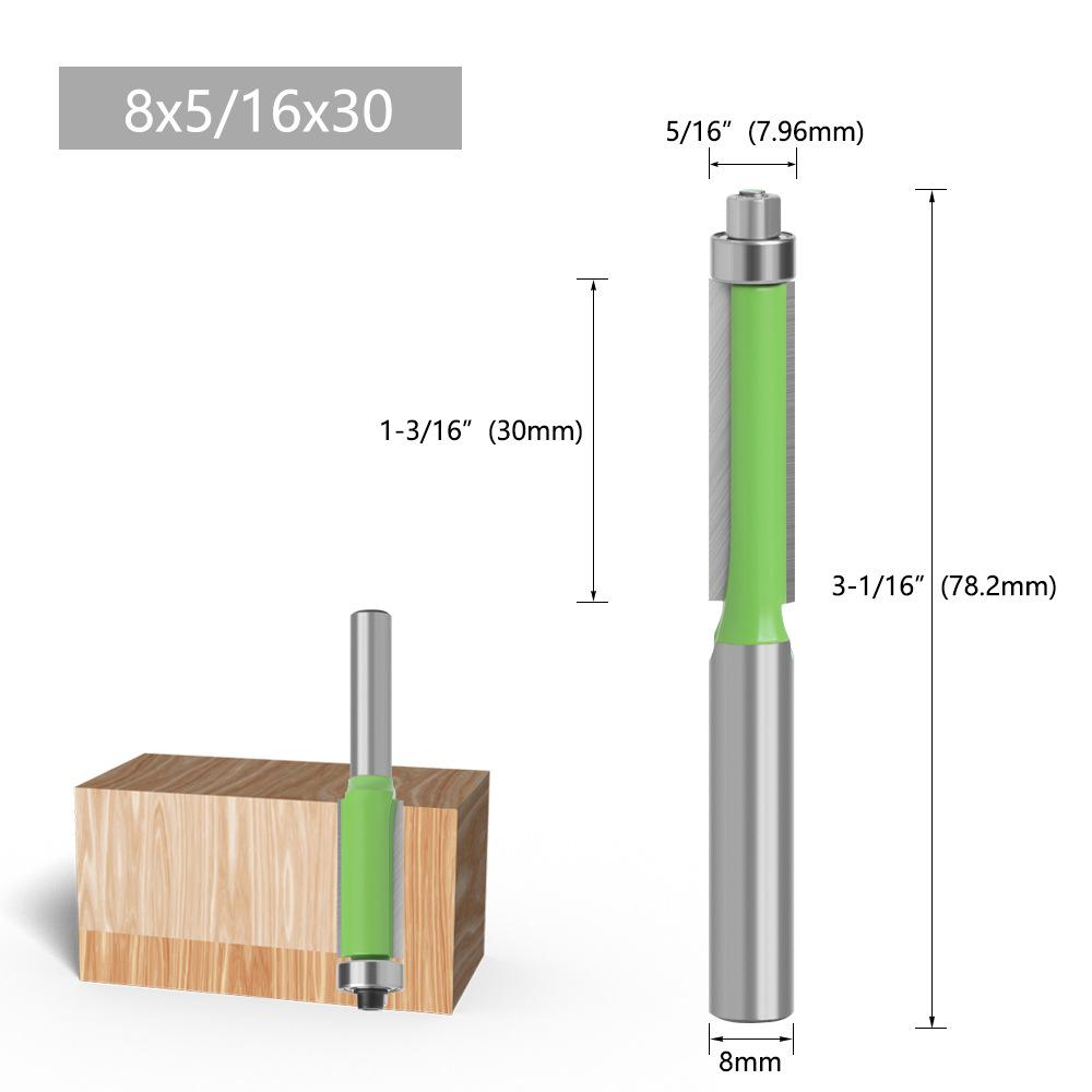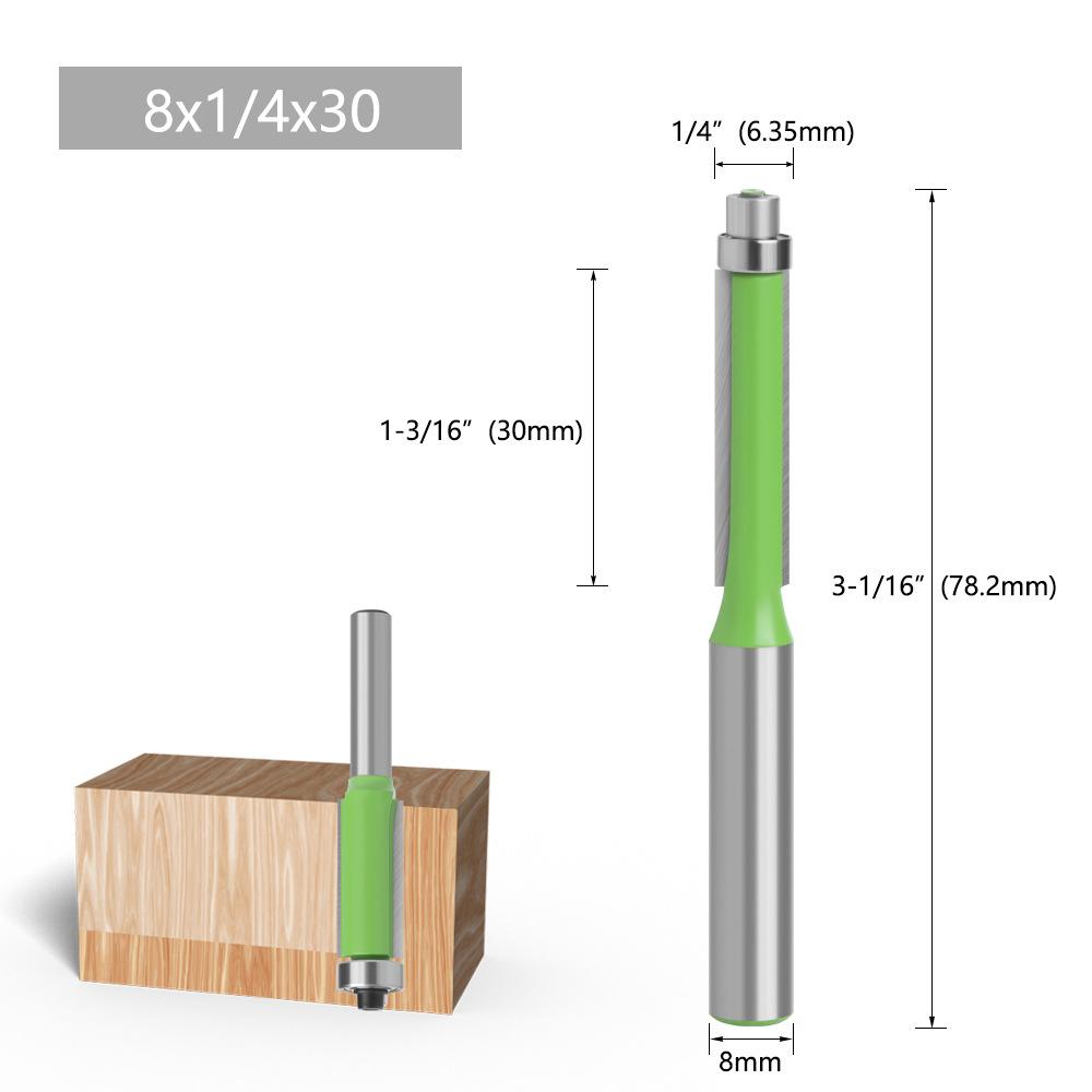 Los mangos de las fresas para carpintería incluyen: 3 mm, 6 mm, 1/4" (6,35 mm), 8 mm, 12 mm, 1/2" (12,7 mm)