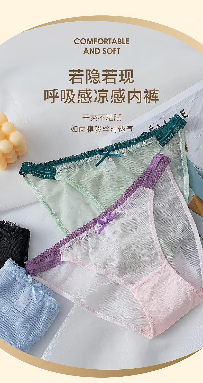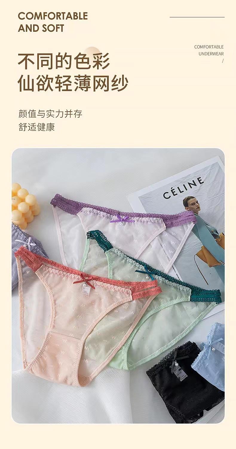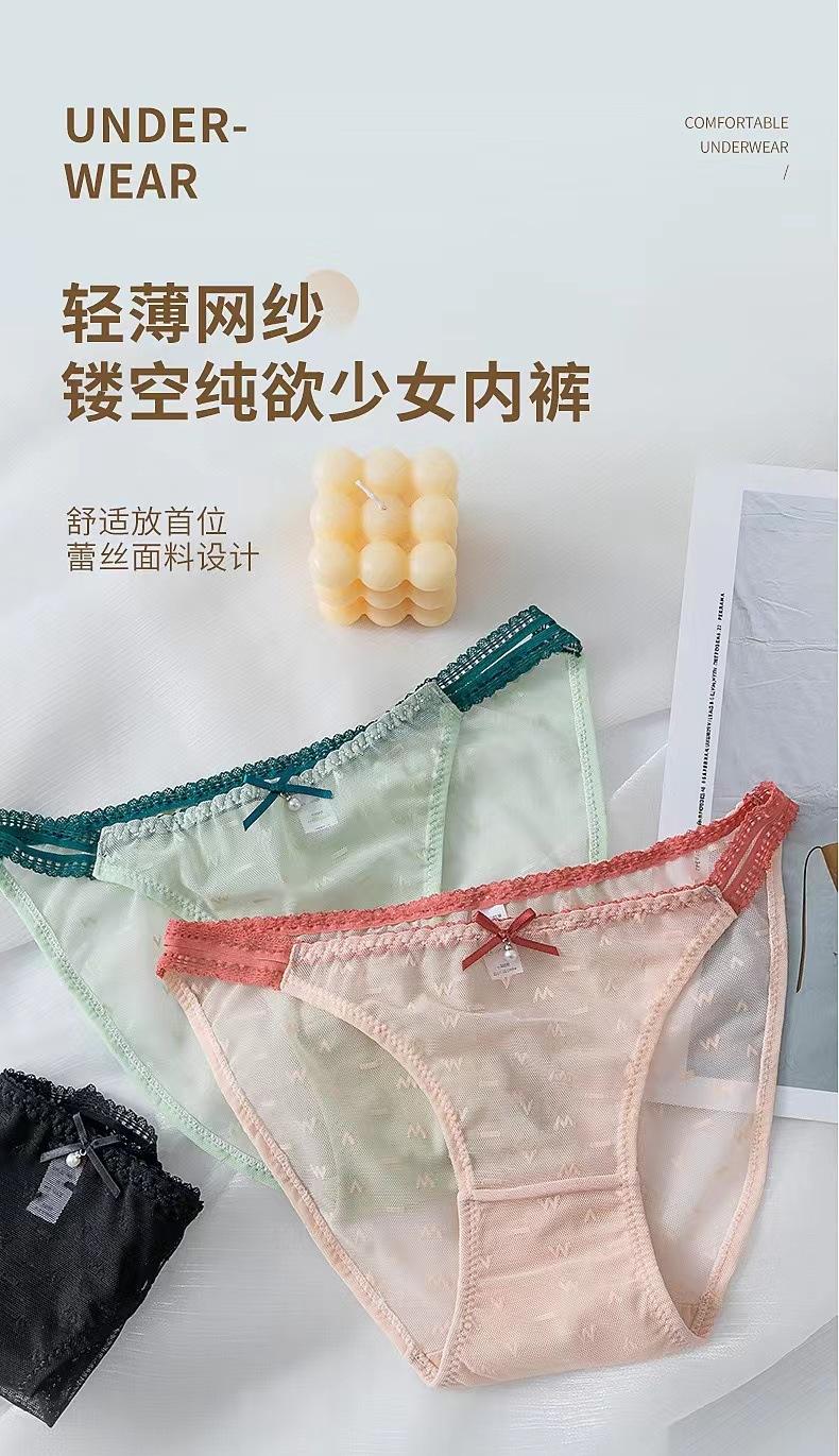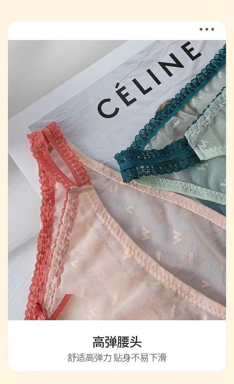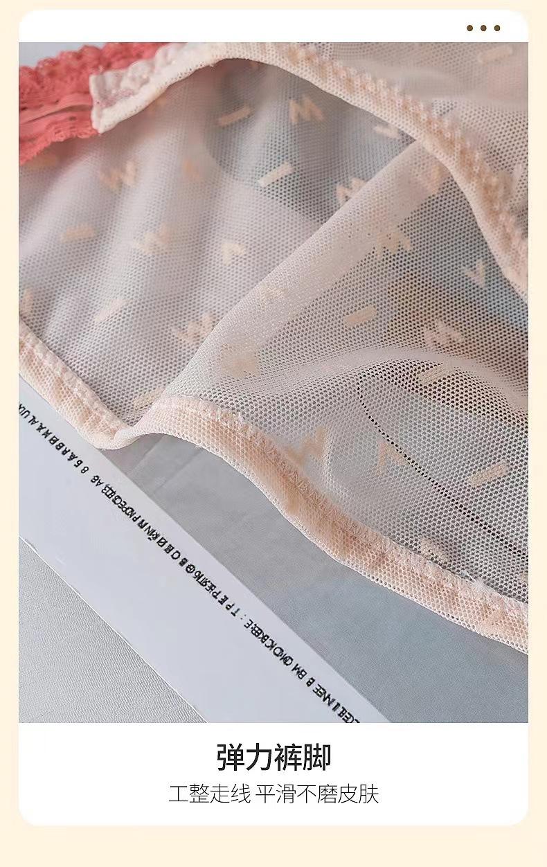 Ropa interior de encaje sexy con alfabeto elegante para niña, estilo dulce y puro deseo, cinturón fino, cintura media, entrepierna de algodón.