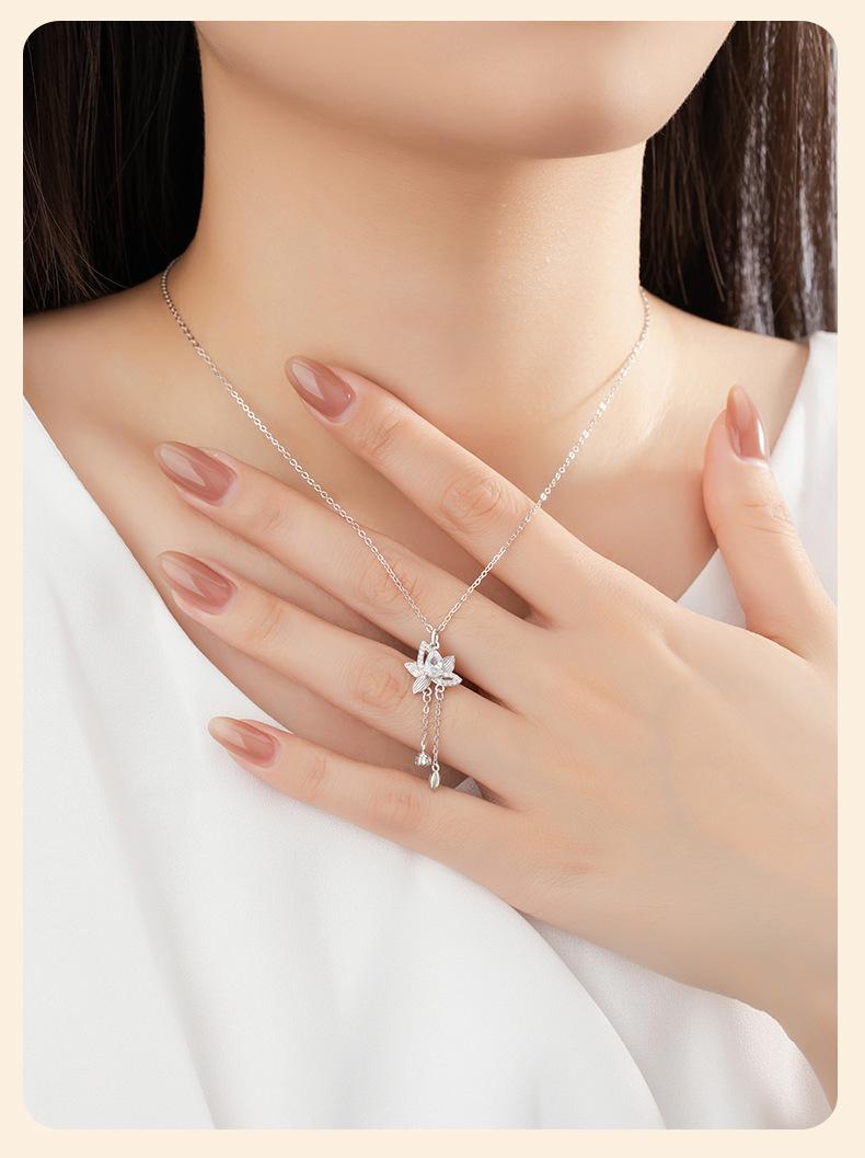 Collar giratorio de plata de ley 925 con copos de nieve navideños para mujer, diseño de nicho, cadena de clavícula con estrella de lujo ligera, colgante estilo ins