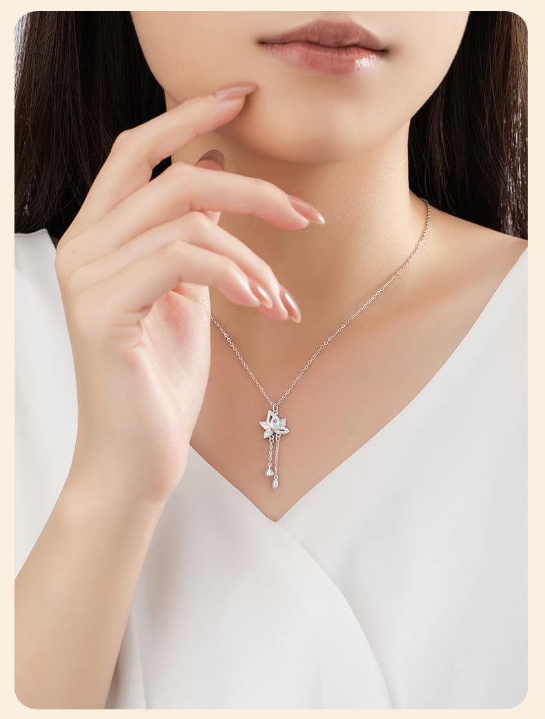 Collar de copo de nieve de plata esterlina 925 para mujer, estilo dulce y lindo, con piedra de vidrio a la deriva, cadena de clavícula con colgante navideño.