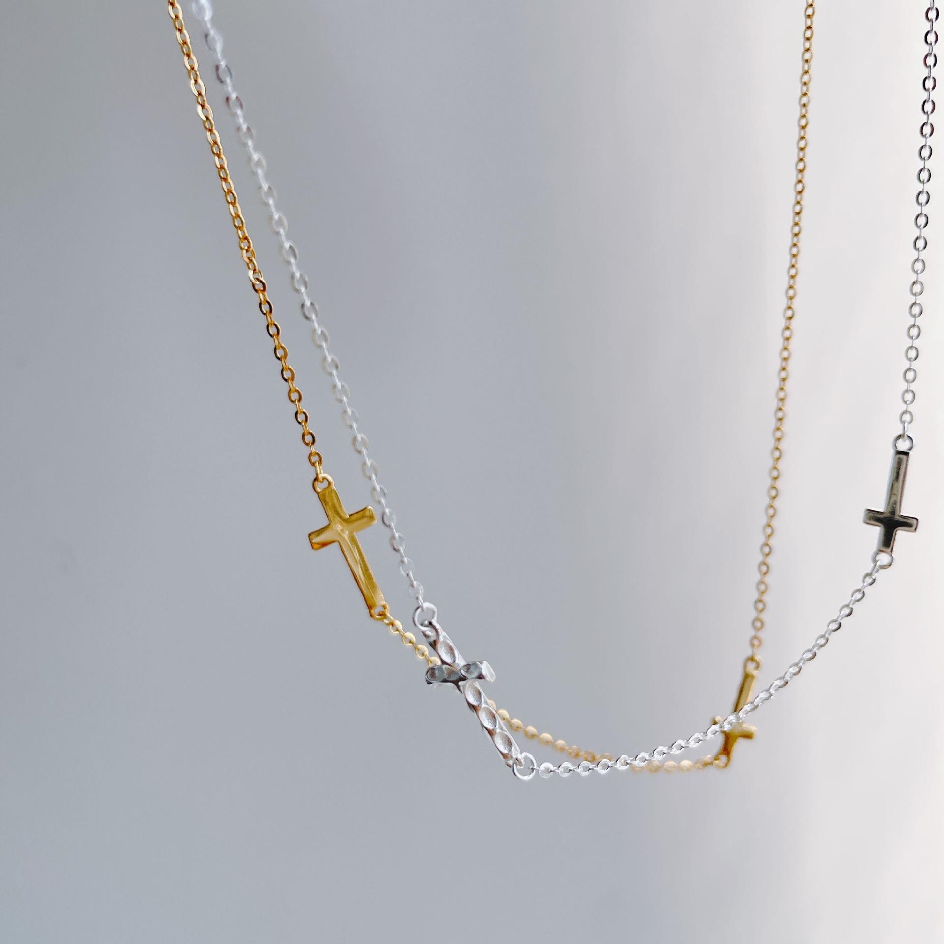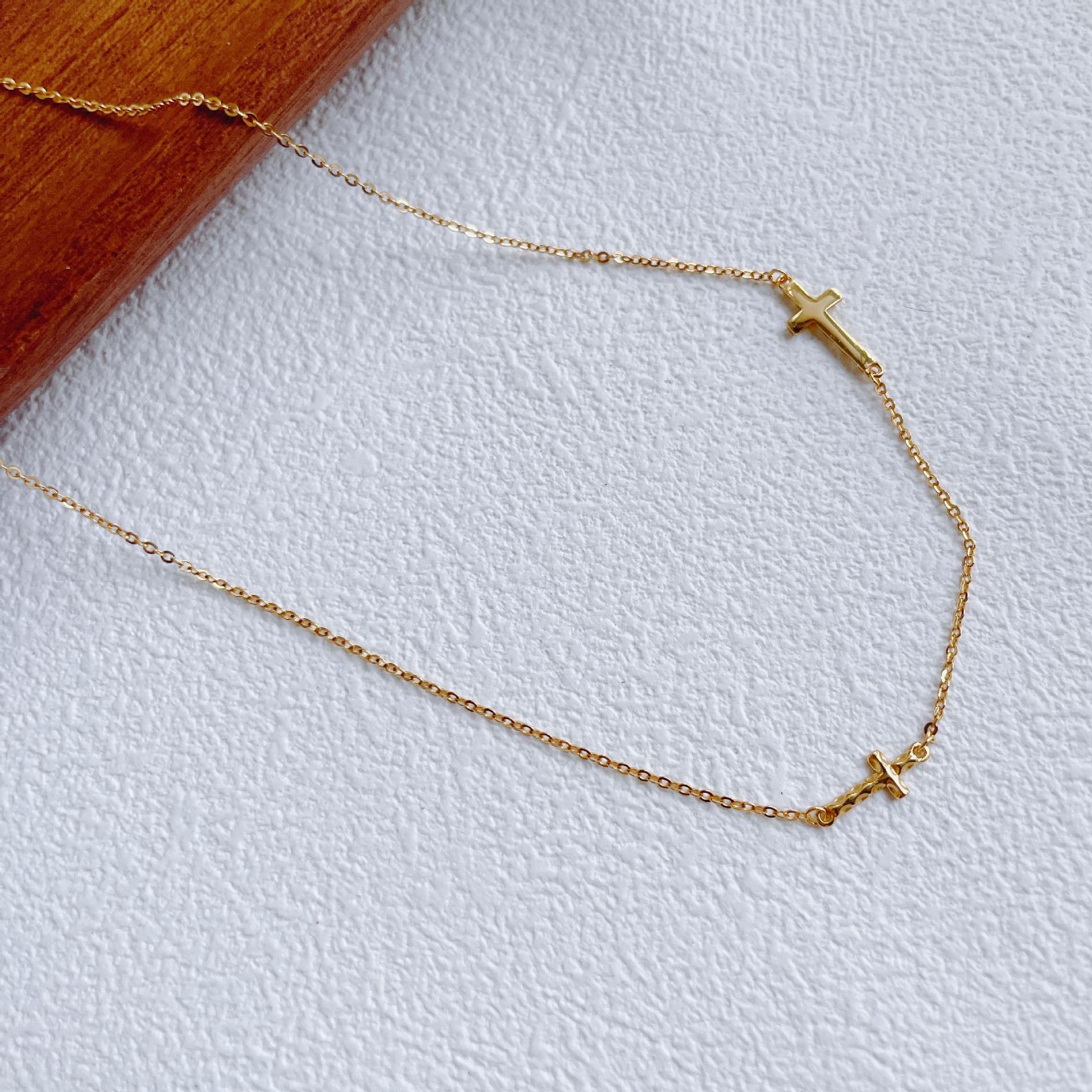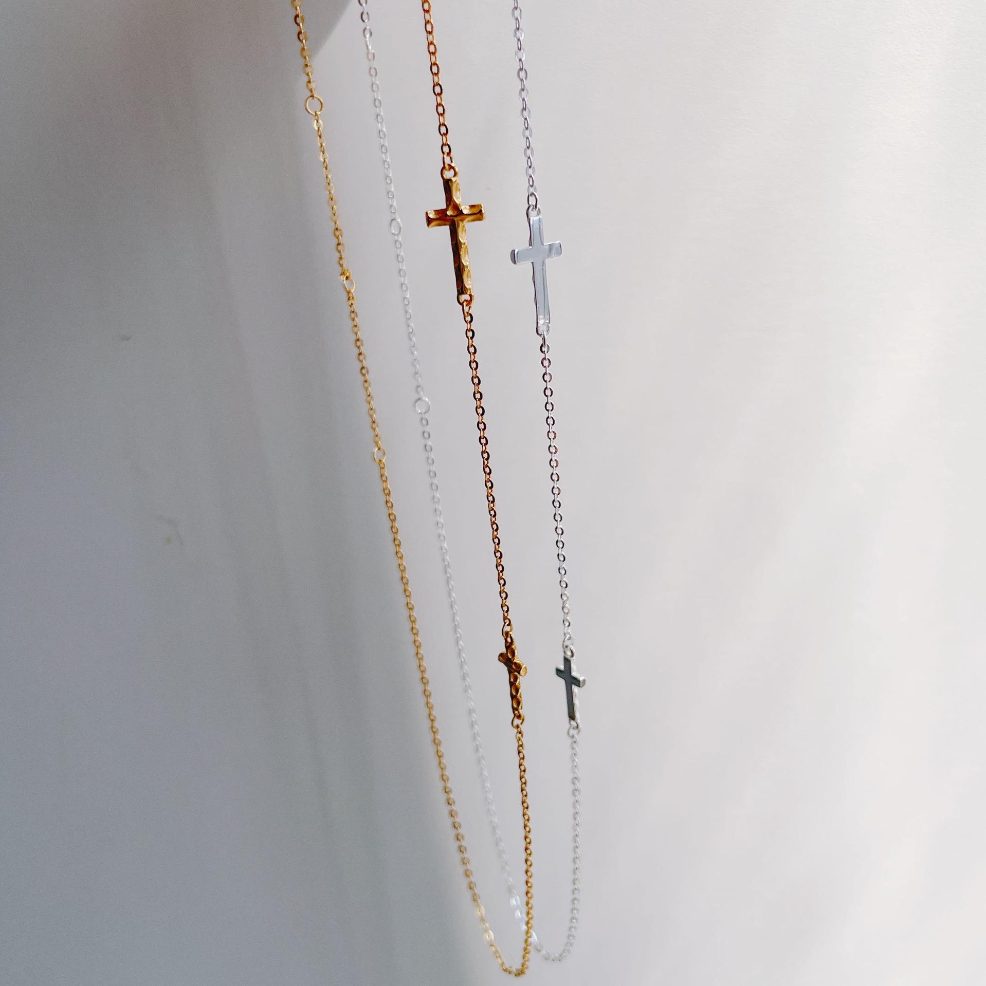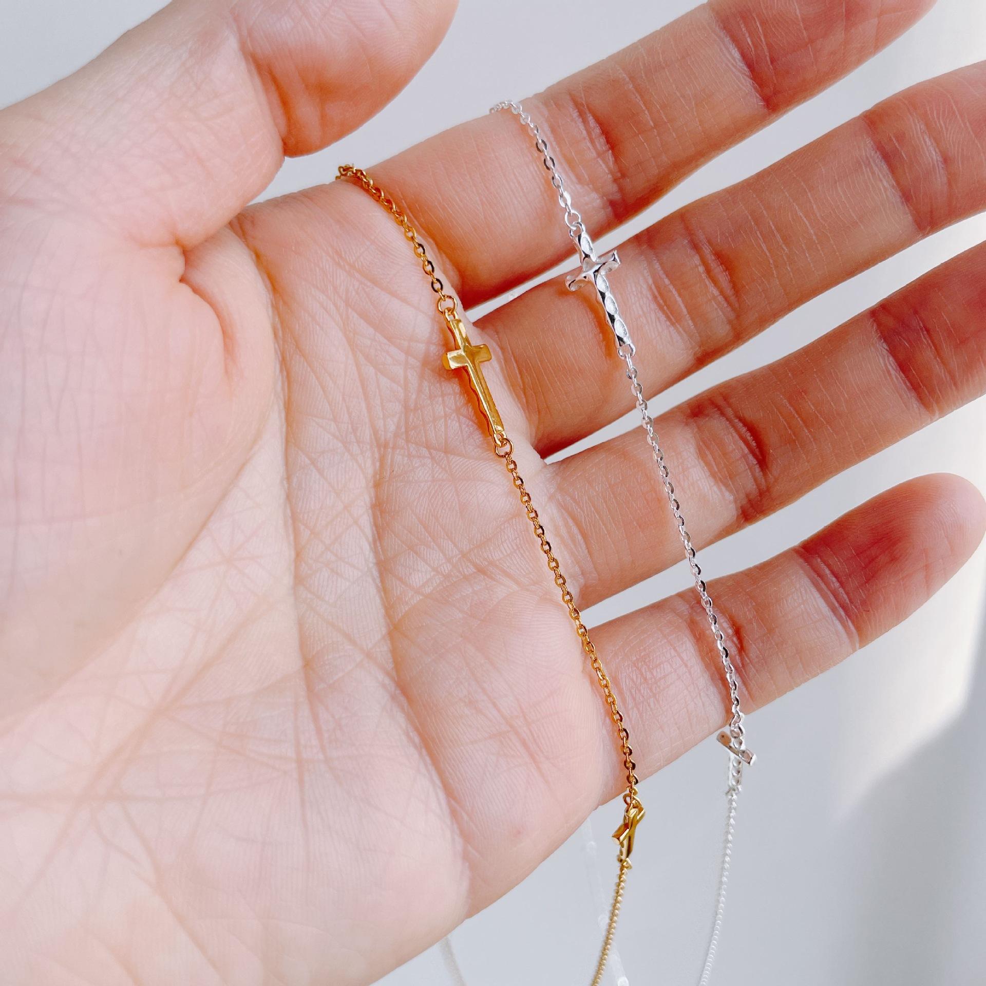 Collar de Cruz de Plata Esterlina 925 para Mujer, Exquisito y Compacto Ins Cadena Mini Plisada de Clavícula de Alta Gama Estilo Frío Joyería de Plata
