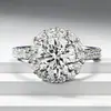 Zhuo Zhifan 2023 nuevo anillo de diamantes de imitación de plata S925 de 8 mm con diamantes blancos redondos, moda simple para mujeres, estilo europeo y americano