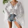 Blusa de playa de verano nueva europea y americana para mujer, de punto liso, hueca, para bikini, ropa de baño con protección solar