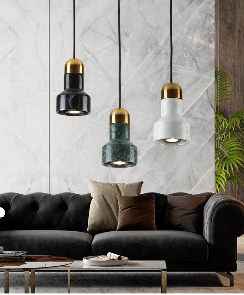 Lámpara de araña pequeña de mármol para mesita de noche de dormitorio posmoderna, lámpara de araña de pasillo de bar de restaurante de diseño nórdico simple de lujo