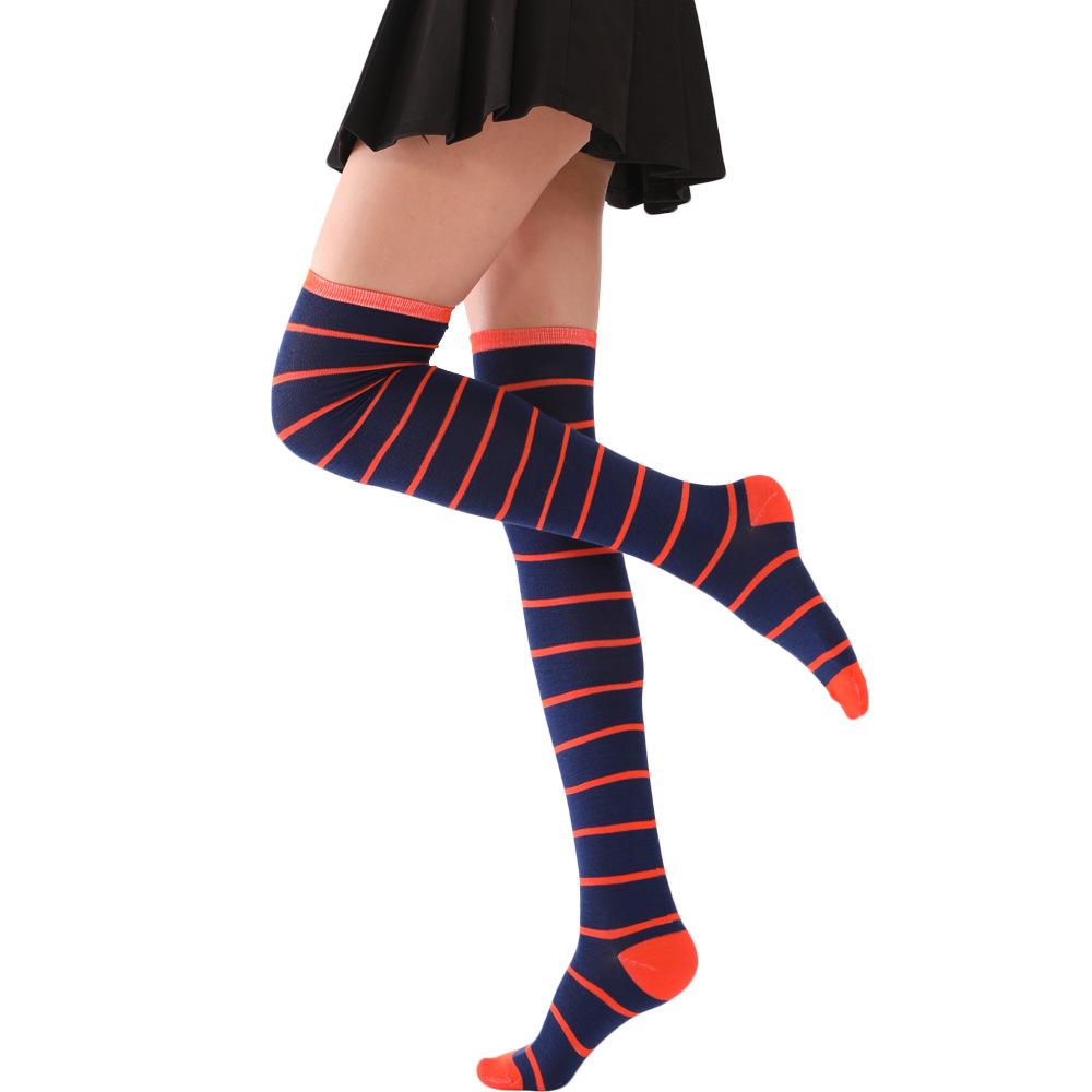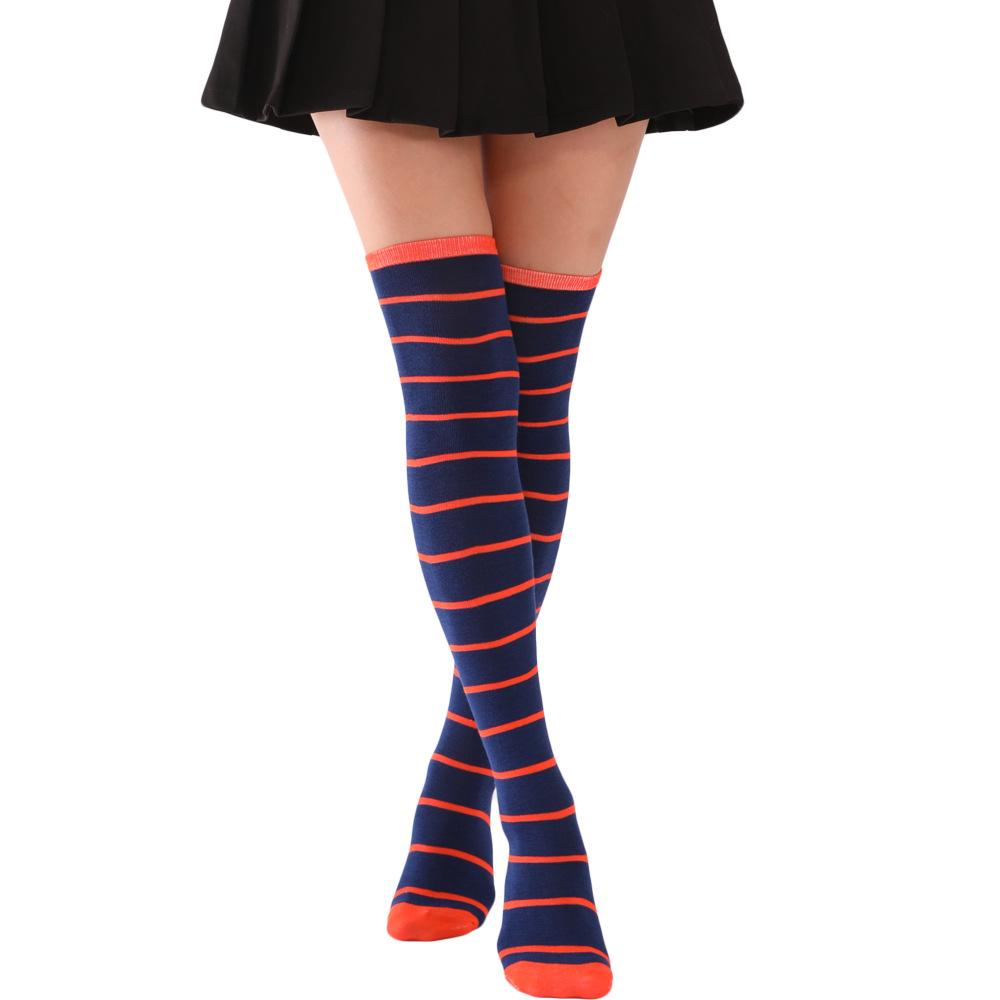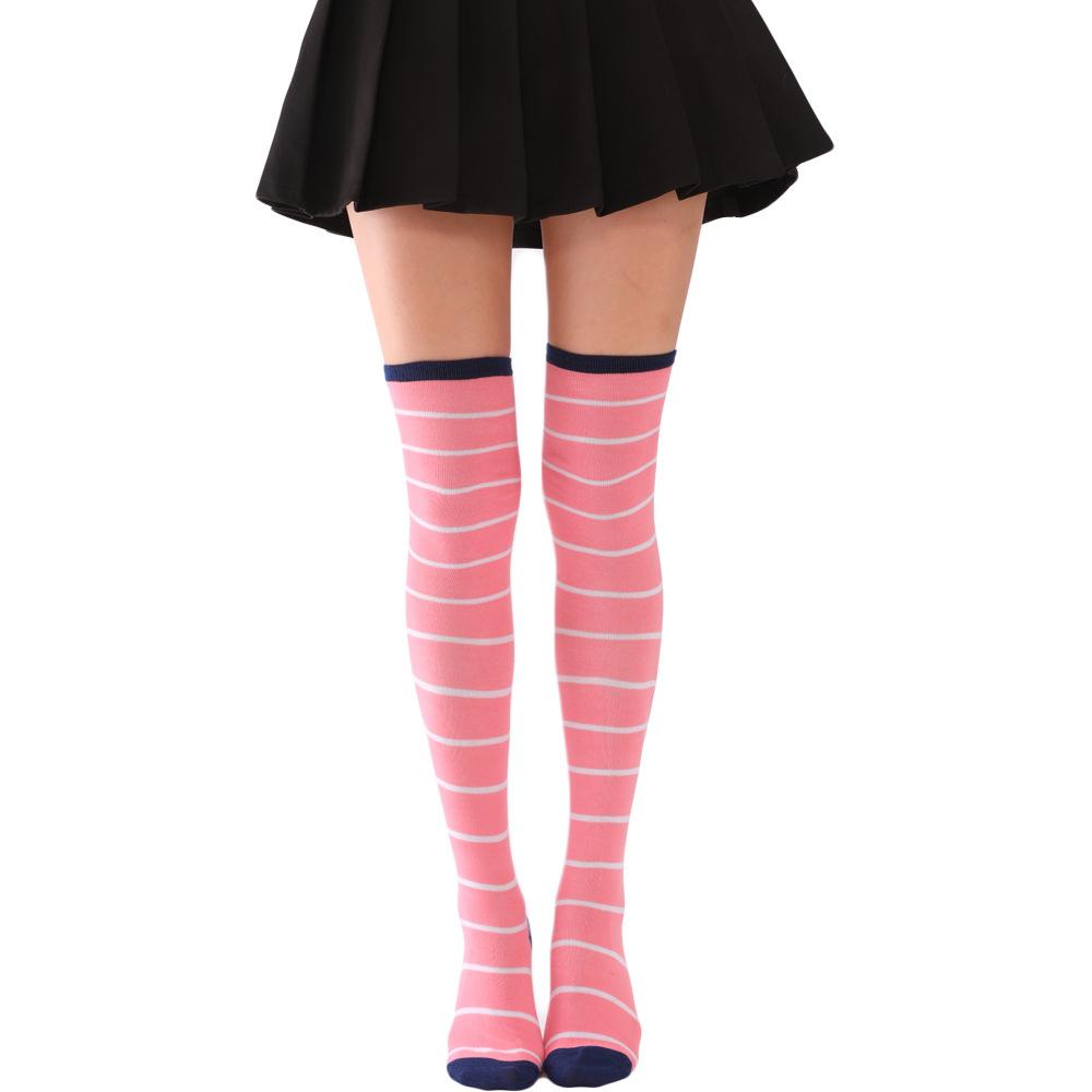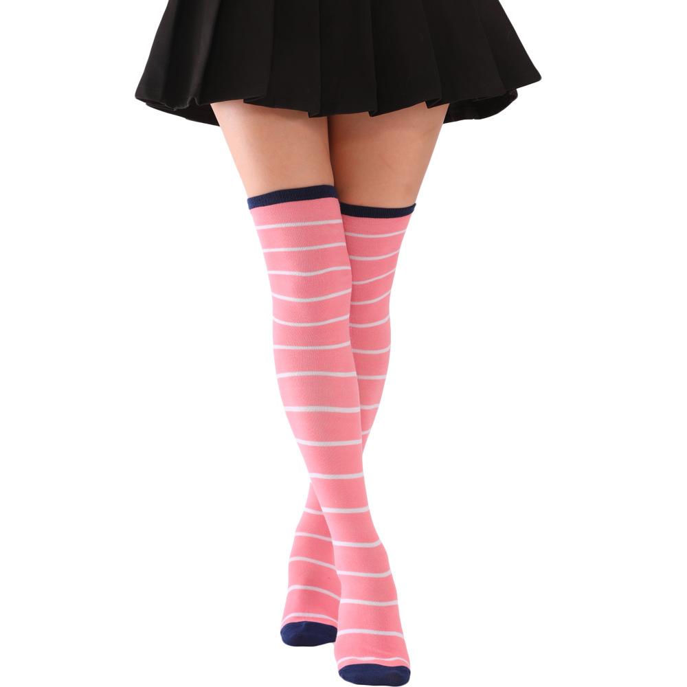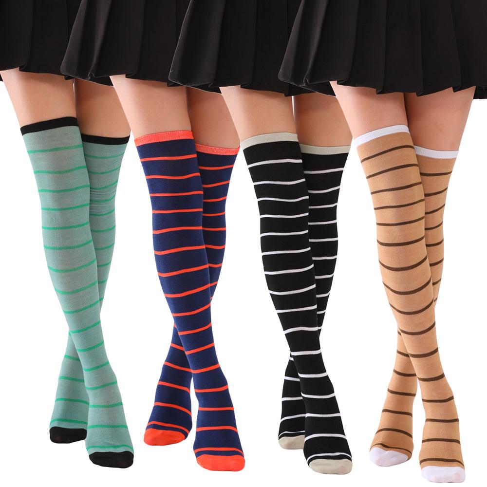 Calcetines por encima de la rodilla para mujer, de raya diplomática, estilo académico, informales, para espectáculos de danza, con un solo alfiler, 2024