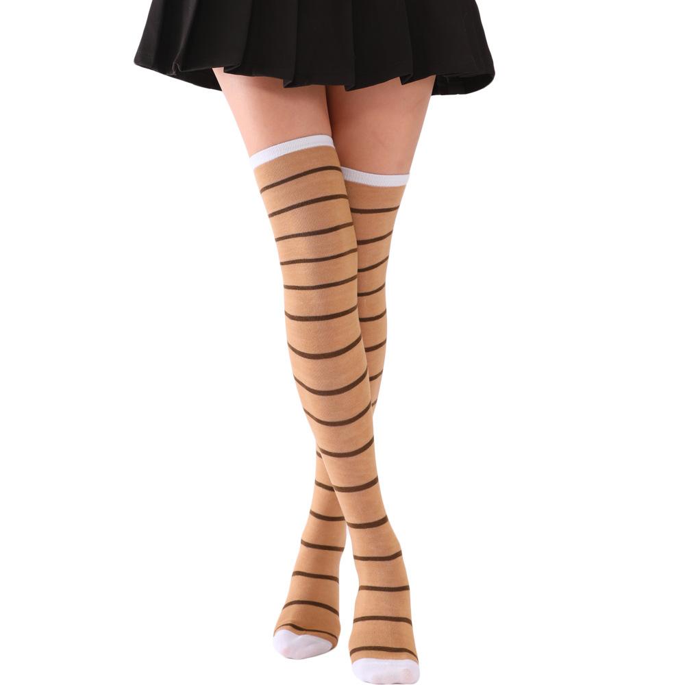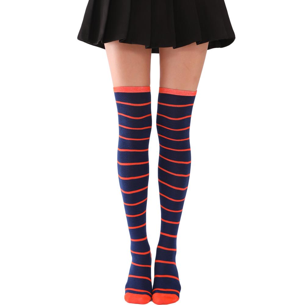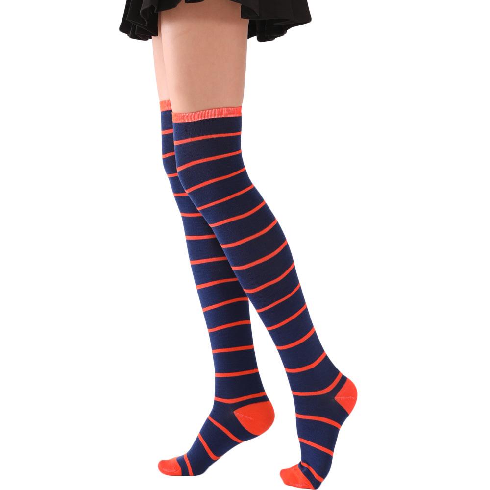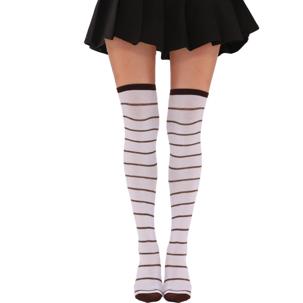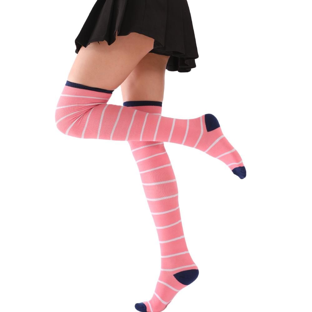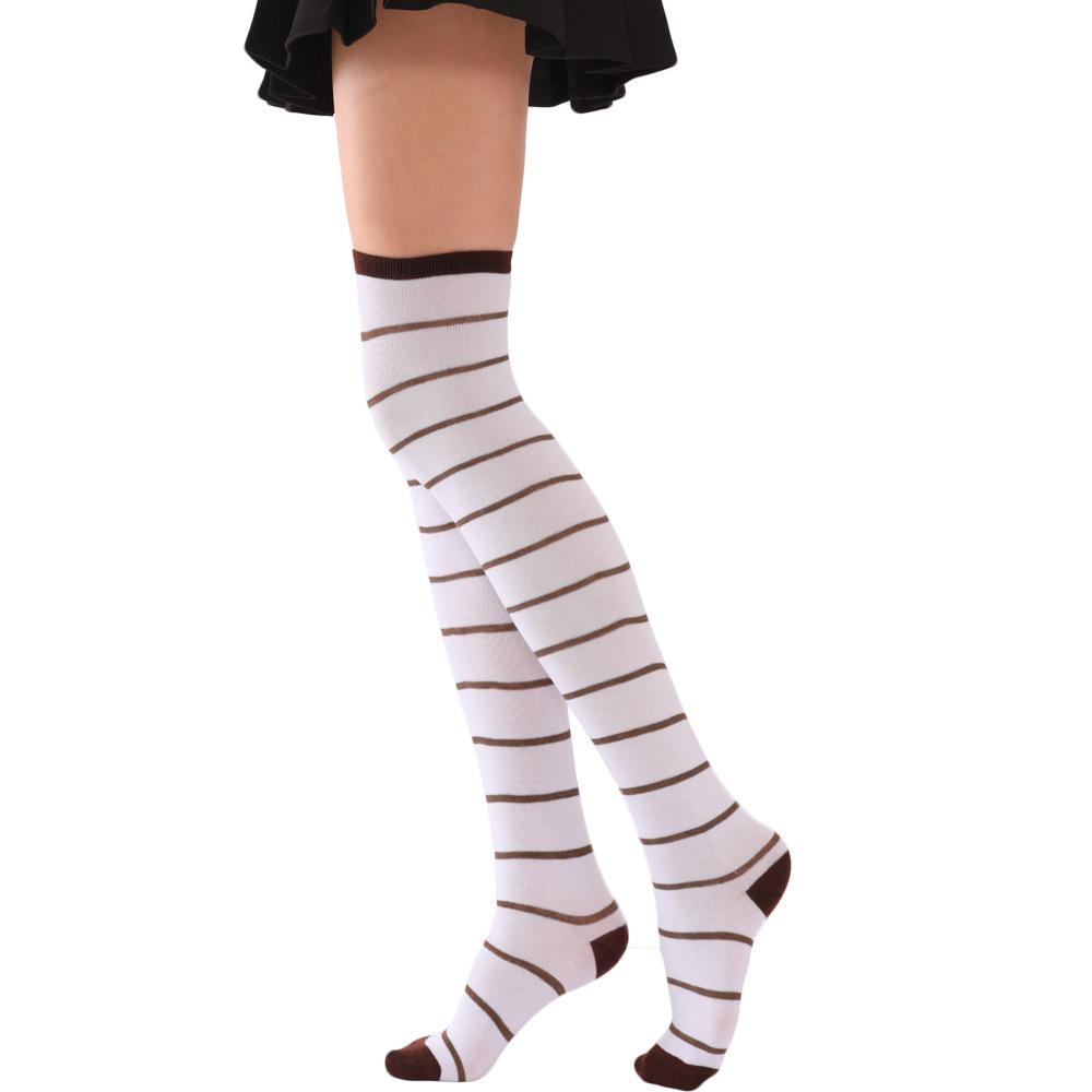 Calcetines por encima de la rodilla para mujer, de raya diplomática, estilo académico, informales, para espectáculos de danza, con un solo alfiler, 2024