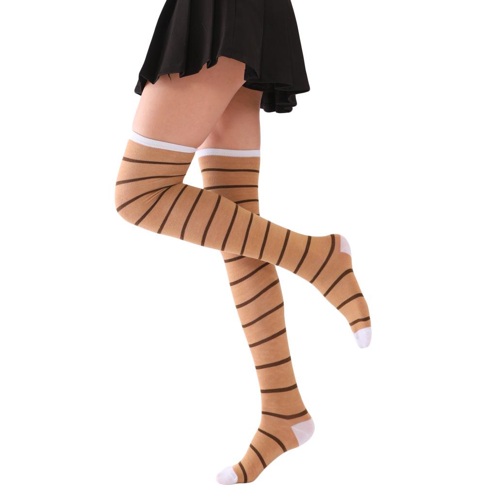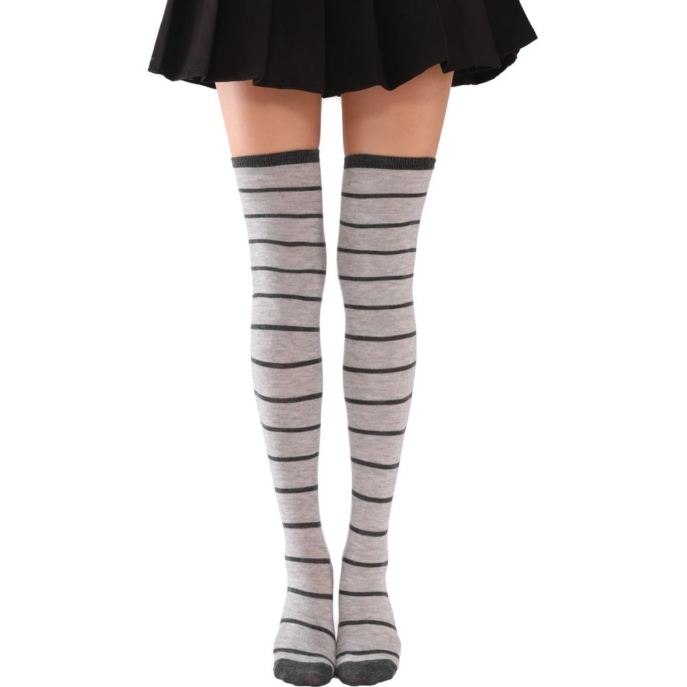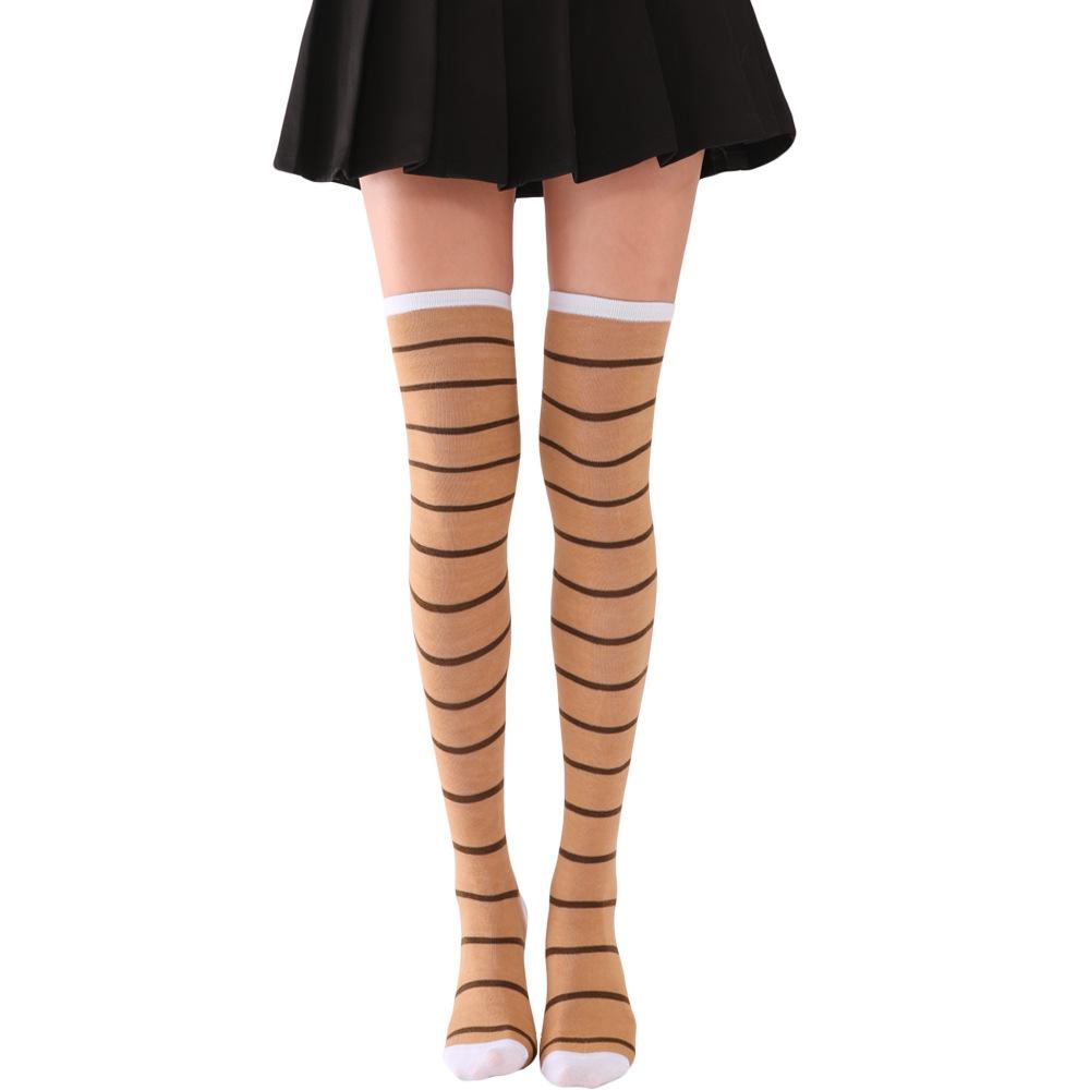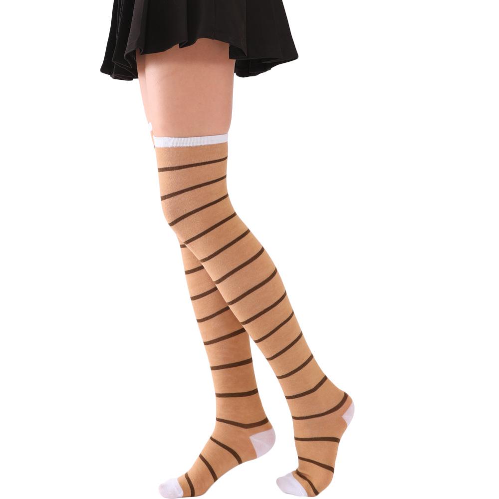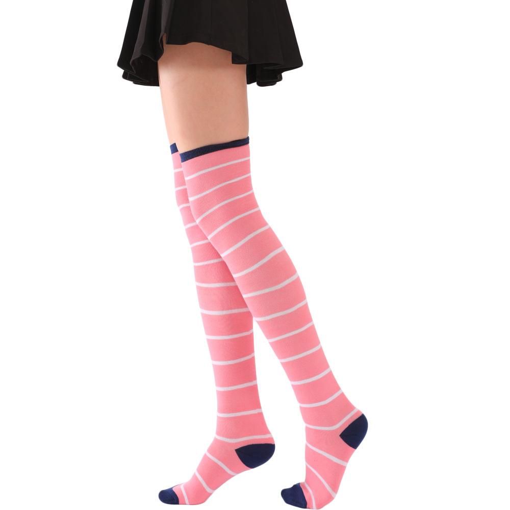 Calcetines por encima de la rodilla para mujer, de raya diplomática, estilo académico, informales, para espectáculos de danza, con un solo alfiler, 2024