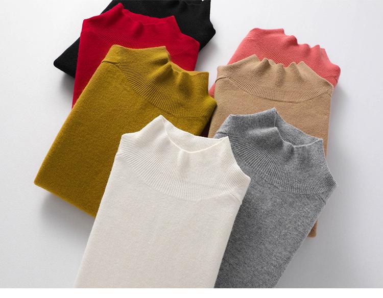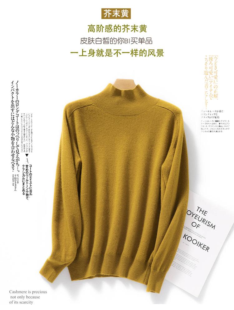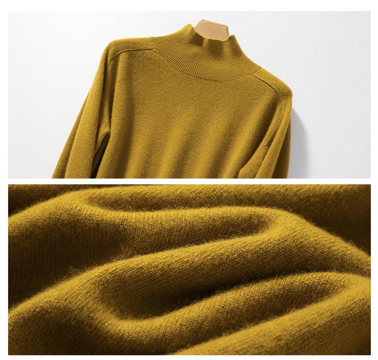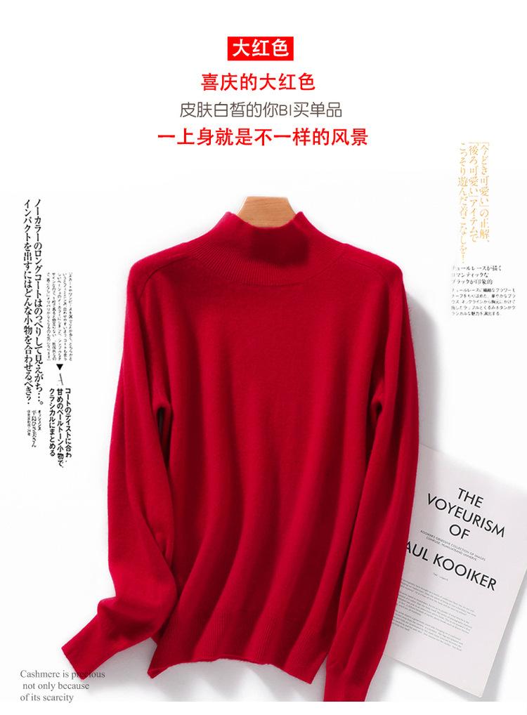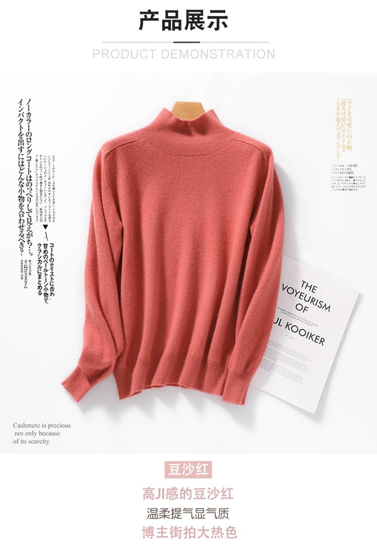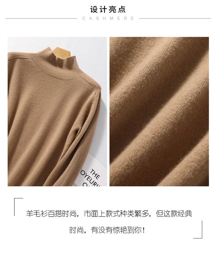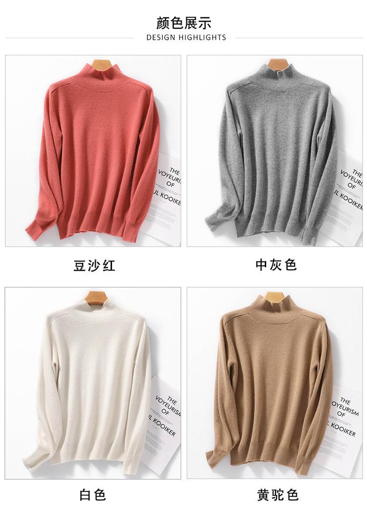 Nuevo jersey ajustado de otoño e invierno con cuello medio alto de punto de lana pura, jersey de cachemira para mujer.