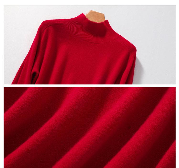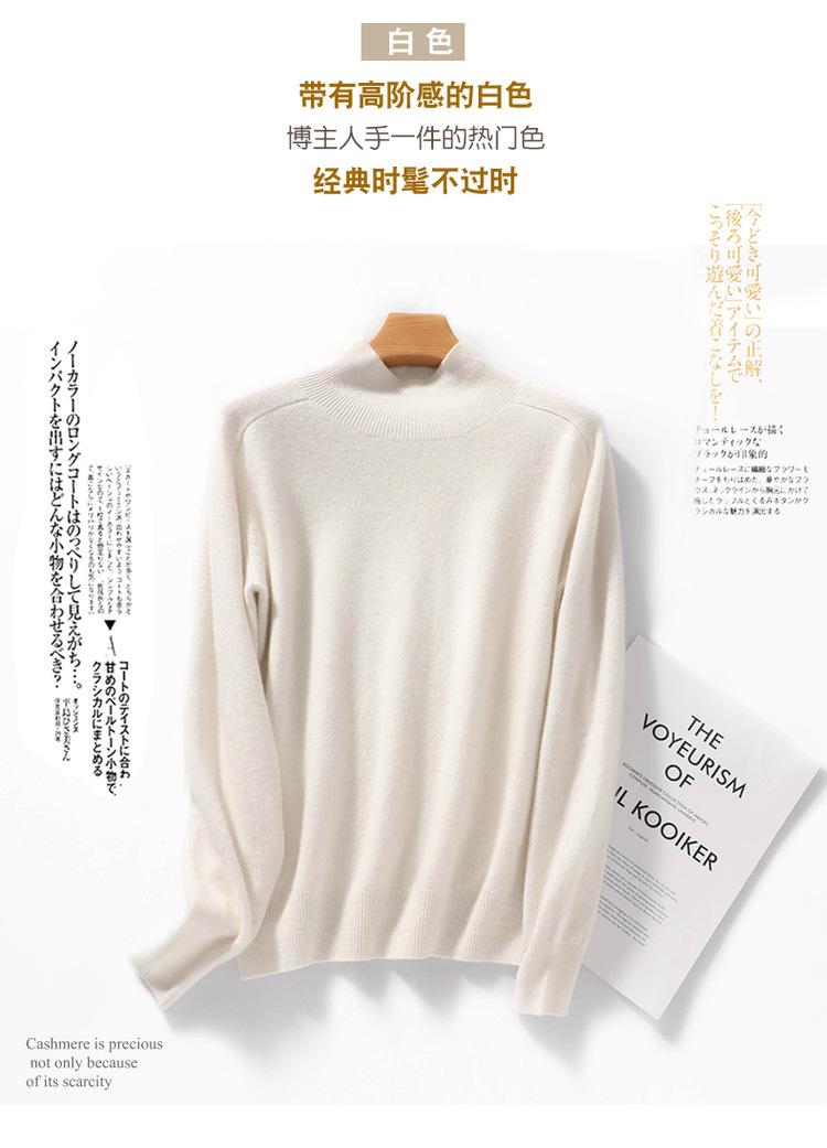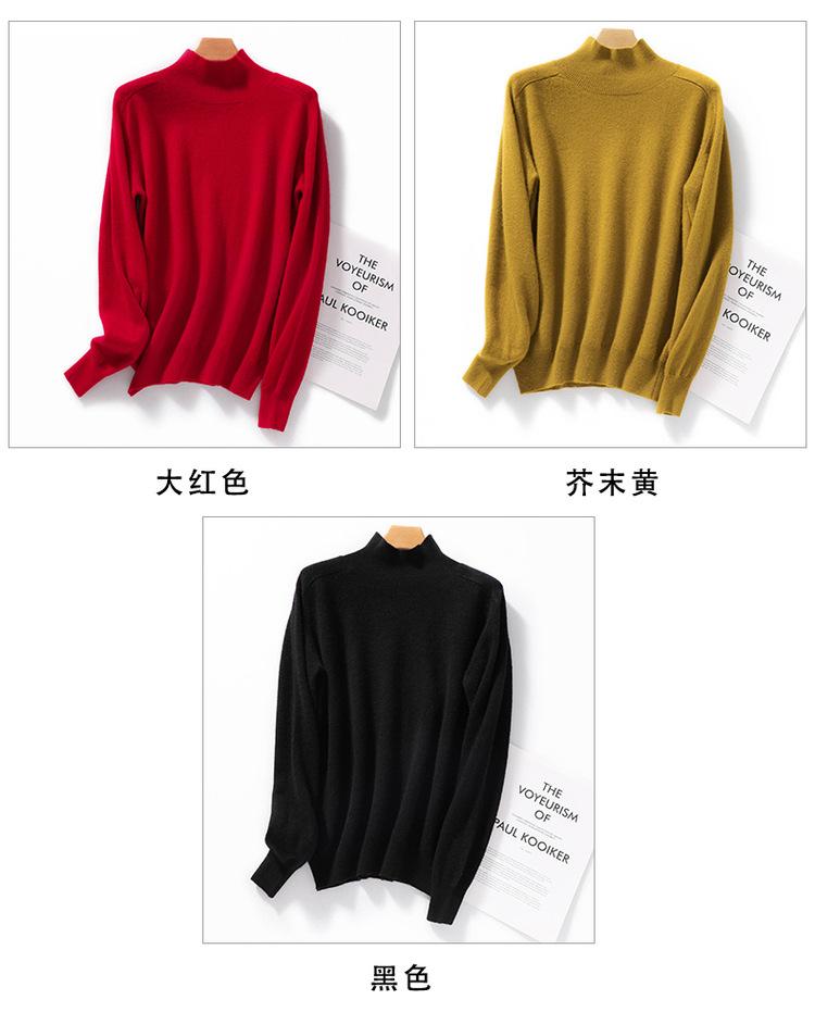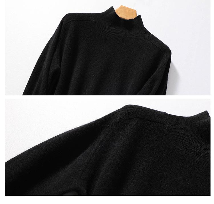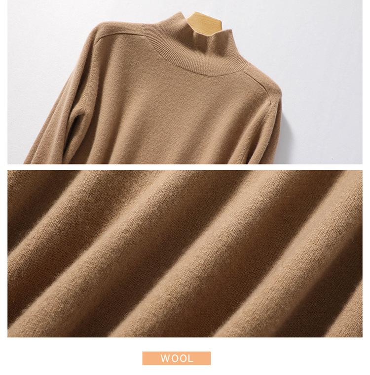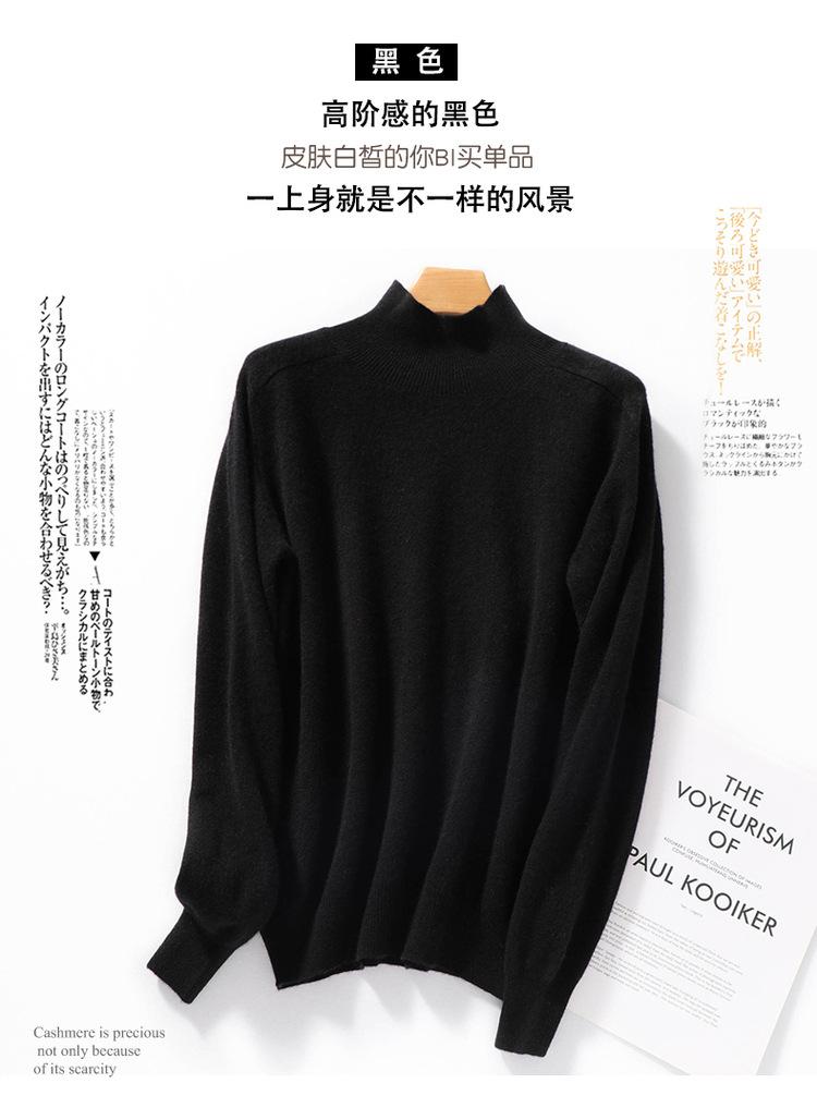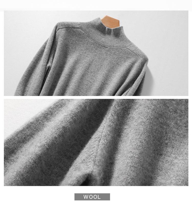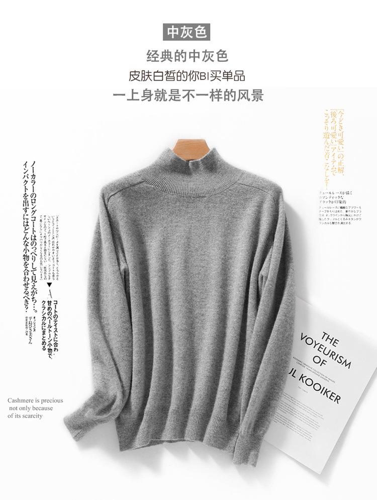 Nuevo jersey ajustado de otoño e invierno con cuello medio alto de punto de lana pura, jersey de cachemira para mujer.