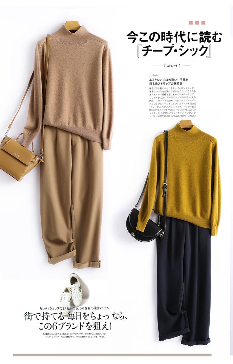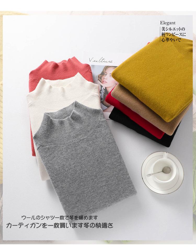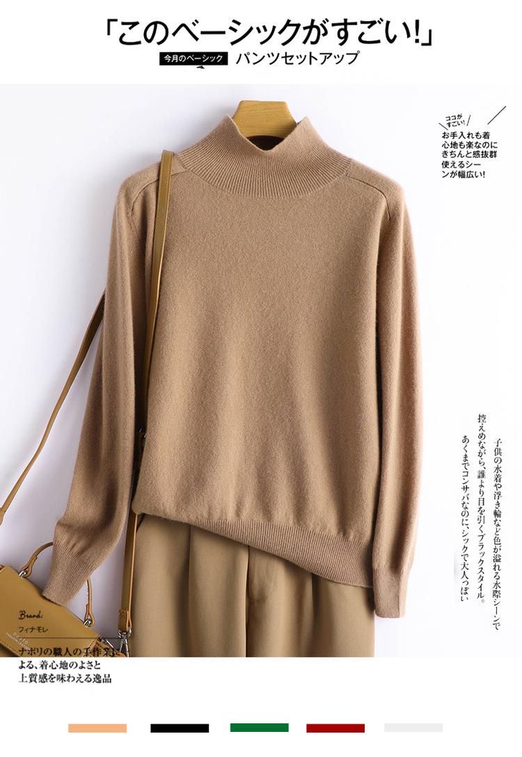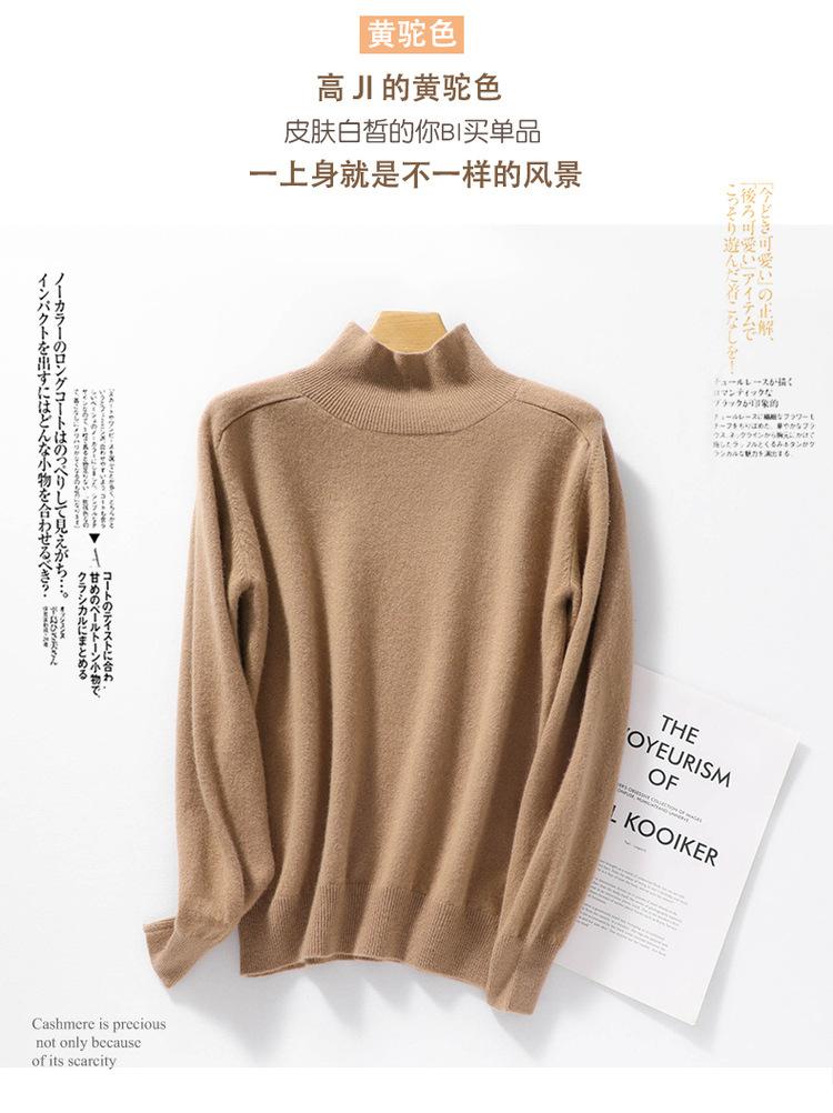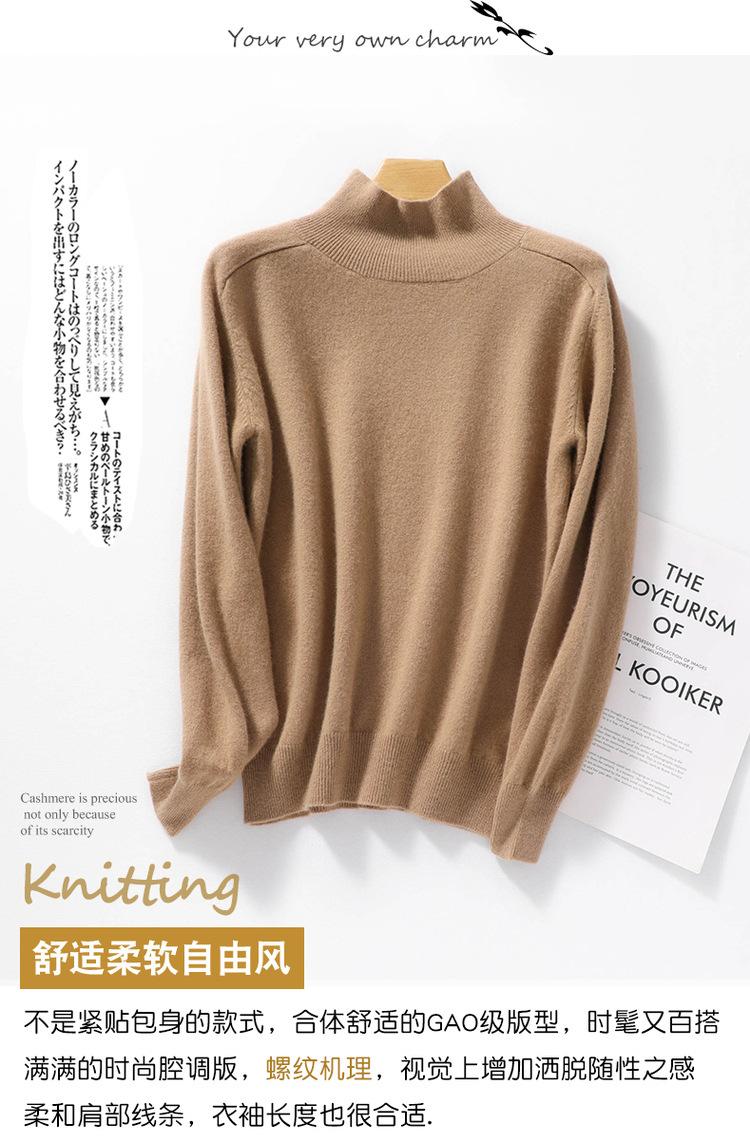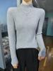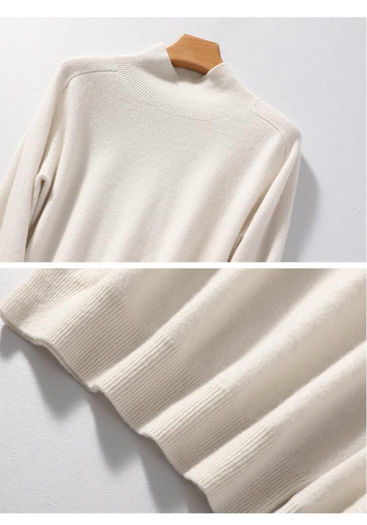 Nuevo jersey ajustado de otoño e invierno con cuello medio alto de punto de lana pura, jersey de cachemira para mujer.