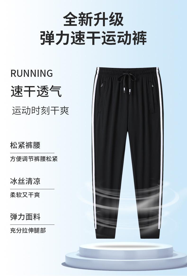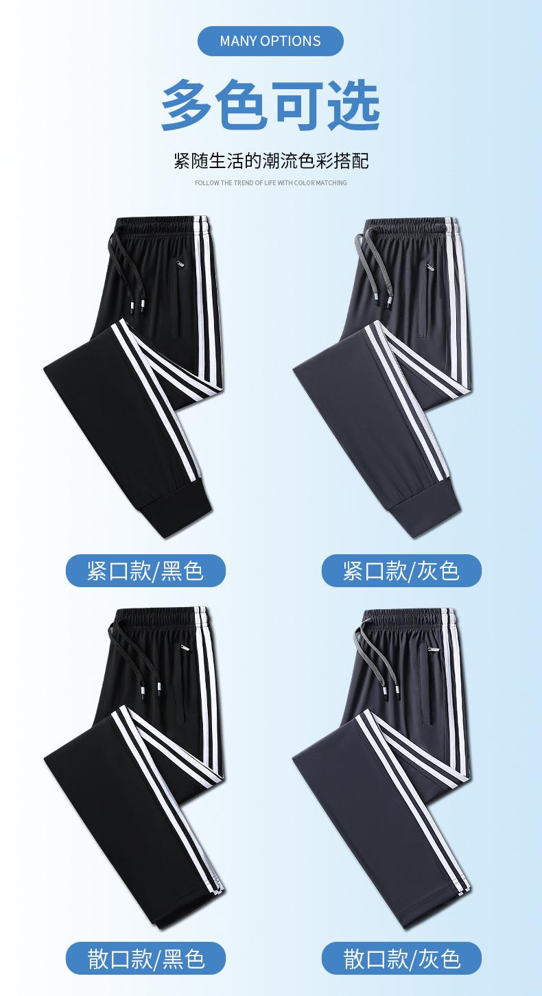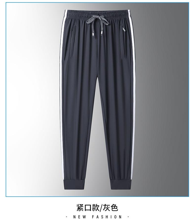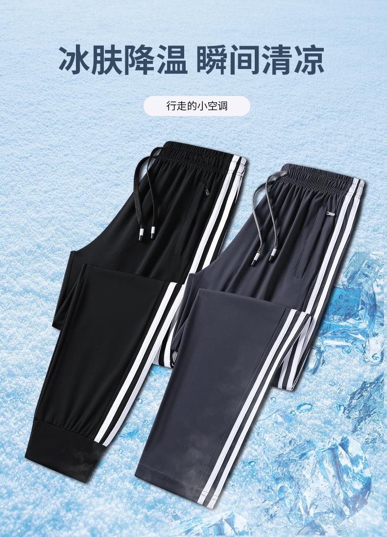 Pantalones de seda de hielo de verano de tres barras para hombre y mujer, delgados, elásticos, de secado rápido, deportivos, casuales, holgados, de talla grande, a la moda