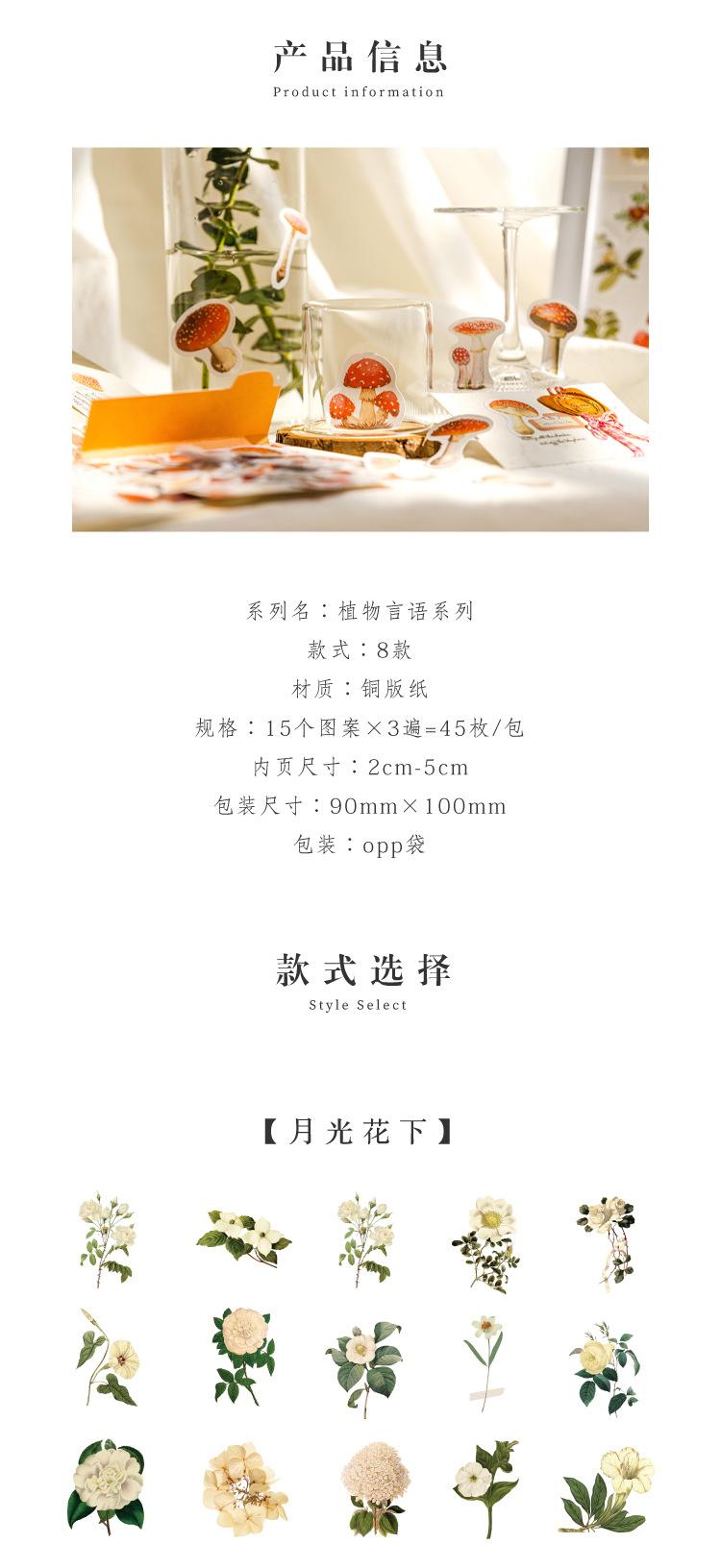 Bolsa de stickers de papel estucado Mo serie de discursos de plantas decoración de cuenta de mano sticker DIY sticker 8