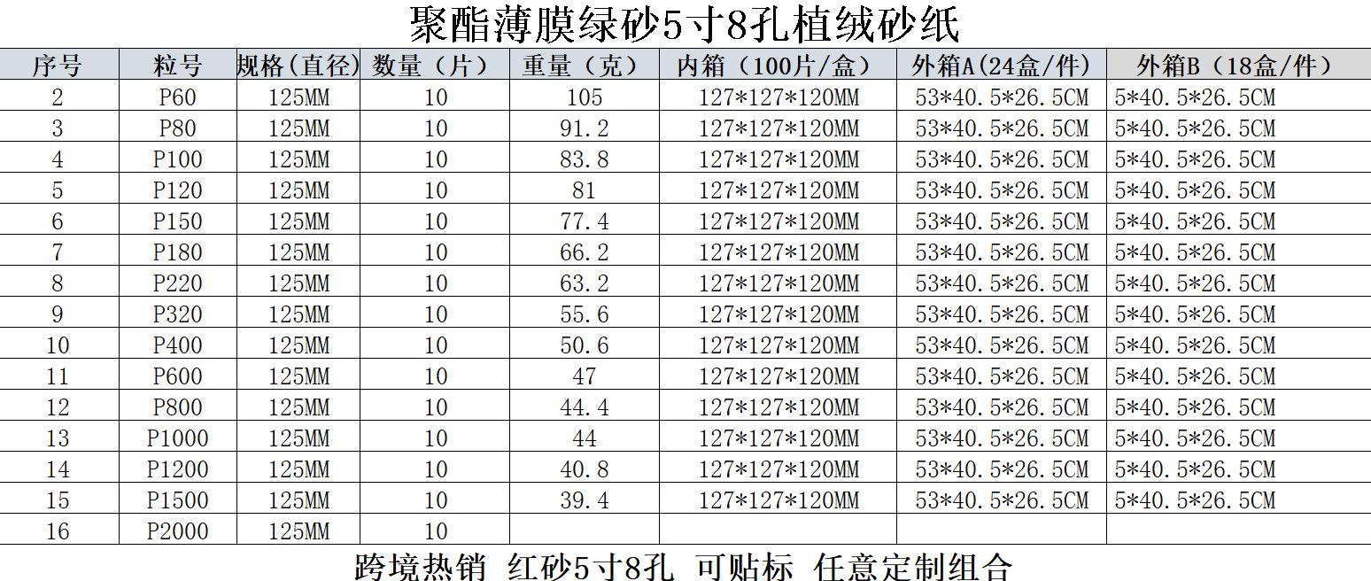 [Nombre del Producto] Lija de papel de lija verde de 5 pulgadas 8 agujeros seca y húmeda