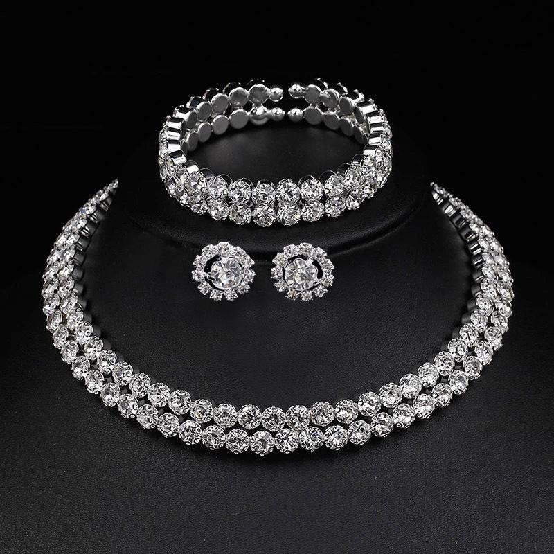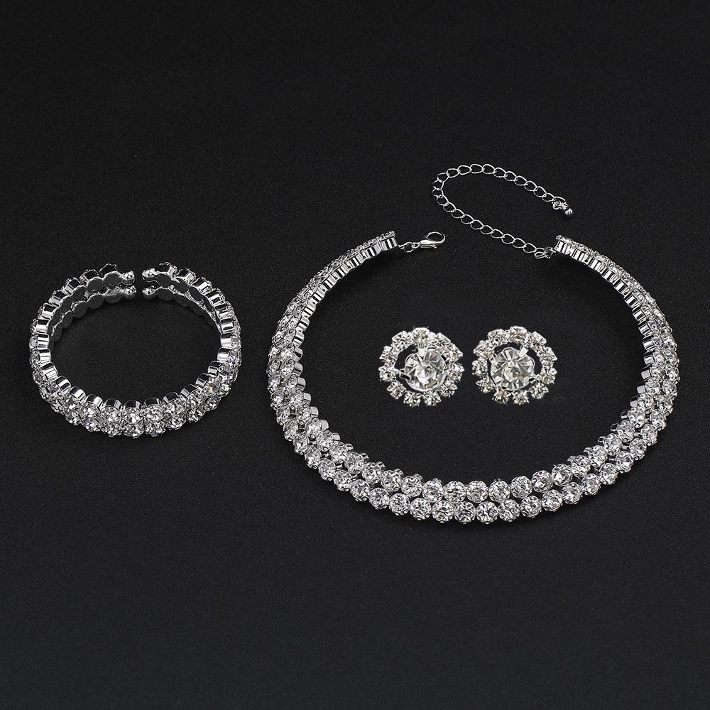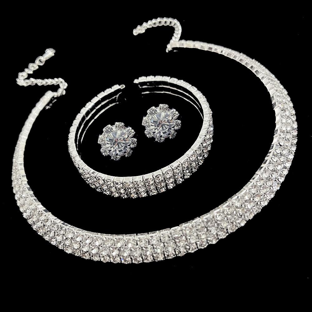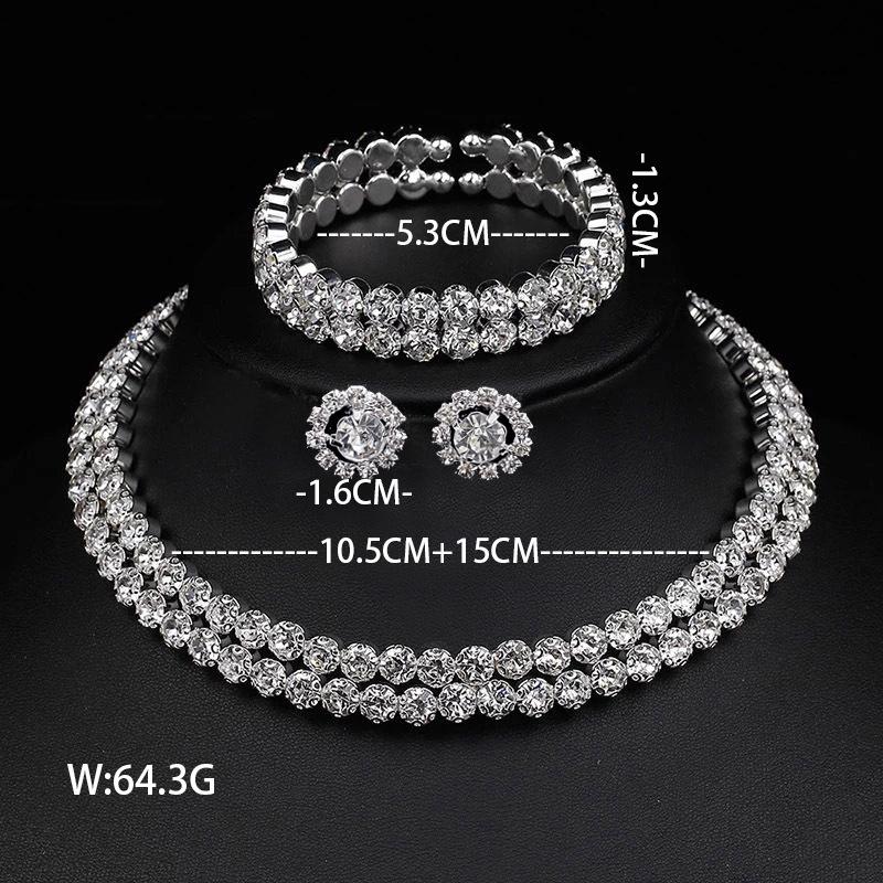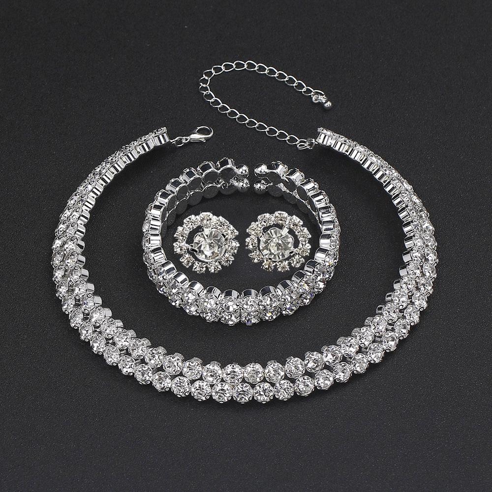 Collar de diamantes, pendientes y pulsera de tres piezas con diseño de flores de metal, estilo transfronterizo europeo y americano, para dama de honor y novia.