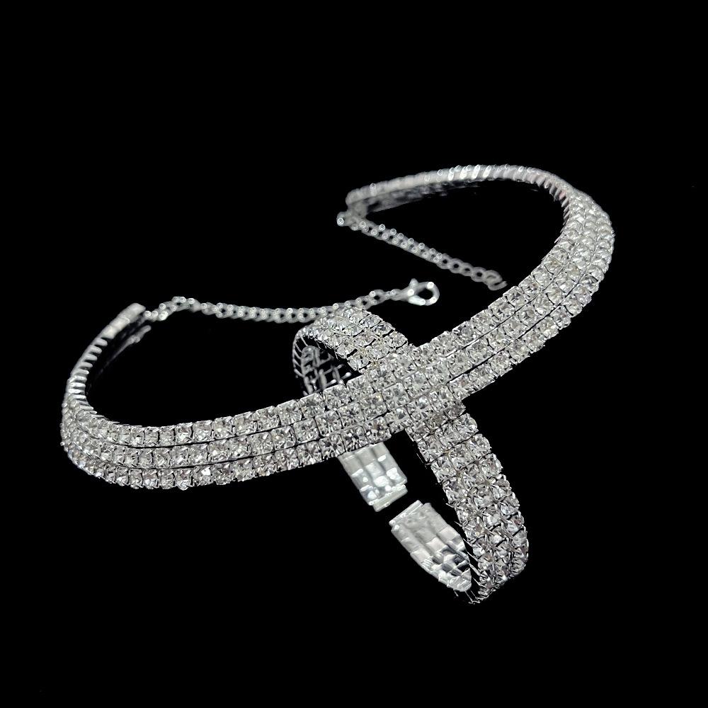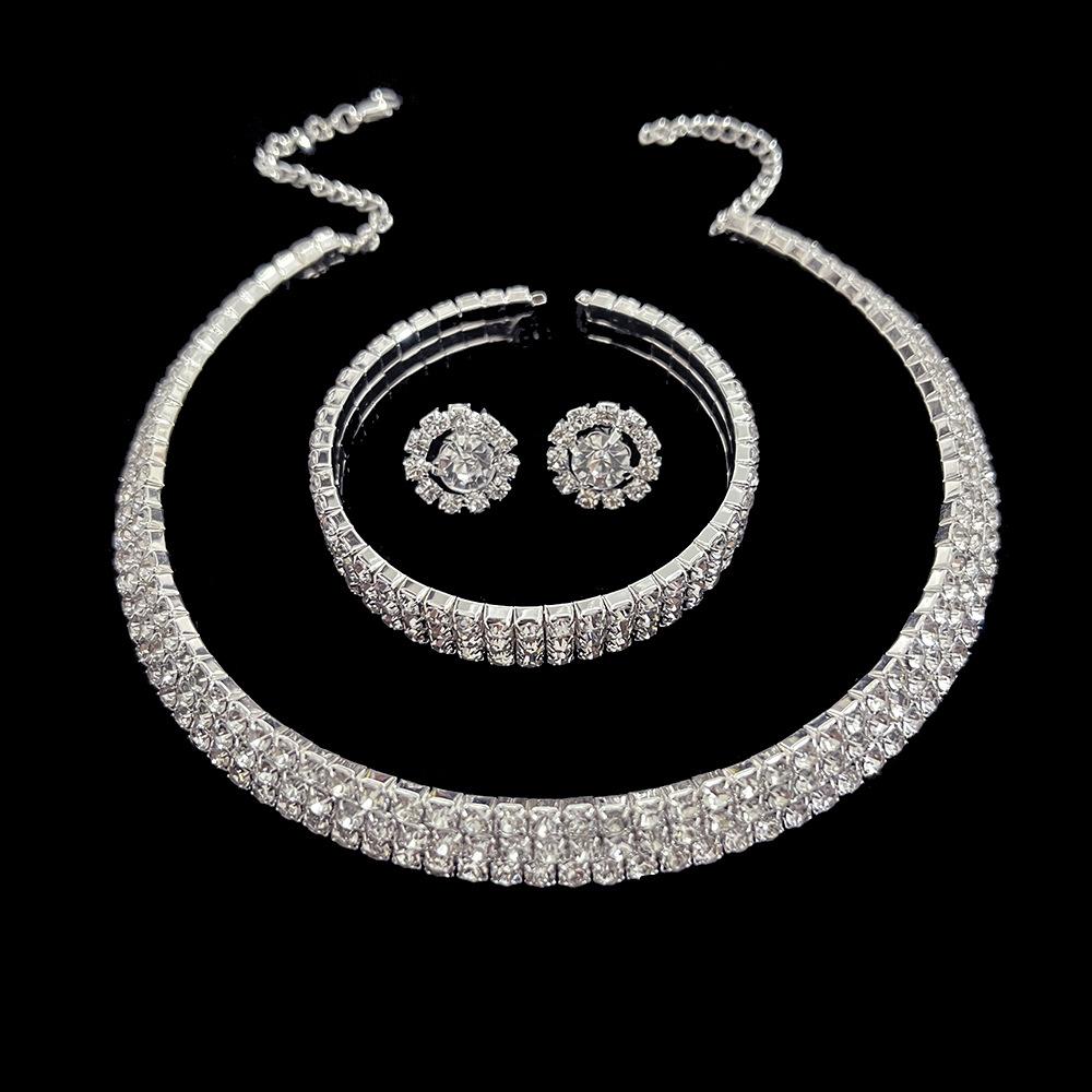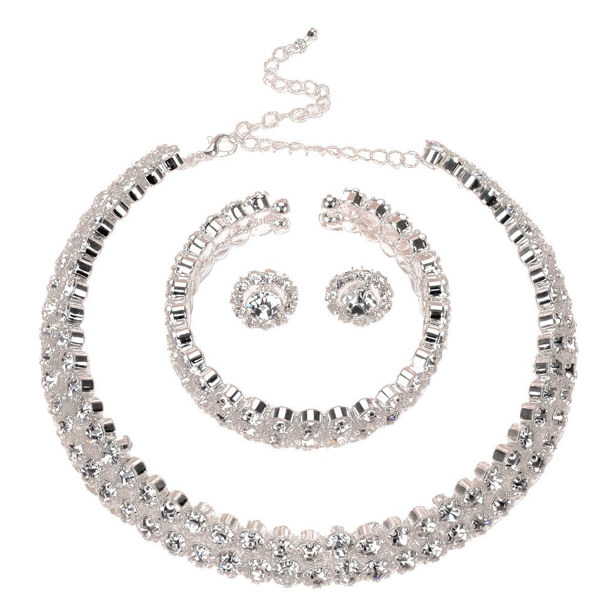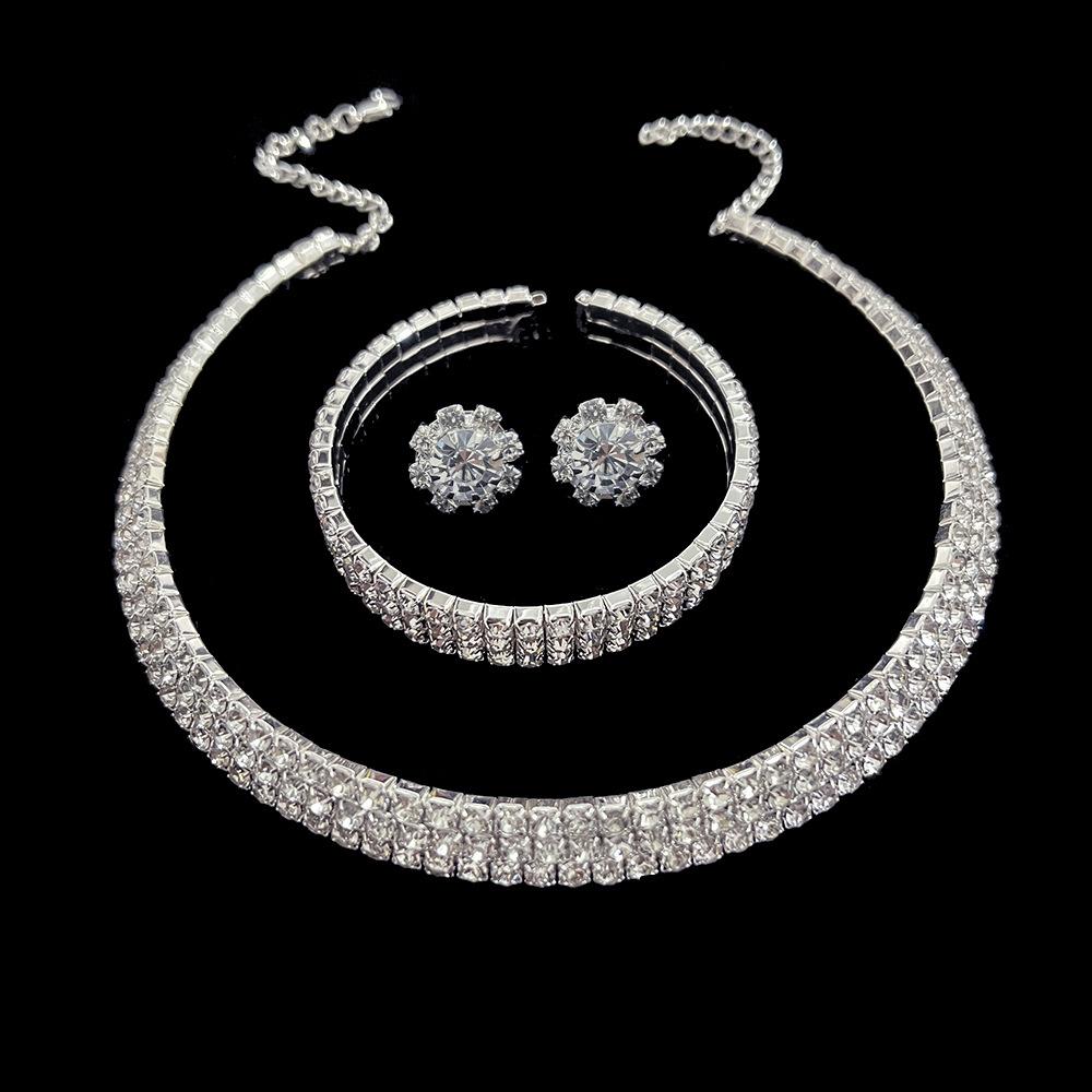Collar de diamantes, pendientes y pulsera de tres piezas con diseño de flores de metal, estilo transfronterizo europeo y americano, para dama de honor y novia.