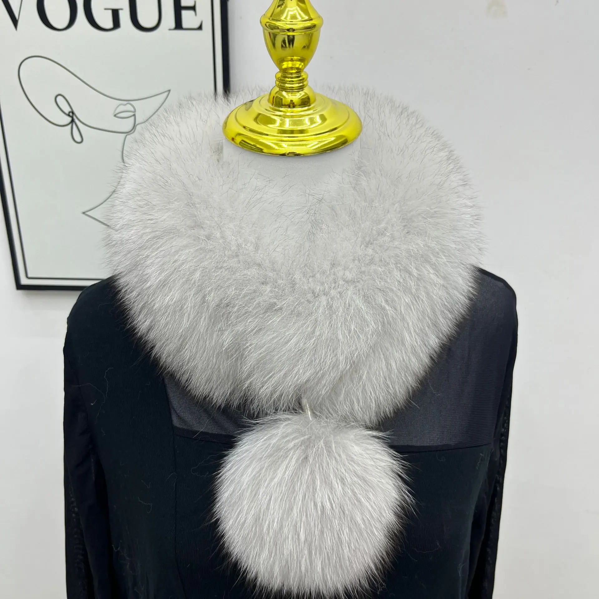 Recién llegado, bufanda de piel de zorro real de doble cara, piel auténtica, invierno, versátil, cálida, con hebilla magnética, cuello de piel