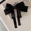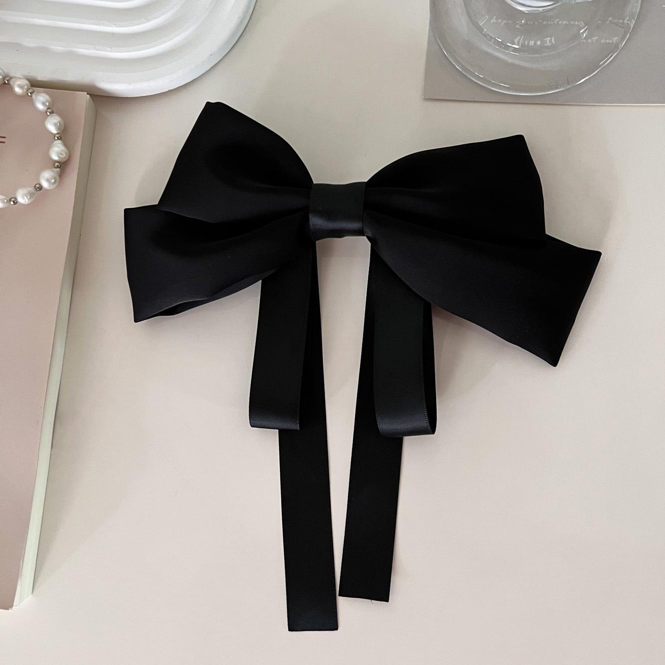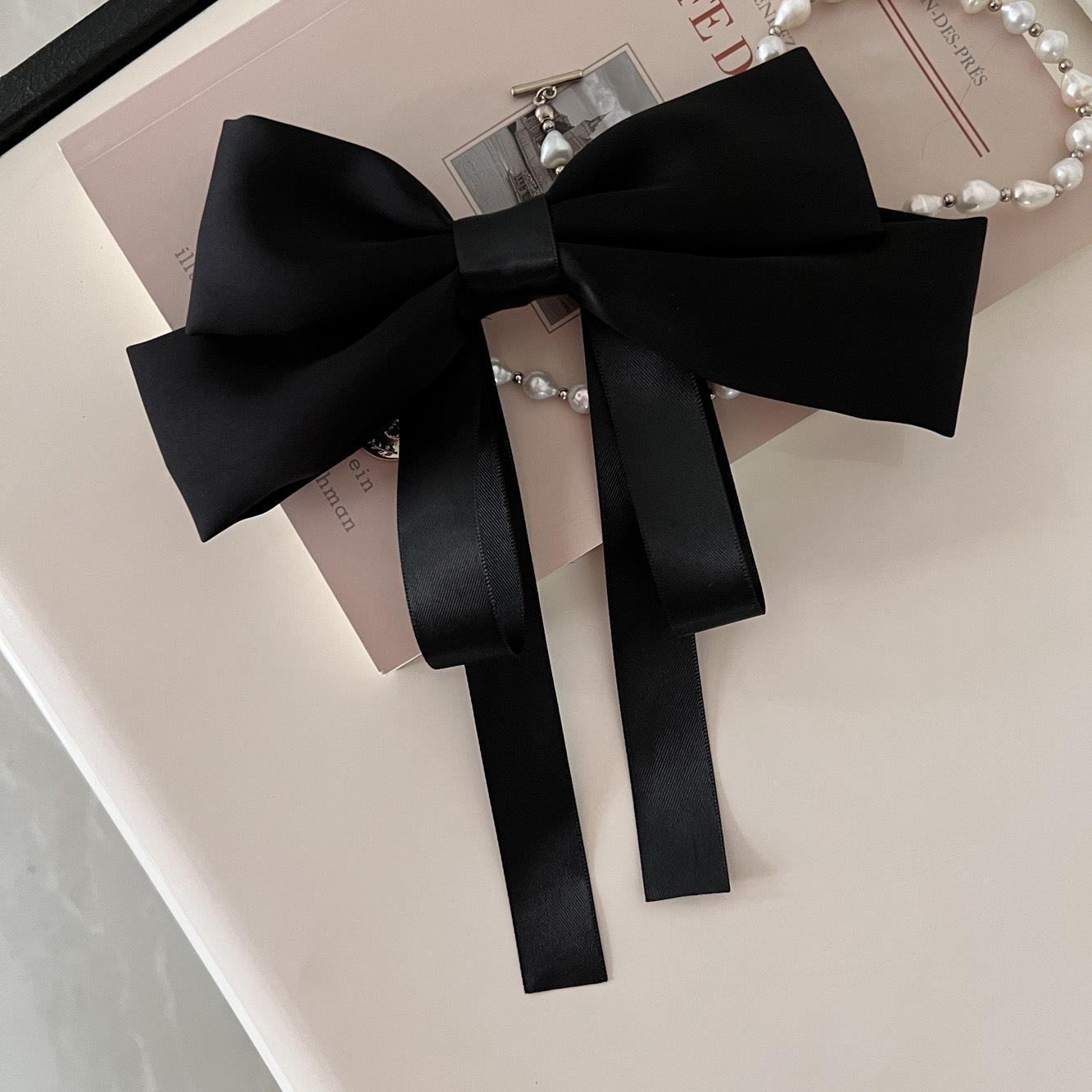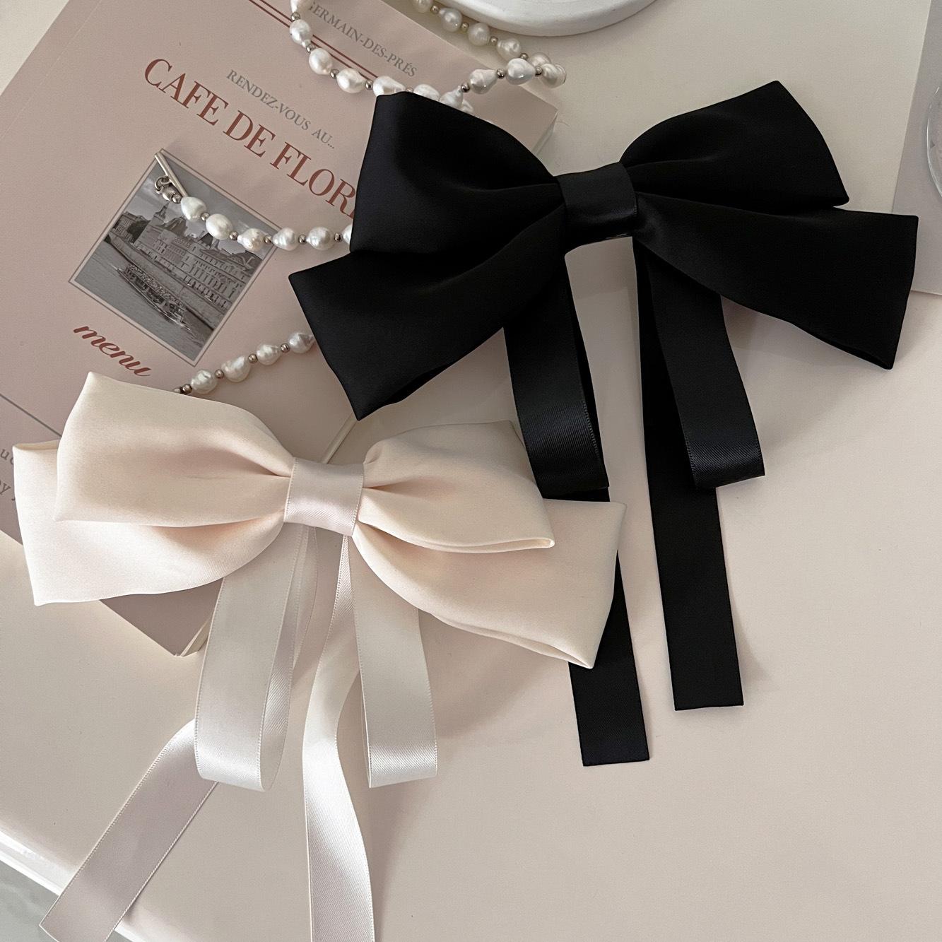 Nueva horquilla de verano con lazo blanco y negro de Super Fairy, con resorte para la parte posterior de la cabeza, elegante accesorio para el cabello para mujer.