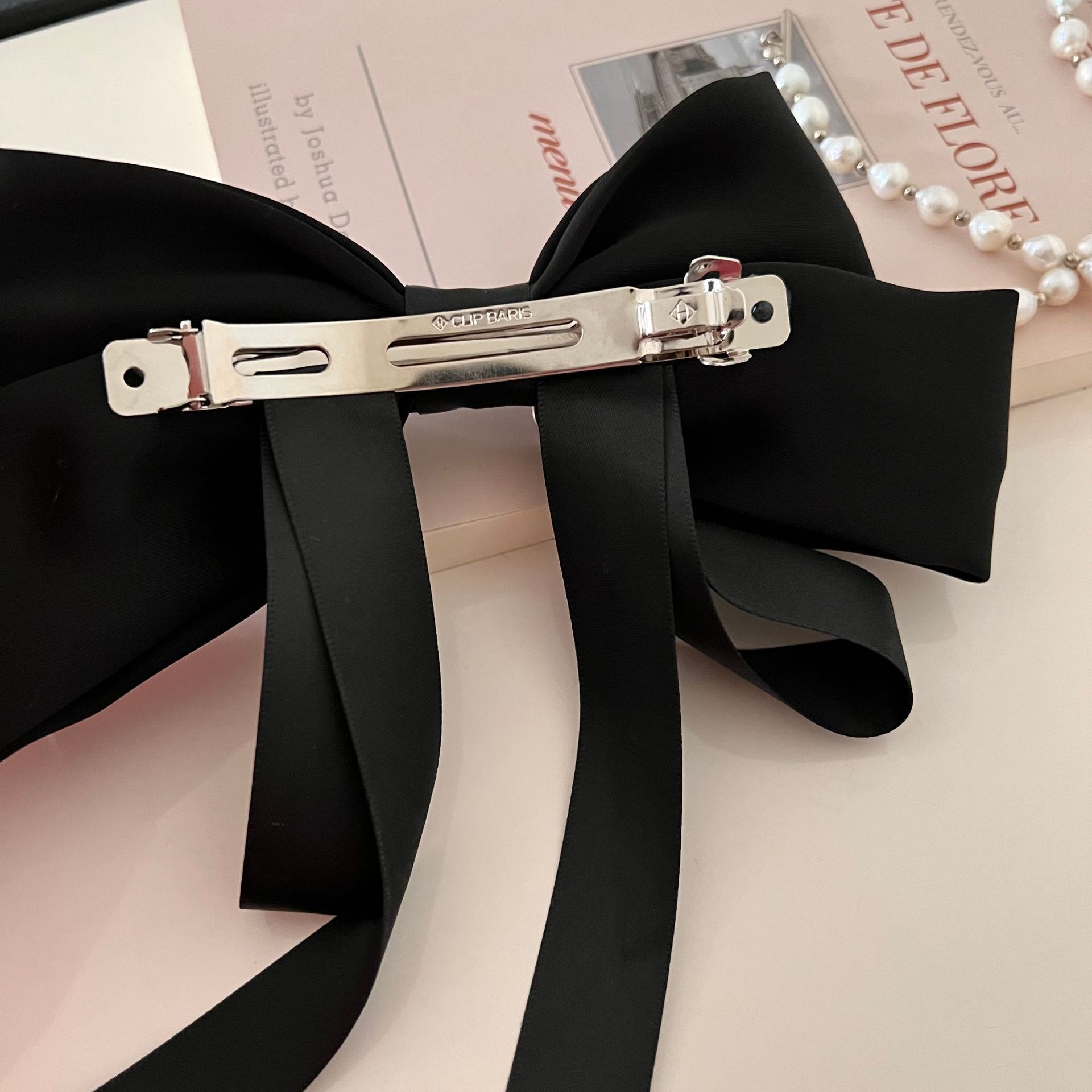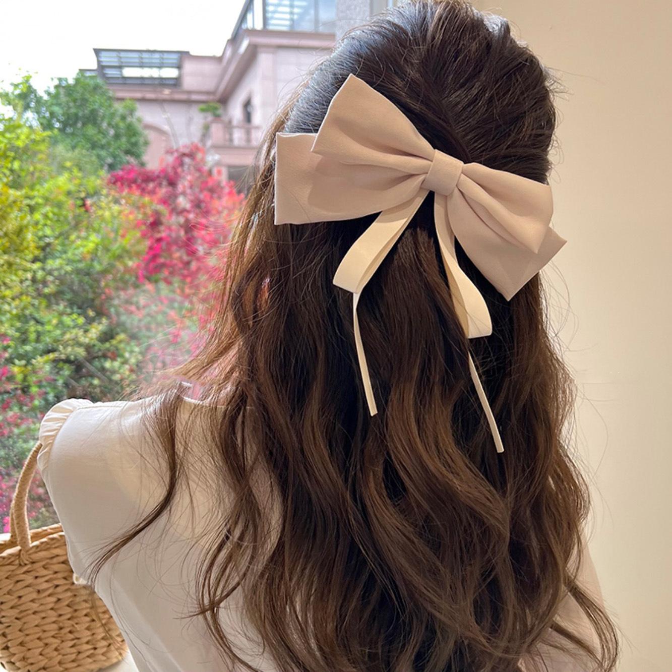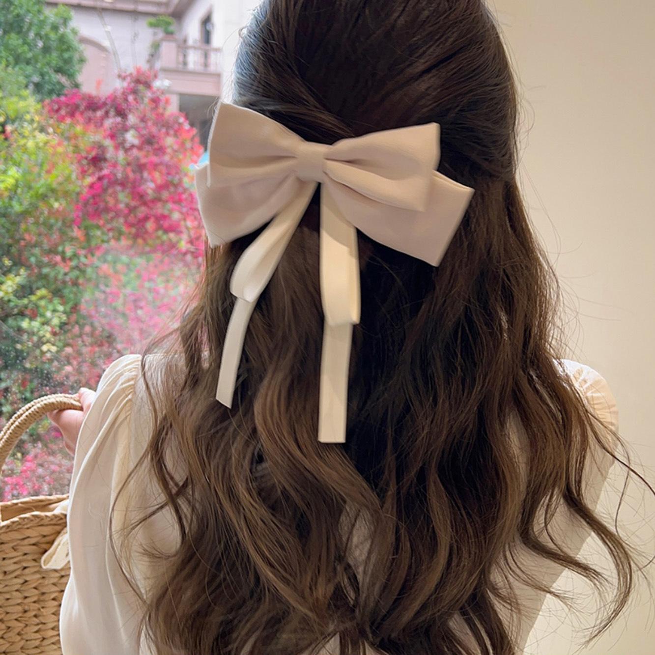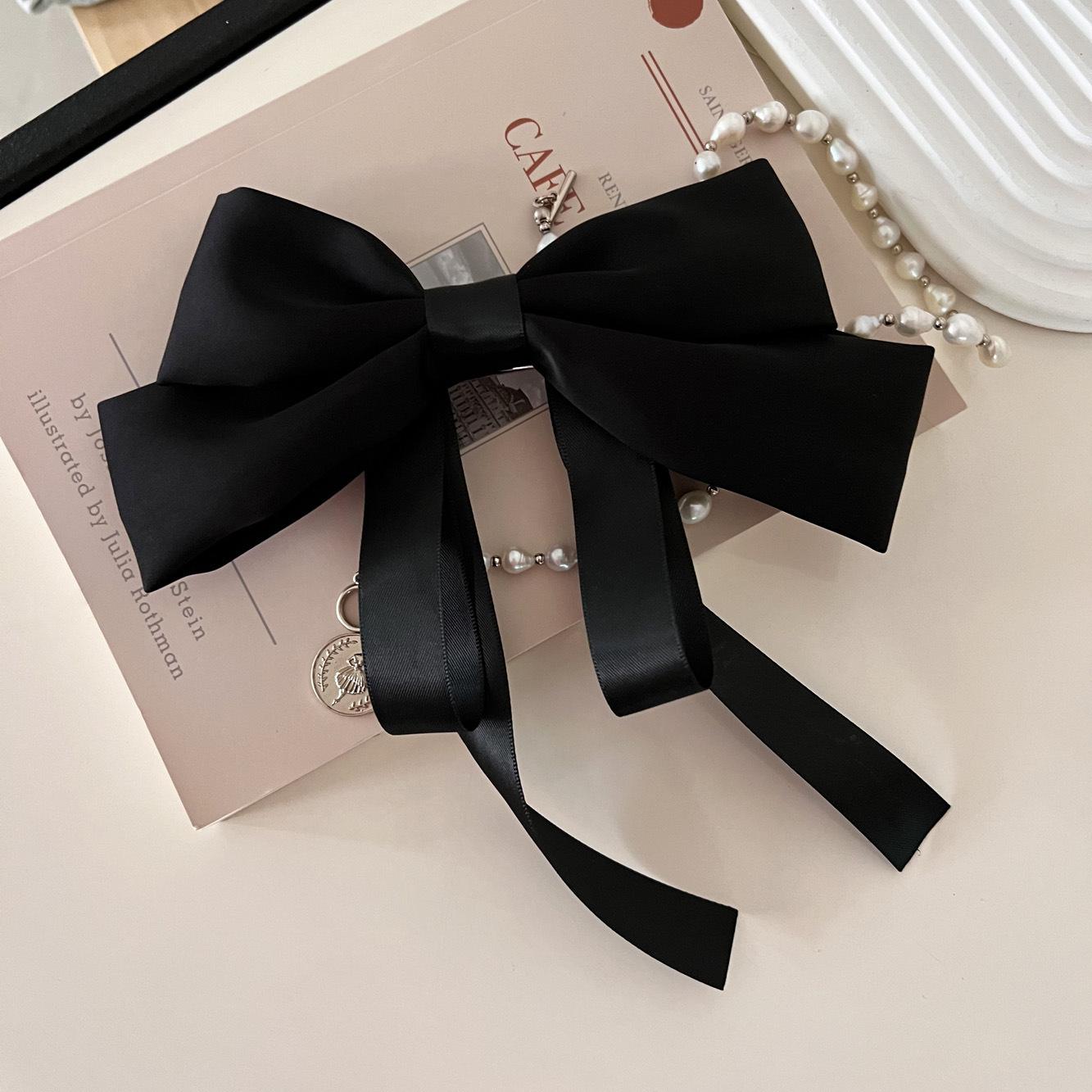 Nueva horquilla de verano con lazo blanco y negro de Super Fairy, con resorte para la parte posterior de la cabeza, elegante accesorio para el cabello para mujer.