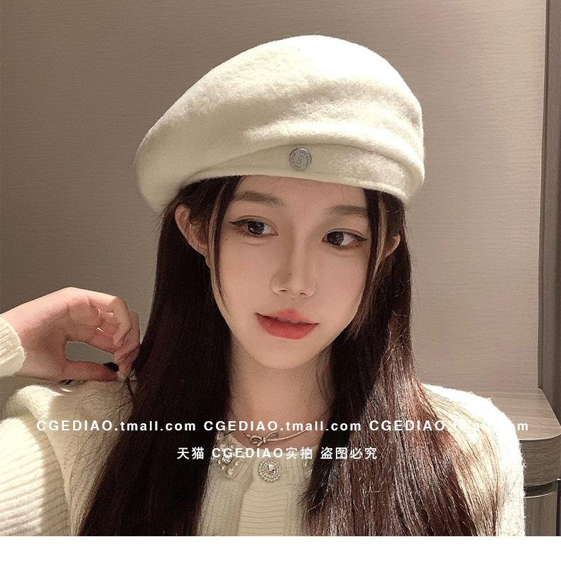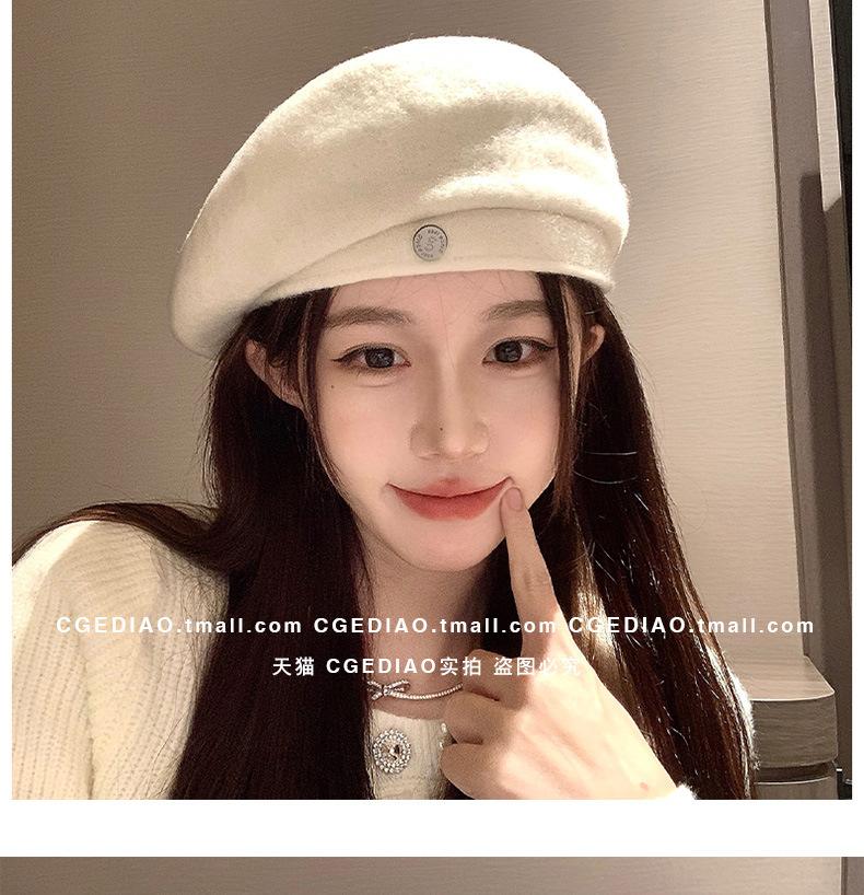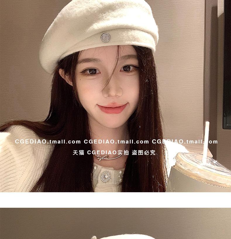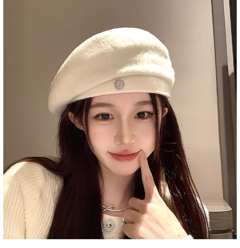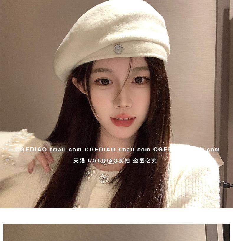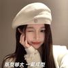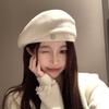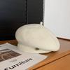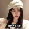 Boina de Lana Blanca Sombrero de Lana Otoño e Invierno para Mujer Estilo Coreano Versátil Favorecedor Sombrero de Pequeño Pintor para Mujer de Alta Gama