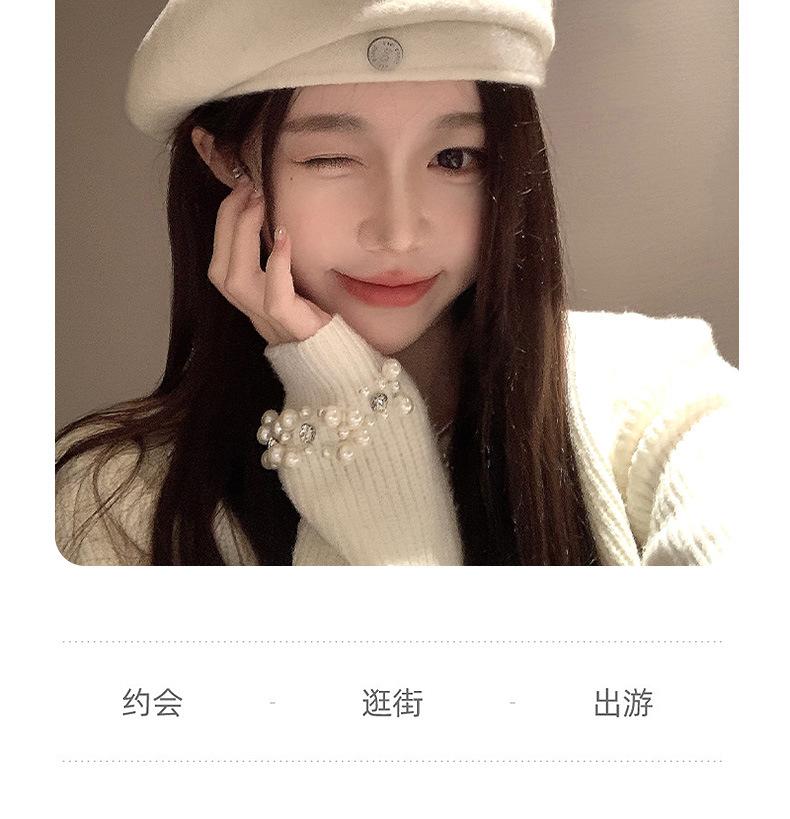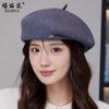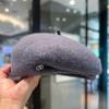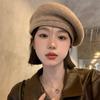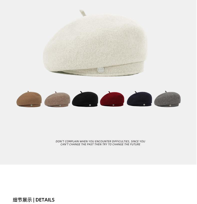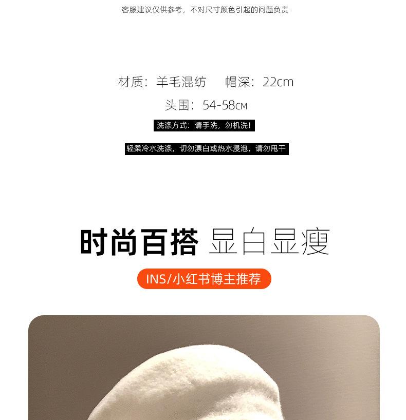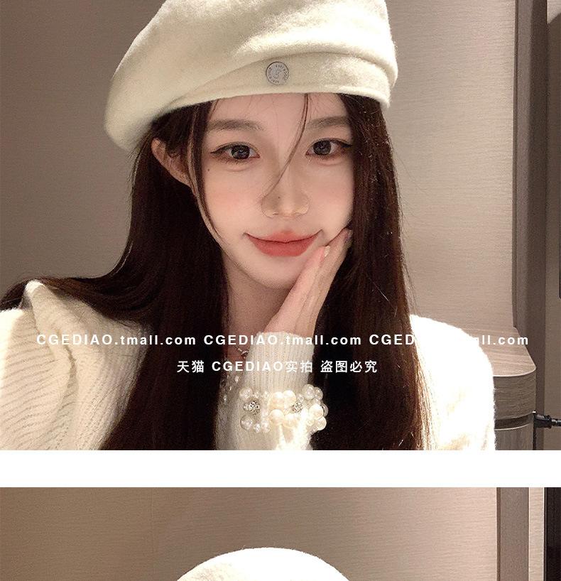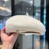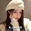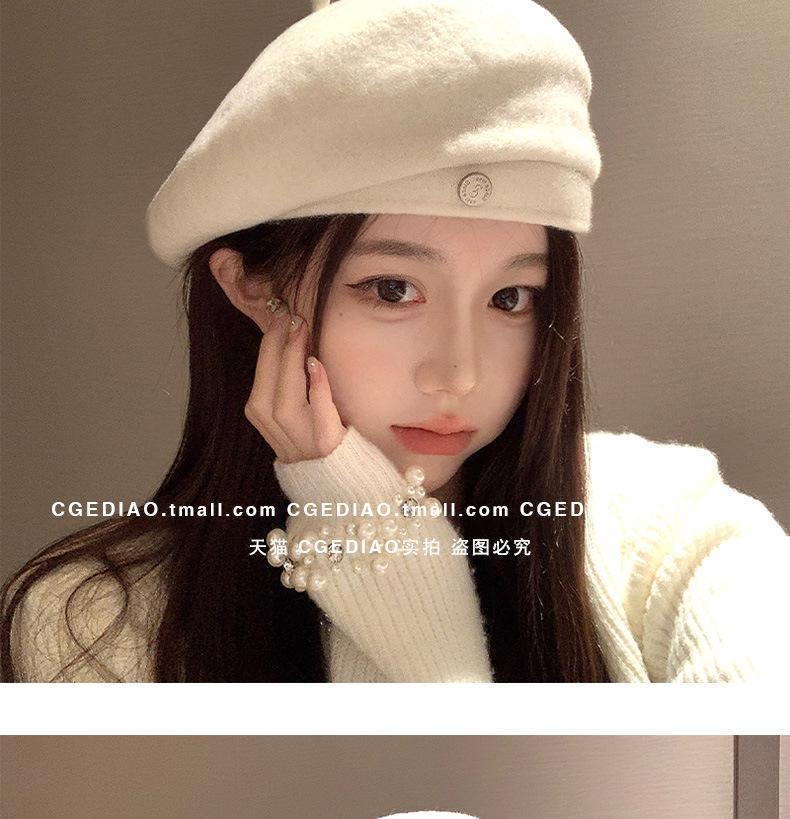 Boina de Lana Blanca Sombrero de Lana Otoño e Invierno para Mujer Estilo Coreano Versátil Favorecedor Sombrero de Pequeño Pintor para Mujer de Alta Gama