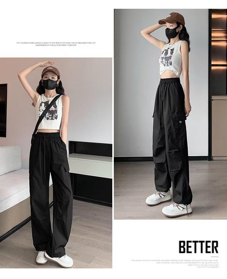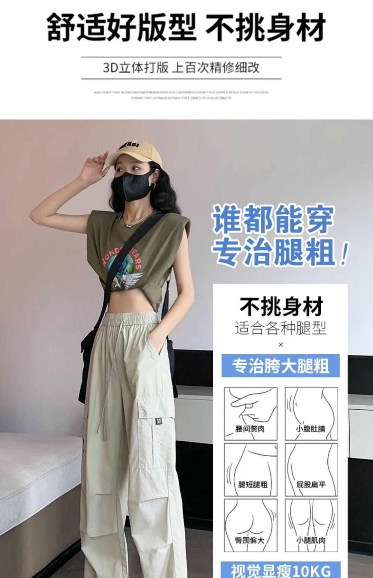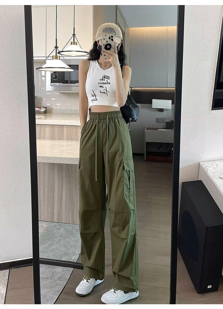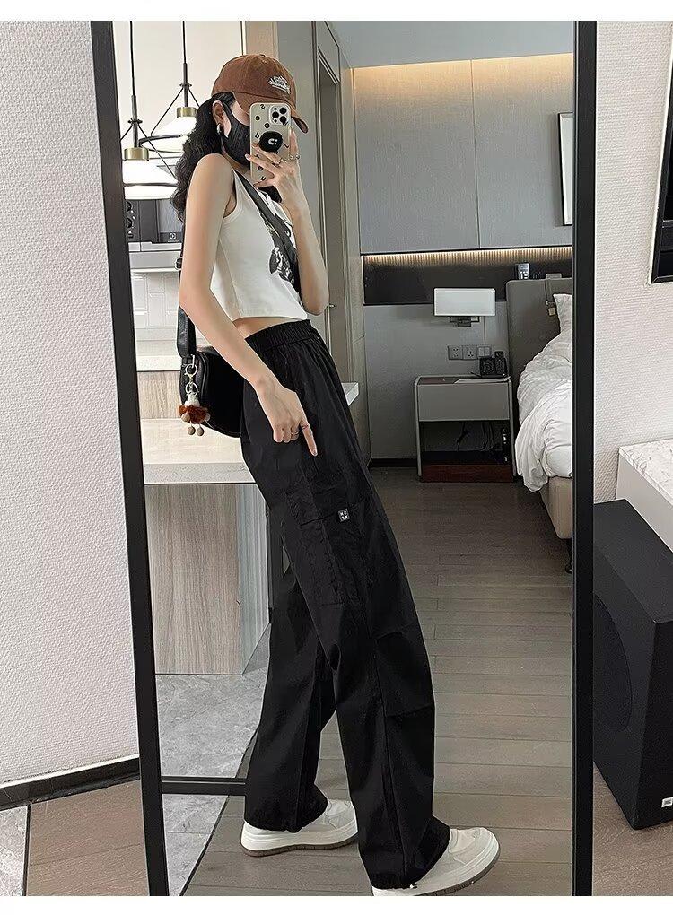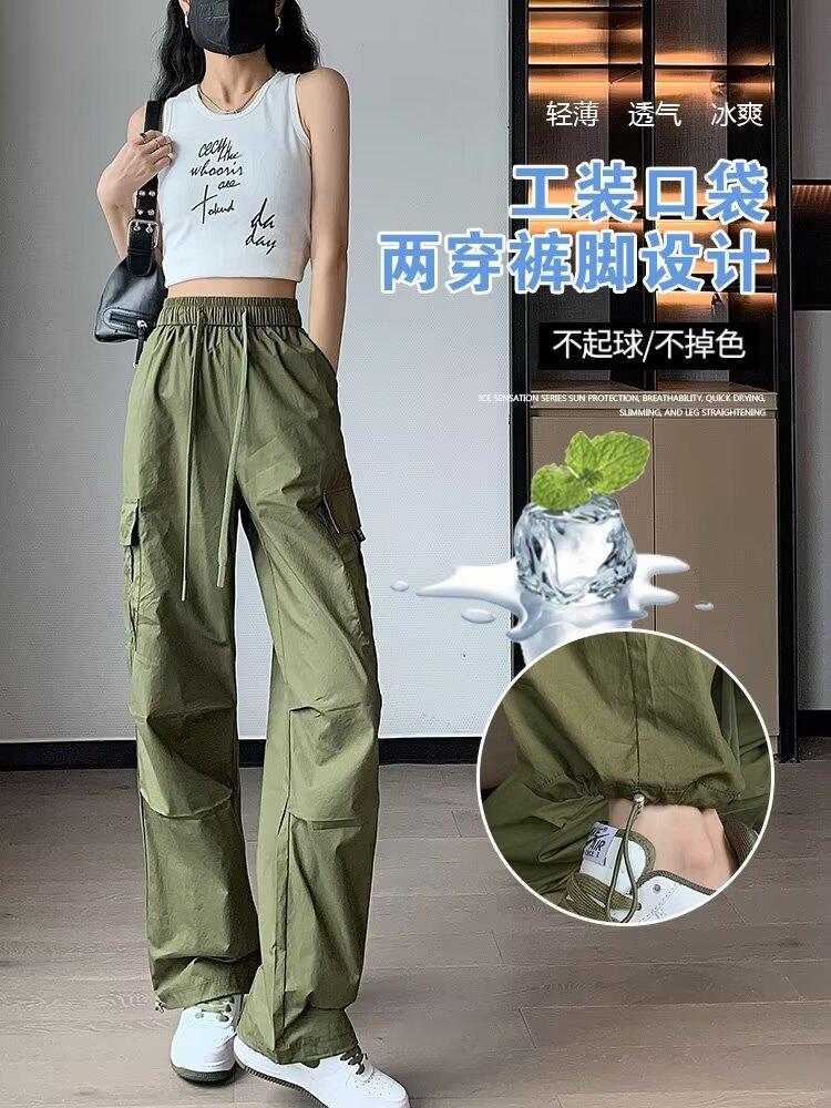 Pantalones deportivos de verano para mujer, estilo americano, de secado rápido, finos, sueltos, rectos y sexys, de cintura alta, adelgazantes, con pierna ancha y pies atados.