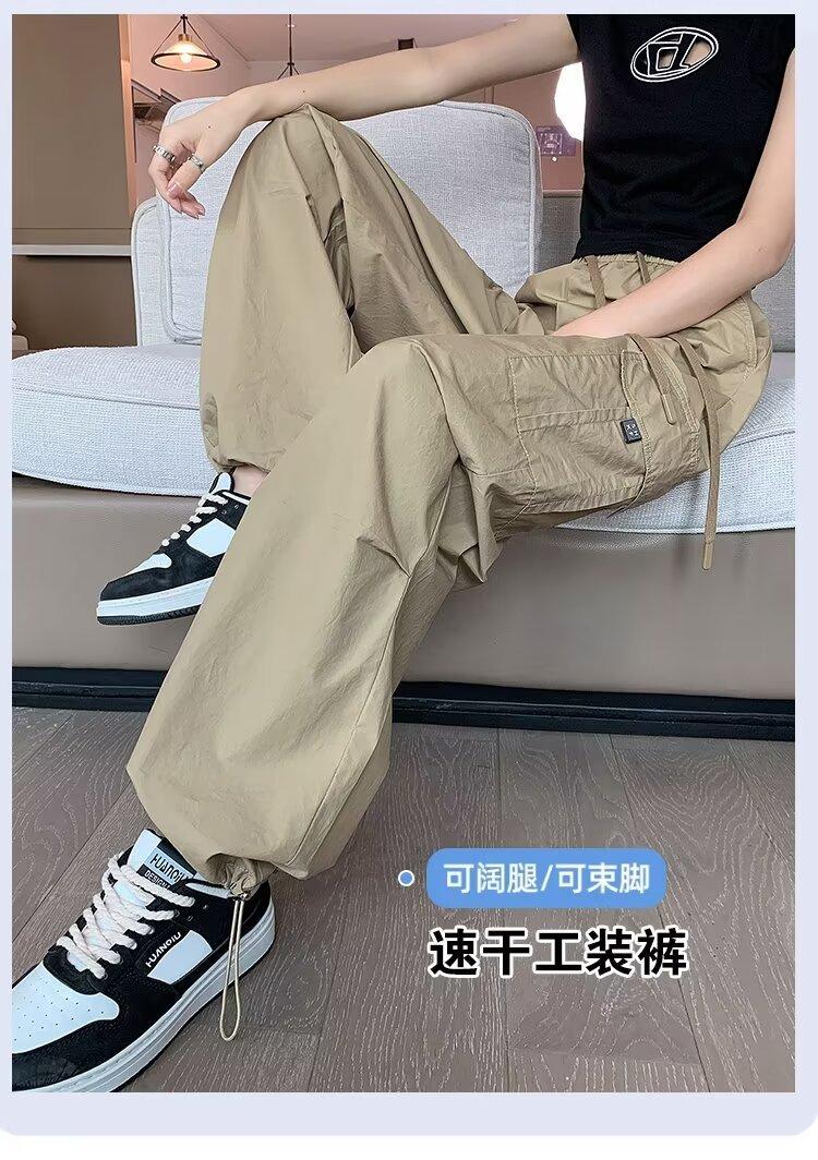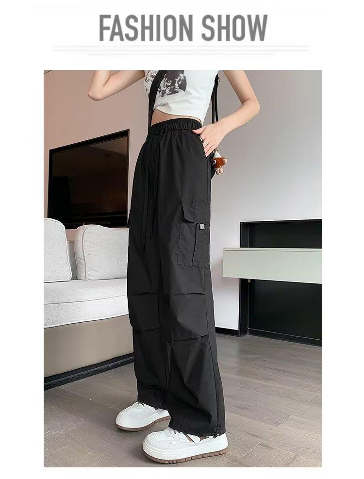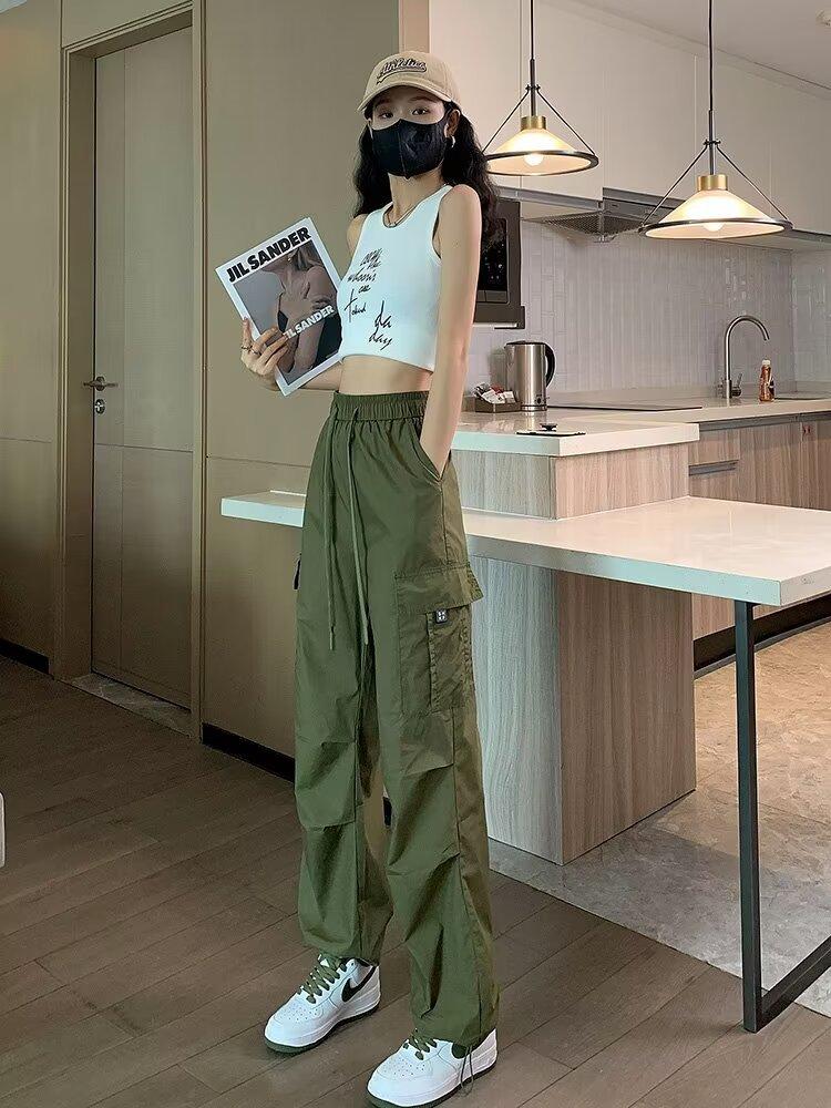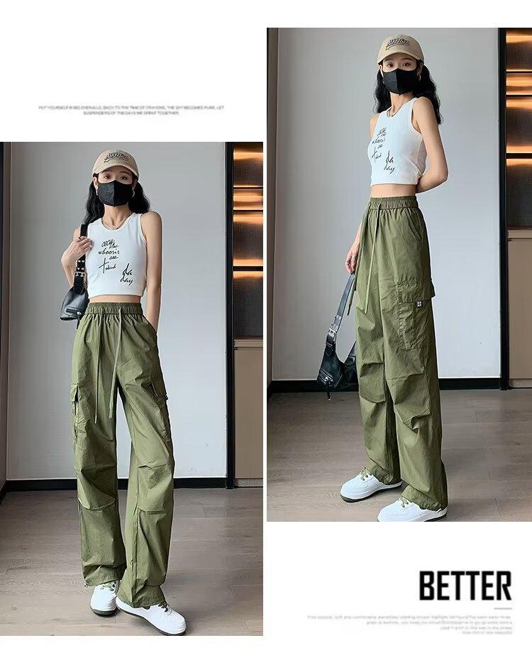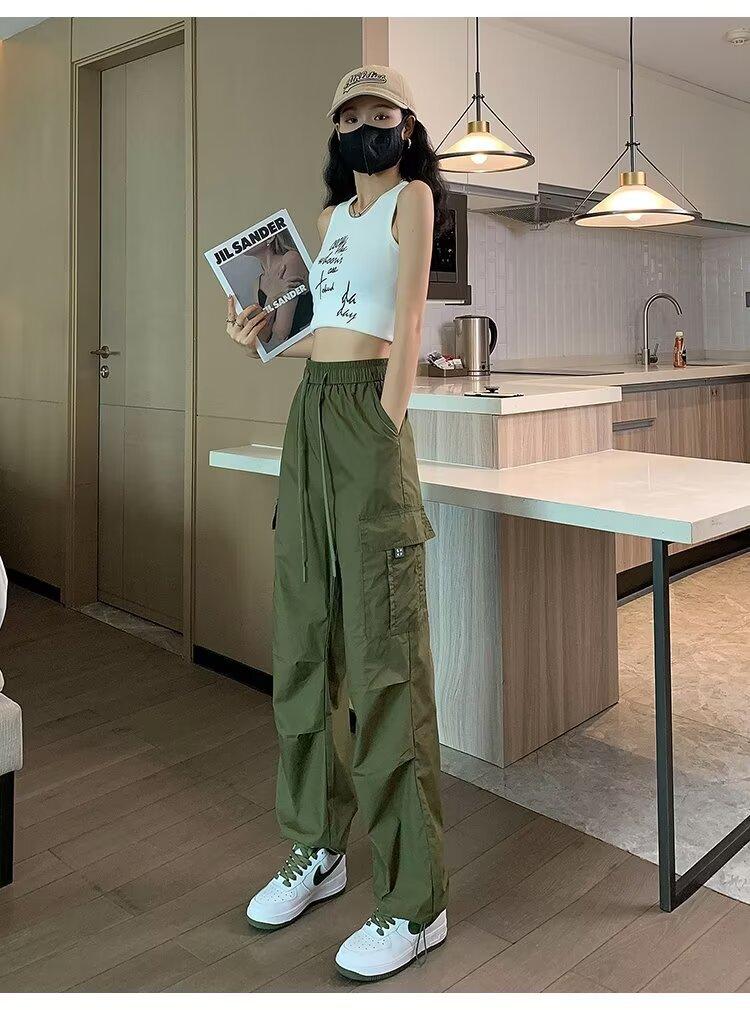 Pantalones deportivos de verano para mujer, estilo americano, de secado rápido, finos, sueltos, rectos y sexys, de cintura alta, adelgazantes, con pierna ancha y pies atados.