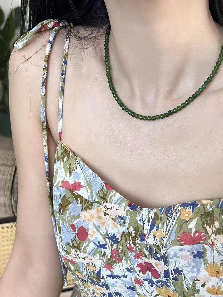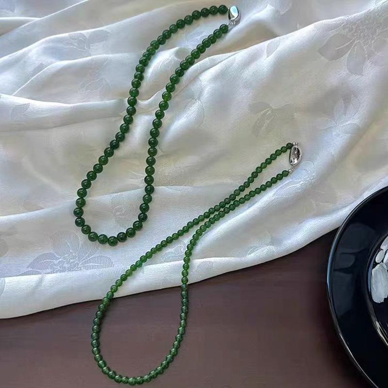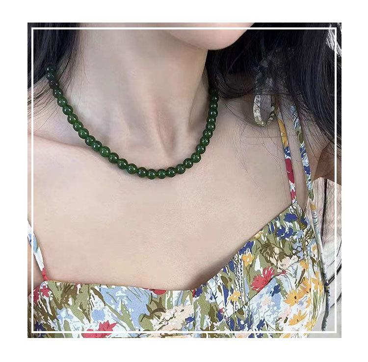 Nuevo collar de cuentas de calcedonia verde de imitación de estilo chino para mujer, cadena de clavícula con refuerzo de alta gama de verano, accesorios de collar que combinan con todo.