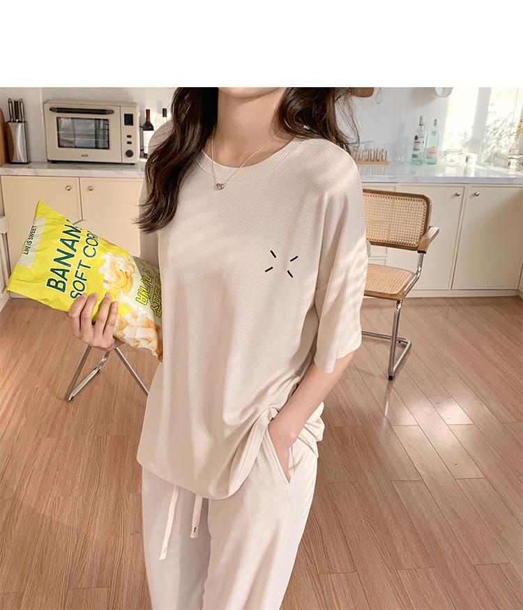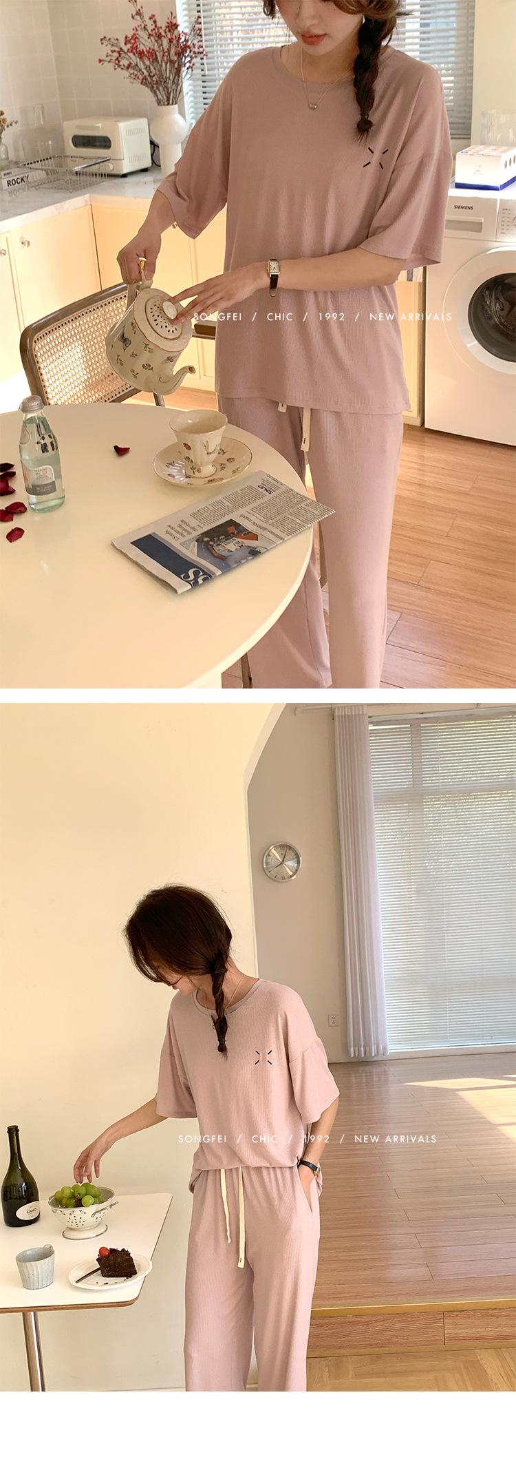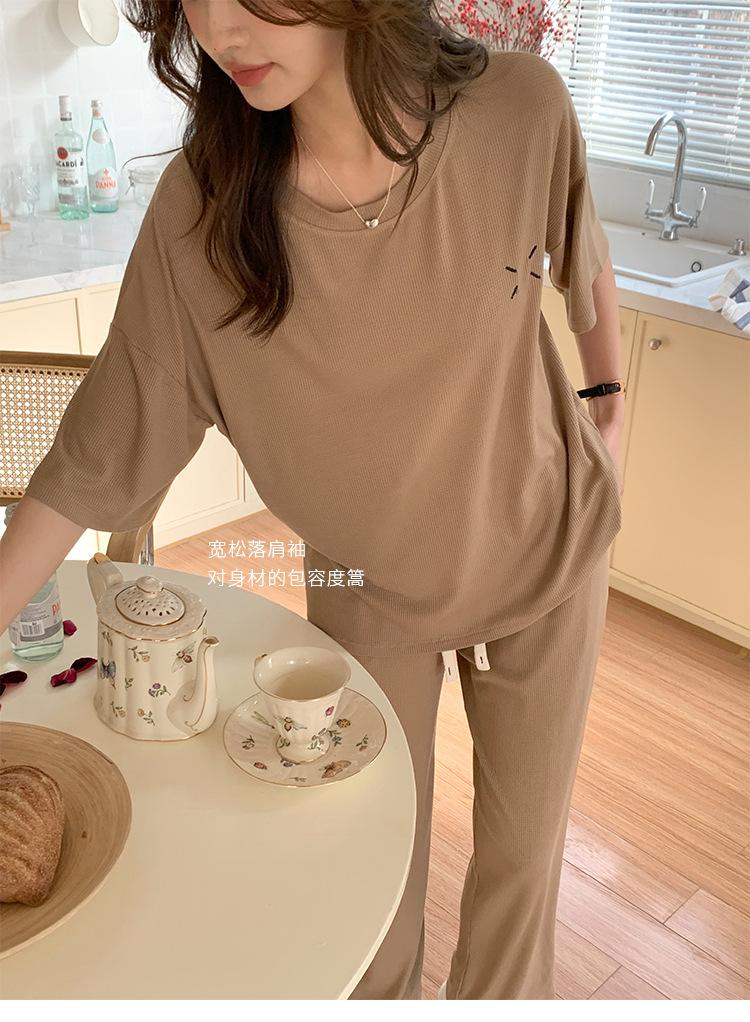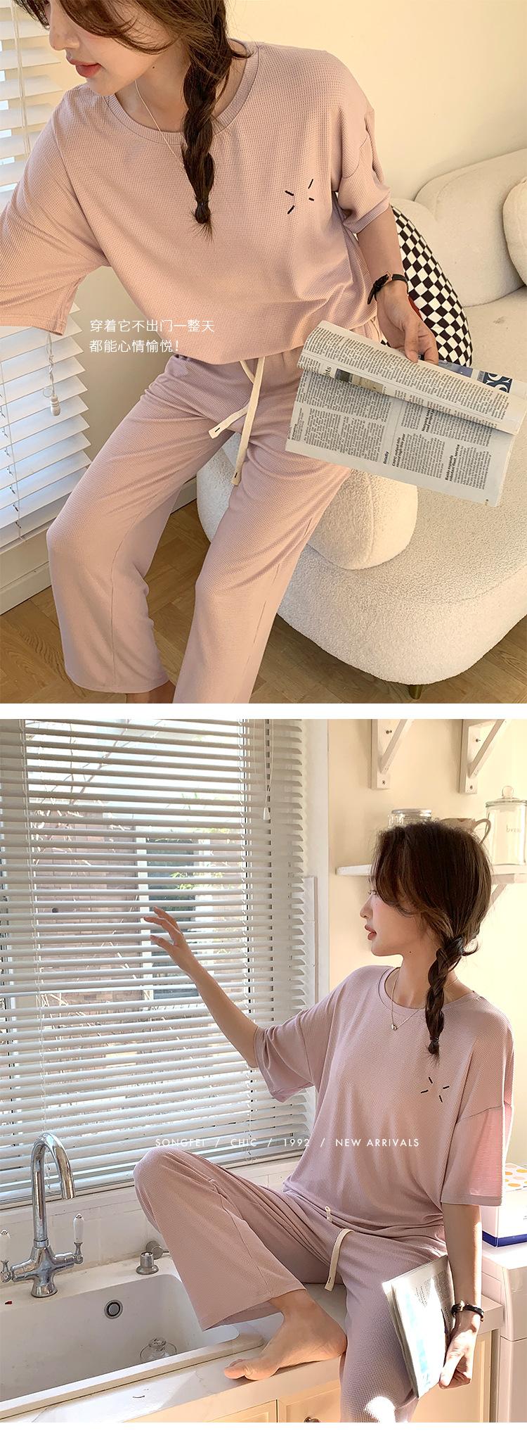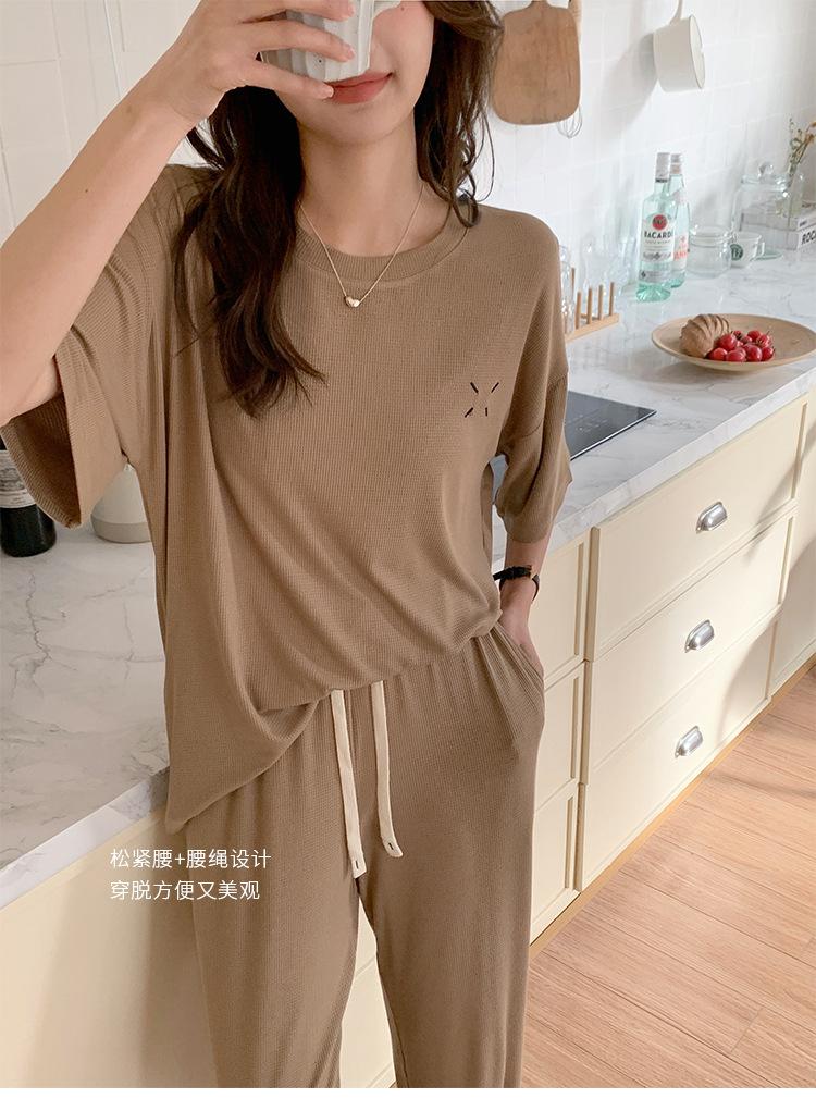 Pijamas de manga corta de modal de grano de arroz, ropa exterior suave, color liso, bordado, venta al por mayor
