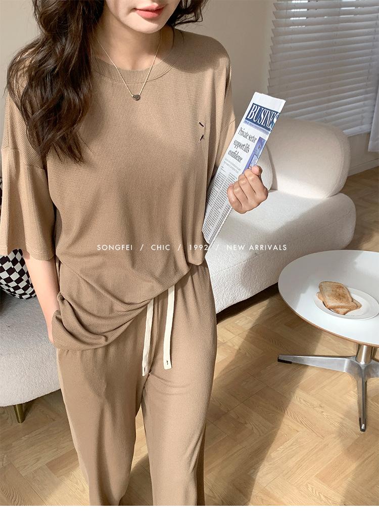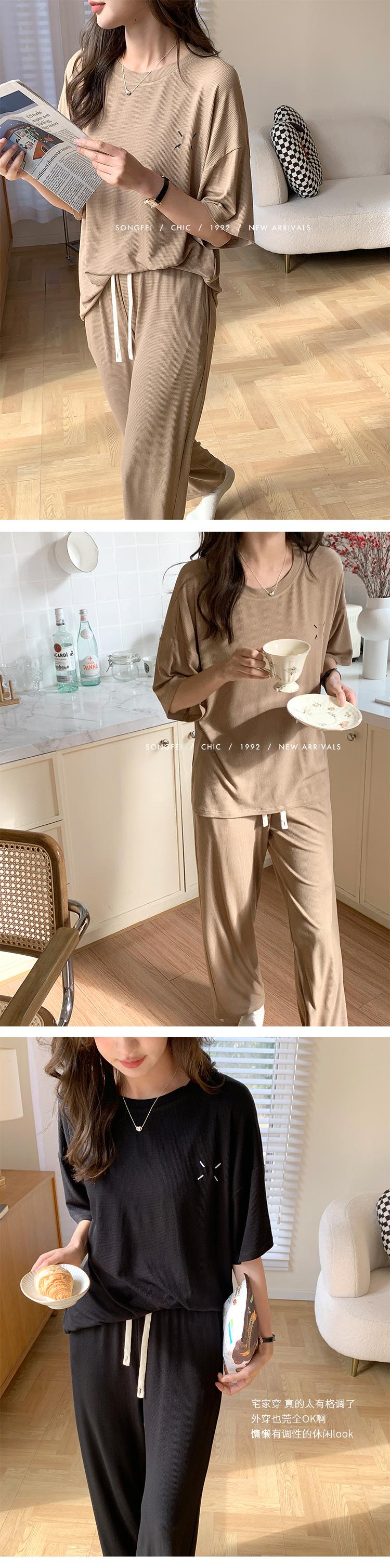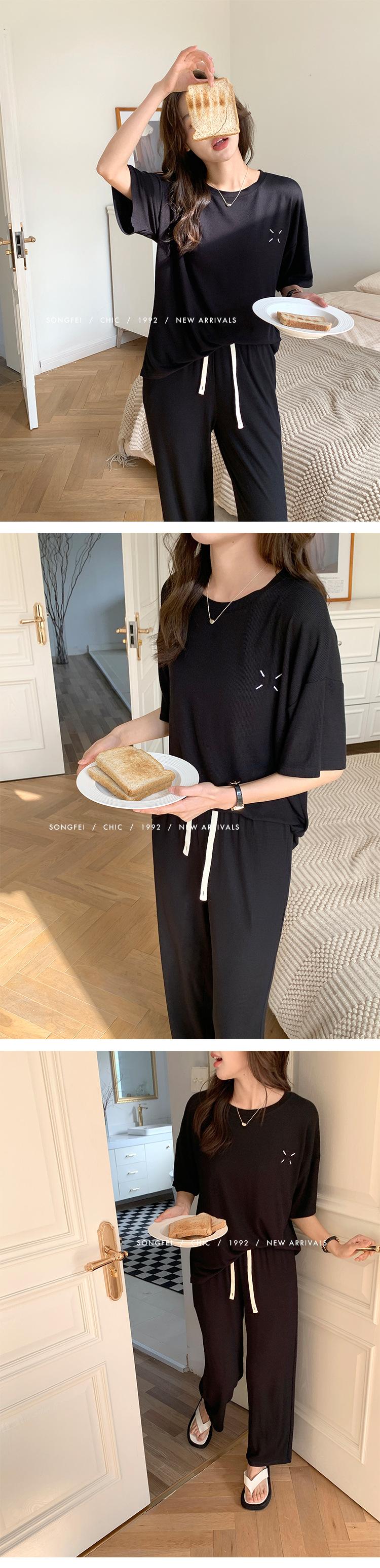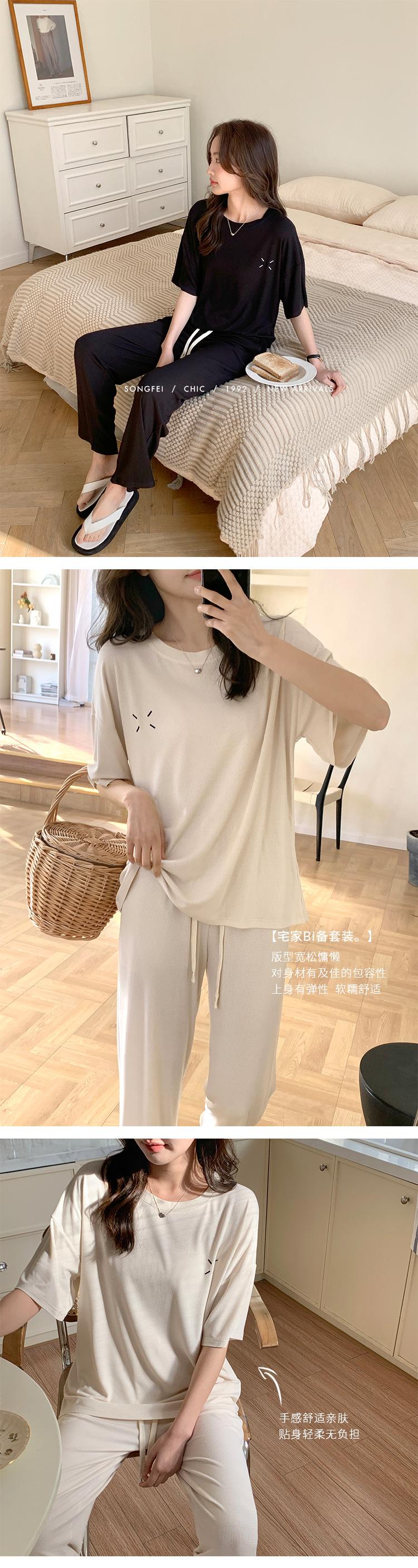 Pijamas de manga corta de modal de grano de arroz, ropa exterior suave, color liso, bordado, venta al por mayor