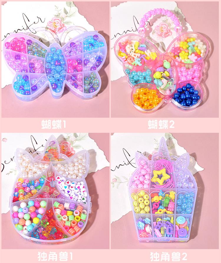 Juguetes educativos con cuentas hechos a mano para niños transfronterizos, material para usar cuentas, bolsa, pulsera, accesorios, caja de regalo, cuentas