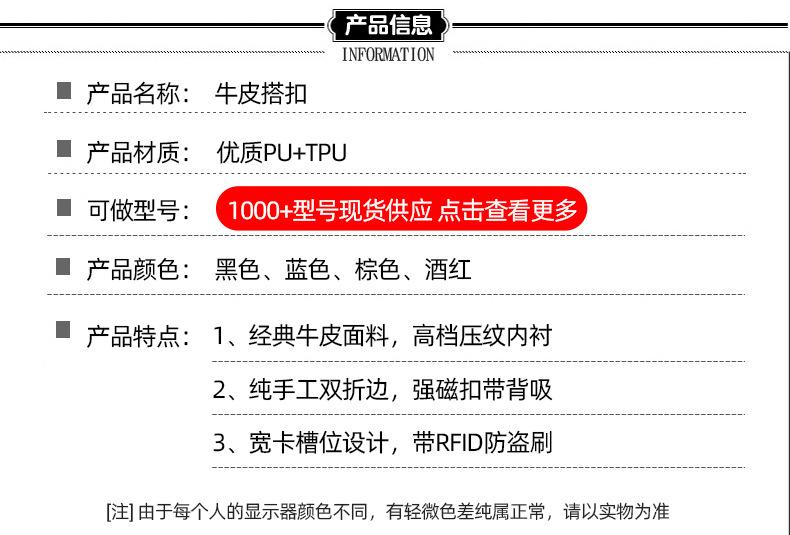 Ventaja:Tenemos más de 1,000 modelos de fundas de cuero en stock, y tenemos 10 años de experiencia en el diseño de estilos para clientes.llevar