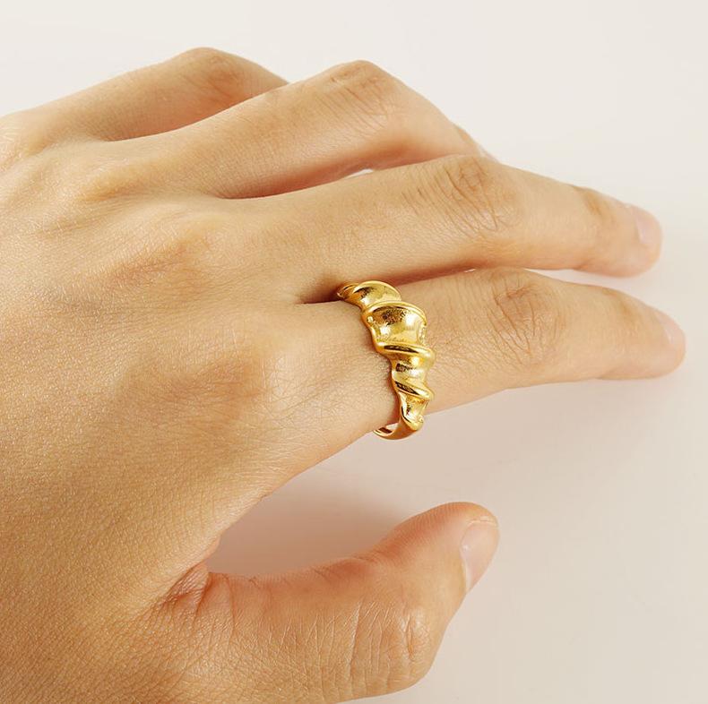 Anillo de acero inoxidable estilo ins europeo y americano para mujer, temperamento simple, irregular, 18K, abierto, ajustable, anillo, anillo, venta al por mayor