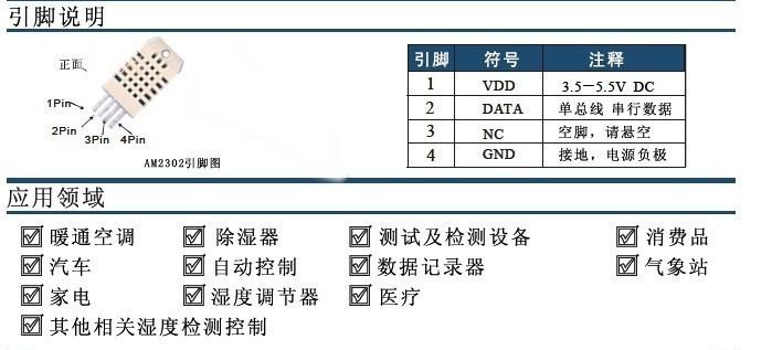 AM2302 0-100%RH -40~100℃ ±2%RH ±0.3℃ 0.1