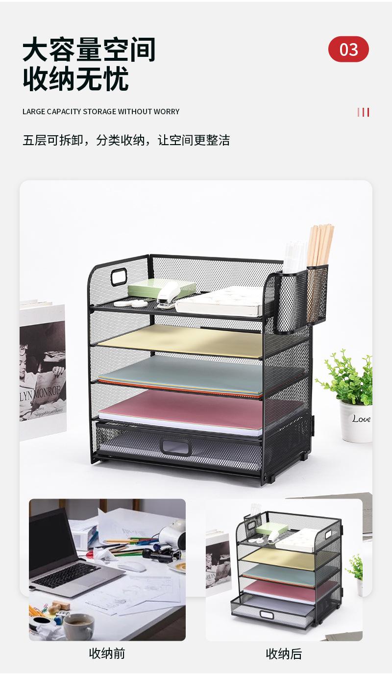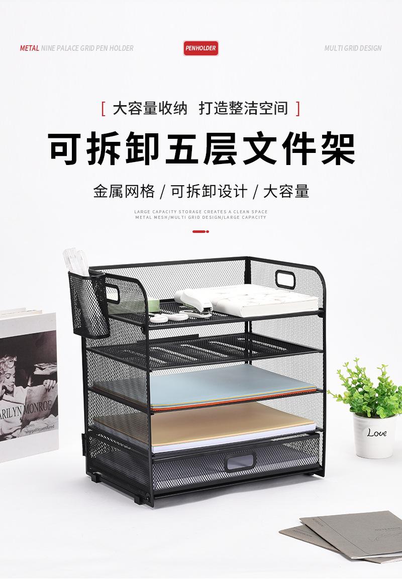 Nuevo estante de archivos desmontable de cinco capas, estante de almacenamiento multiusos de metal para escritorio, marco de archivos de almacenamiento multicapa para oficina
