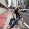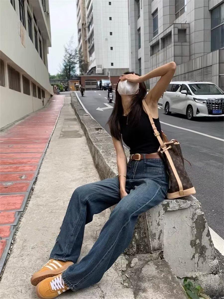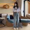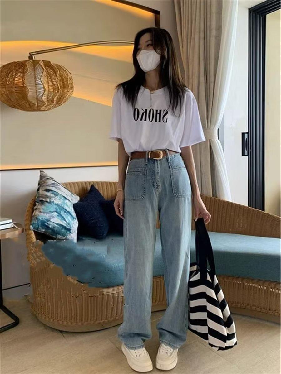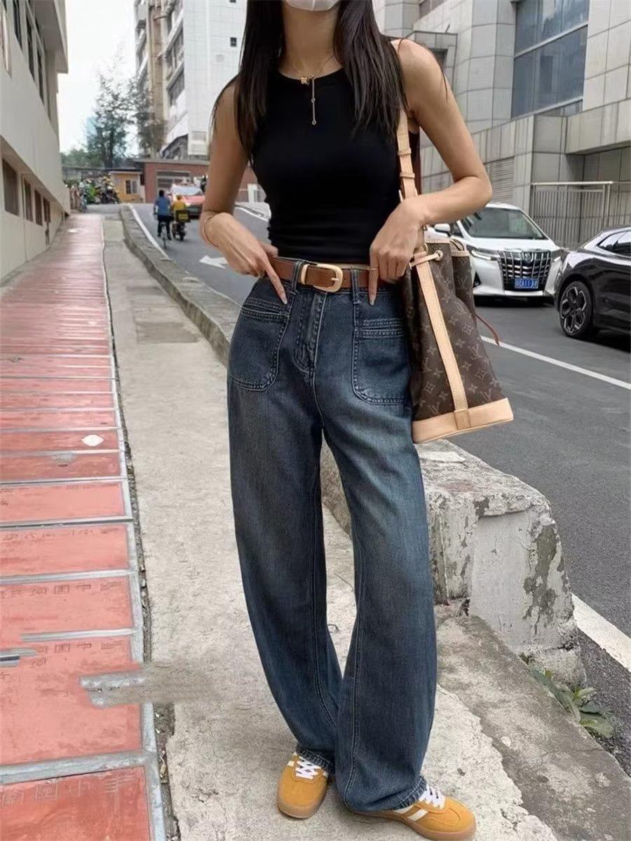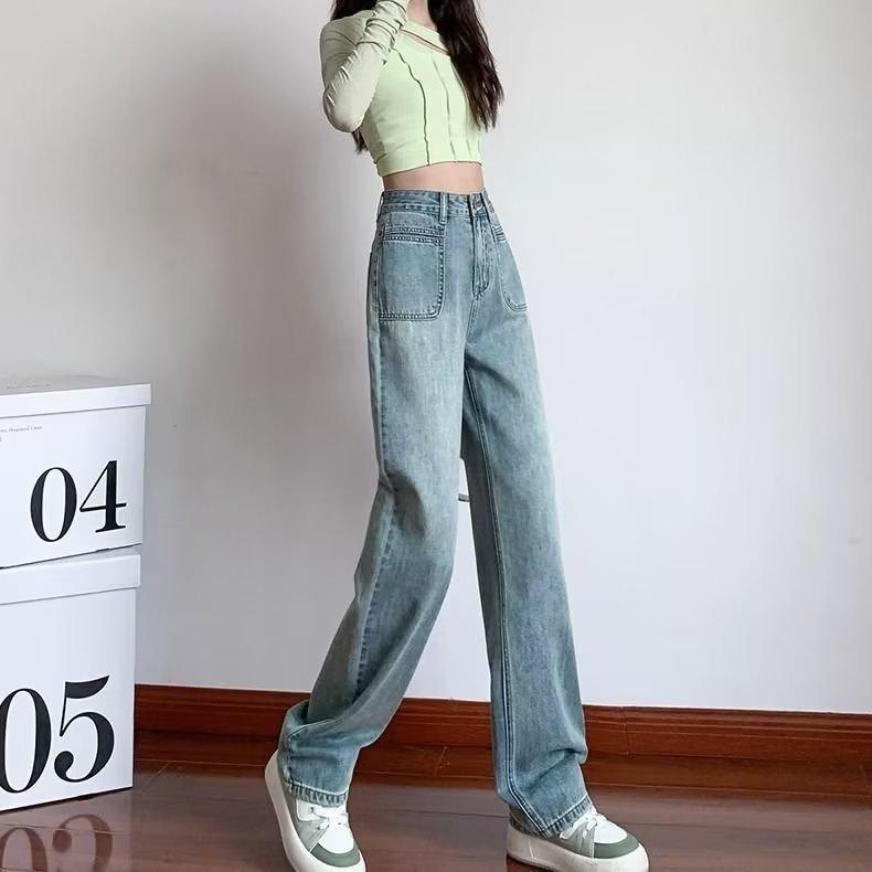 Jeans Slim de Cintura Alta y Pierna Ancha para Mujer 2024 Nuevo Adelgazante Alto Recto Suelto Caída Largo hasta el Piso Pantalones Retro