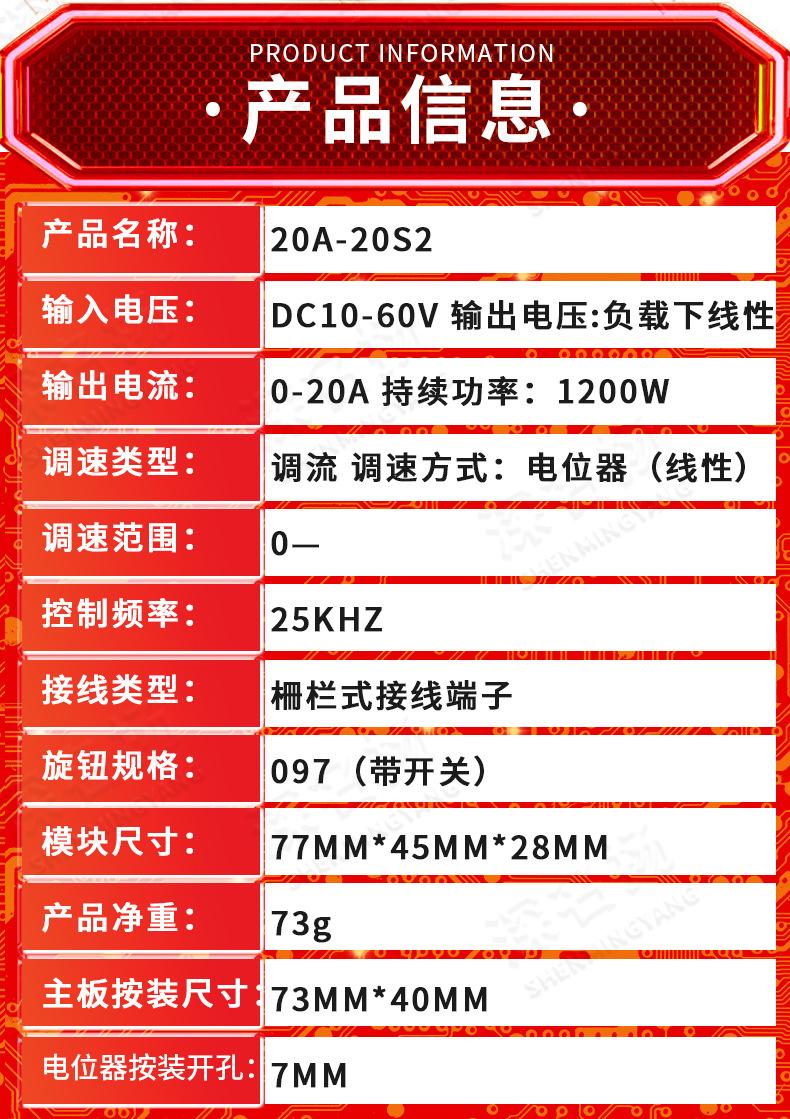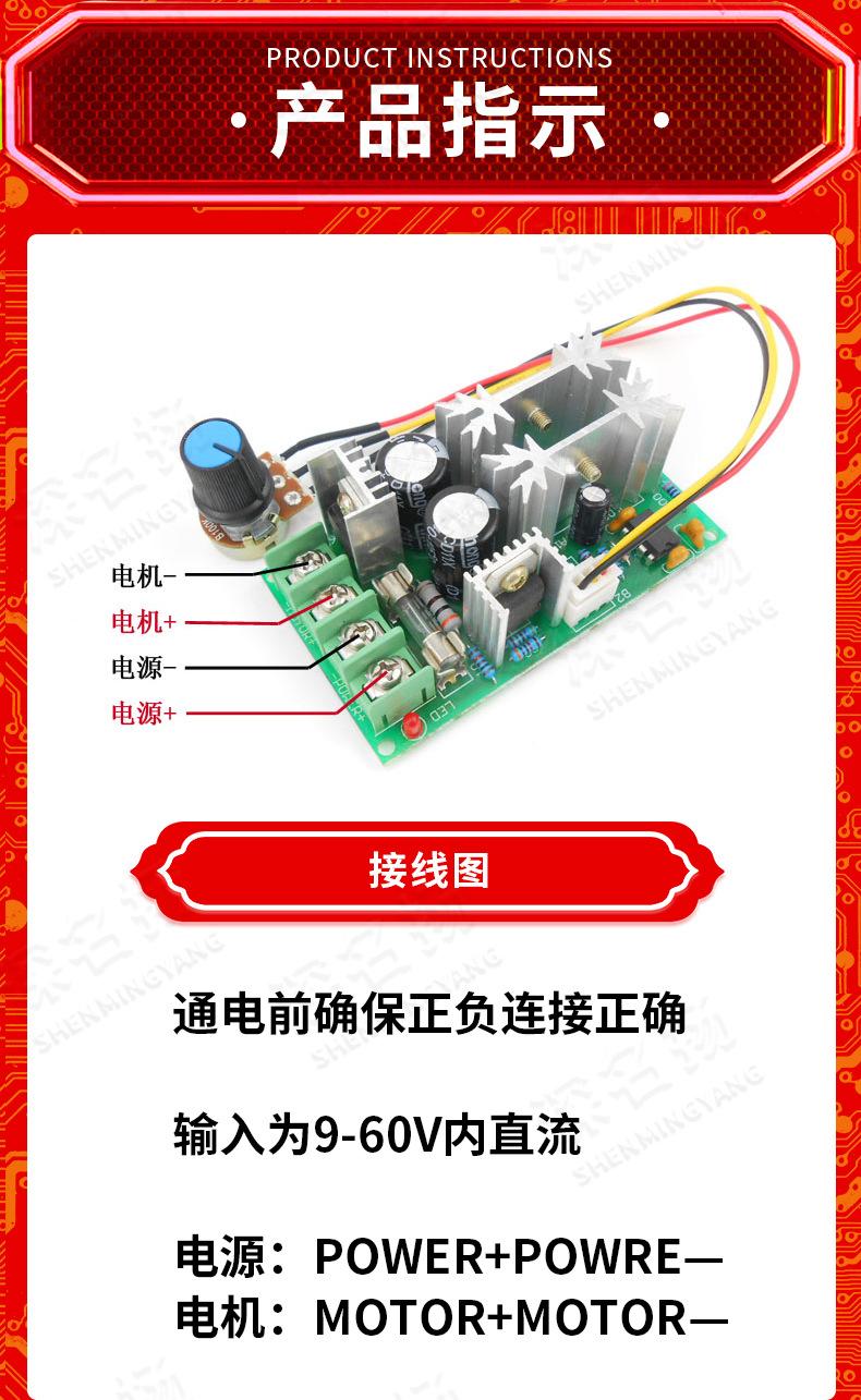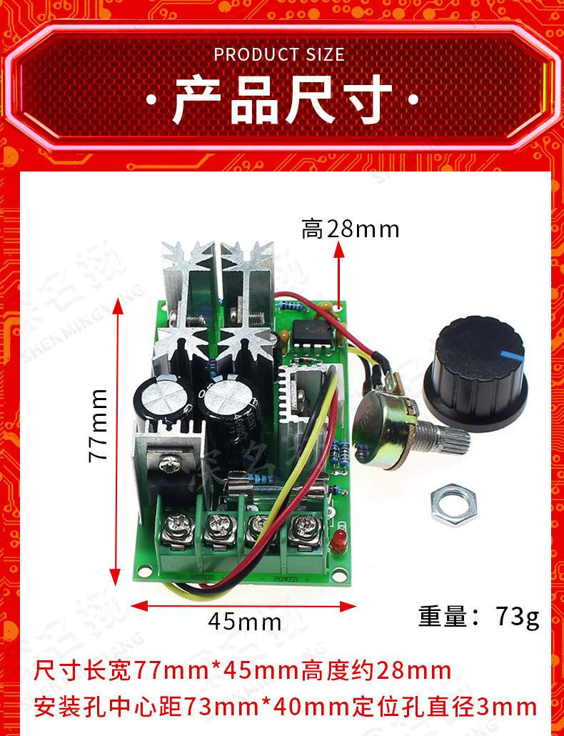 Controlador de velocidad de motor de CC de 12 V, 24 V, 36 V y 48 V, módulo de accionamiento de alta potencia, controlador PWM, regulador de corriente de 20 A.