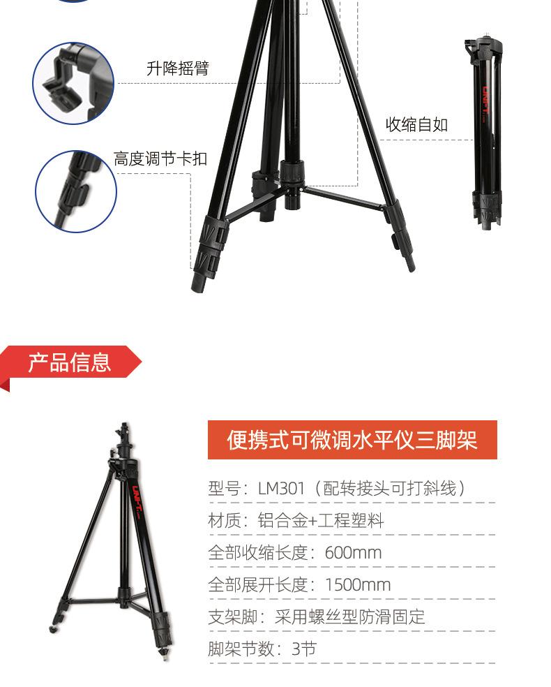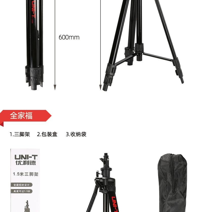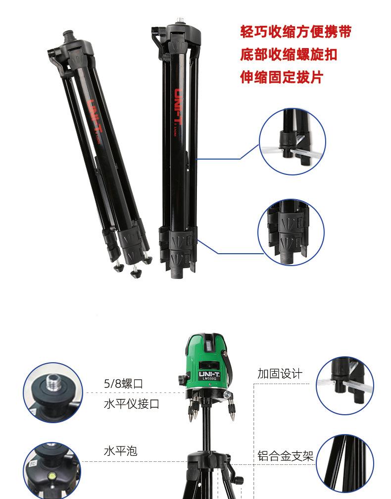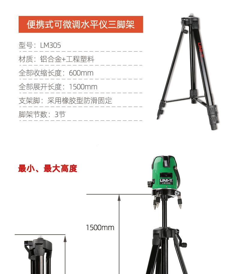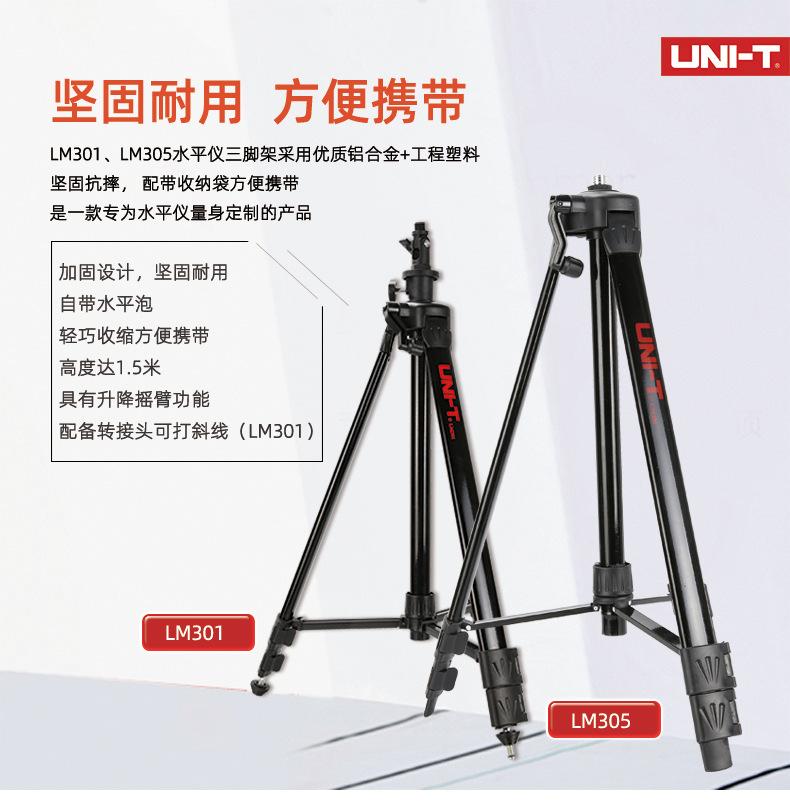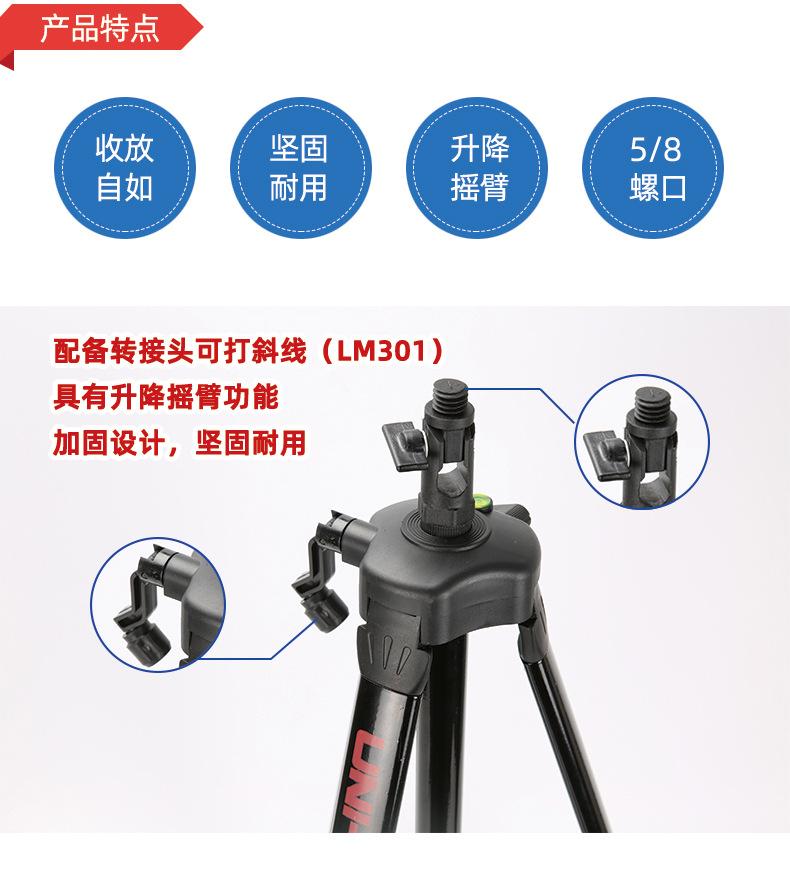 Trípode de nivel Unide LM301 con elevación por barra de aleación de aluminio engrosado, soporte telescópico de 1,5 m