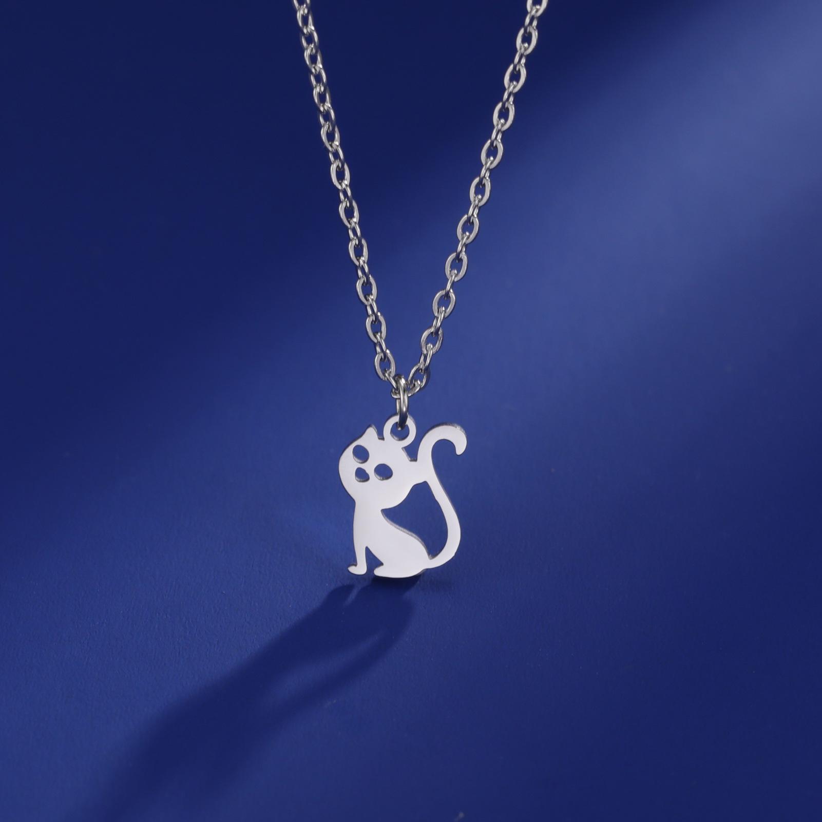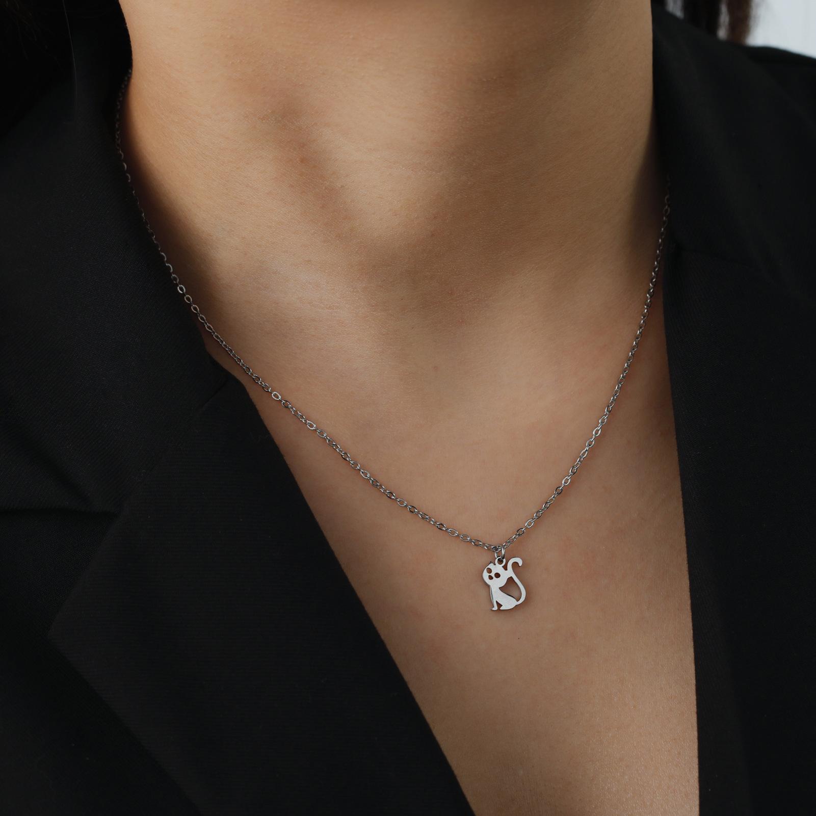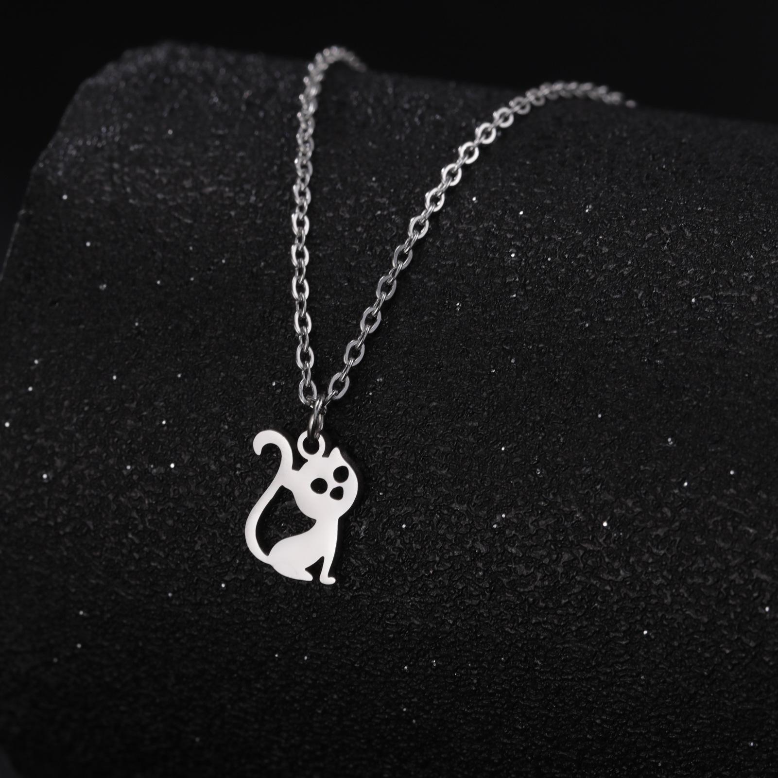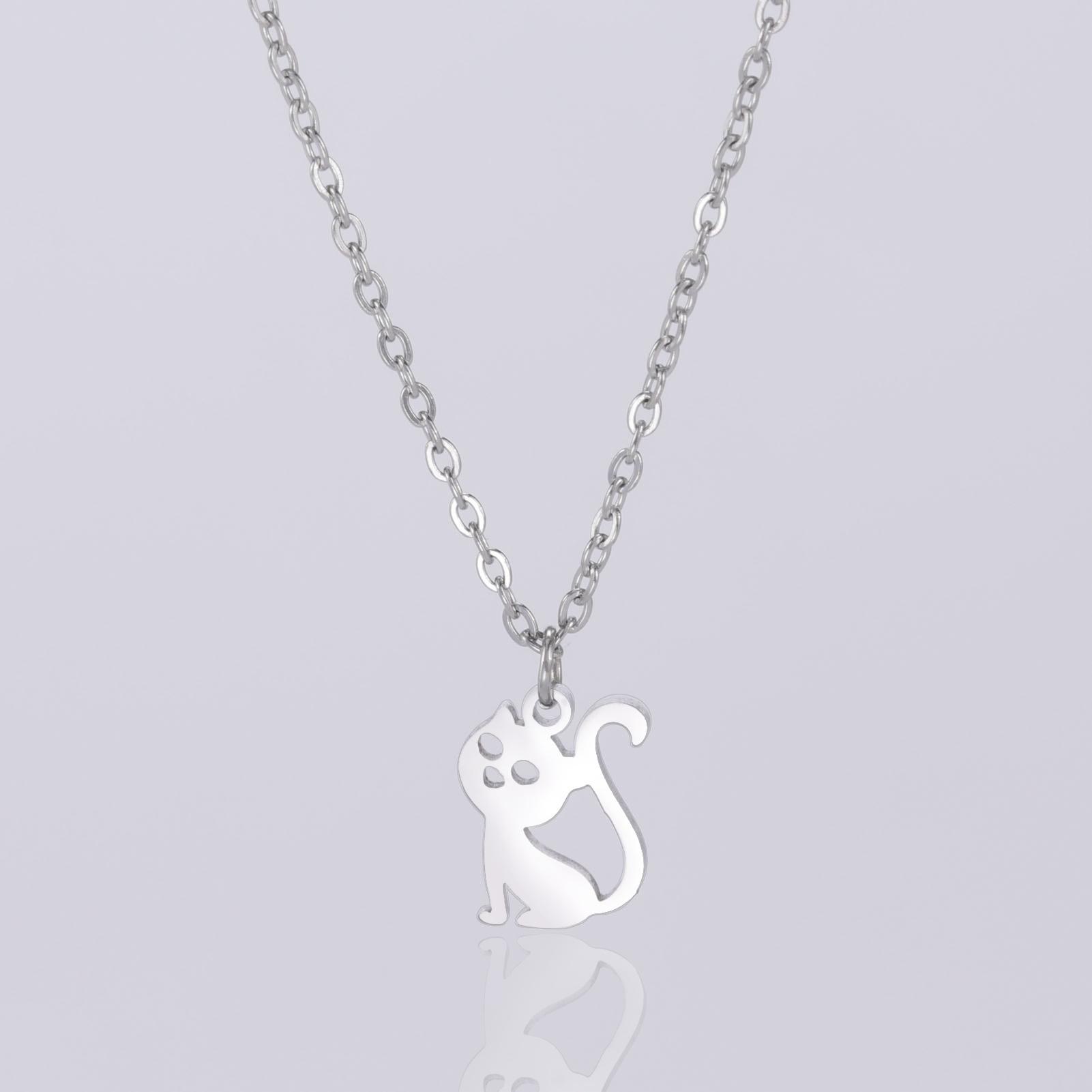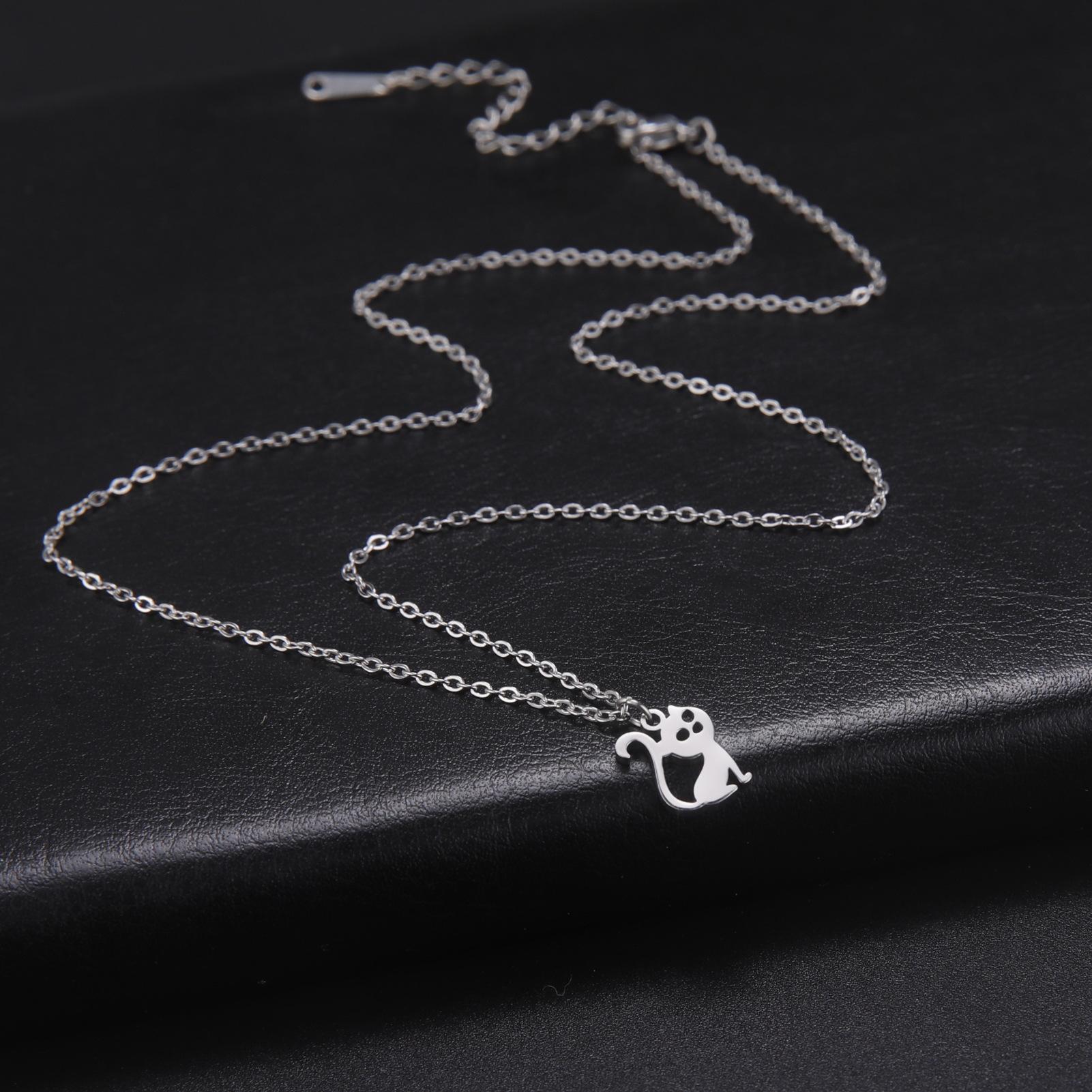 Collar con colgante de gato hueco de joyería transfronteriza al por mayor, de acero inoxidable, con forma de animal, combina con todo, lindo gatito, cadena de clavícula para mujer
