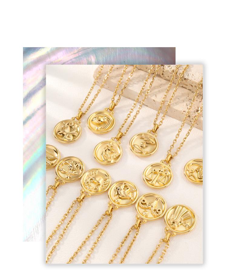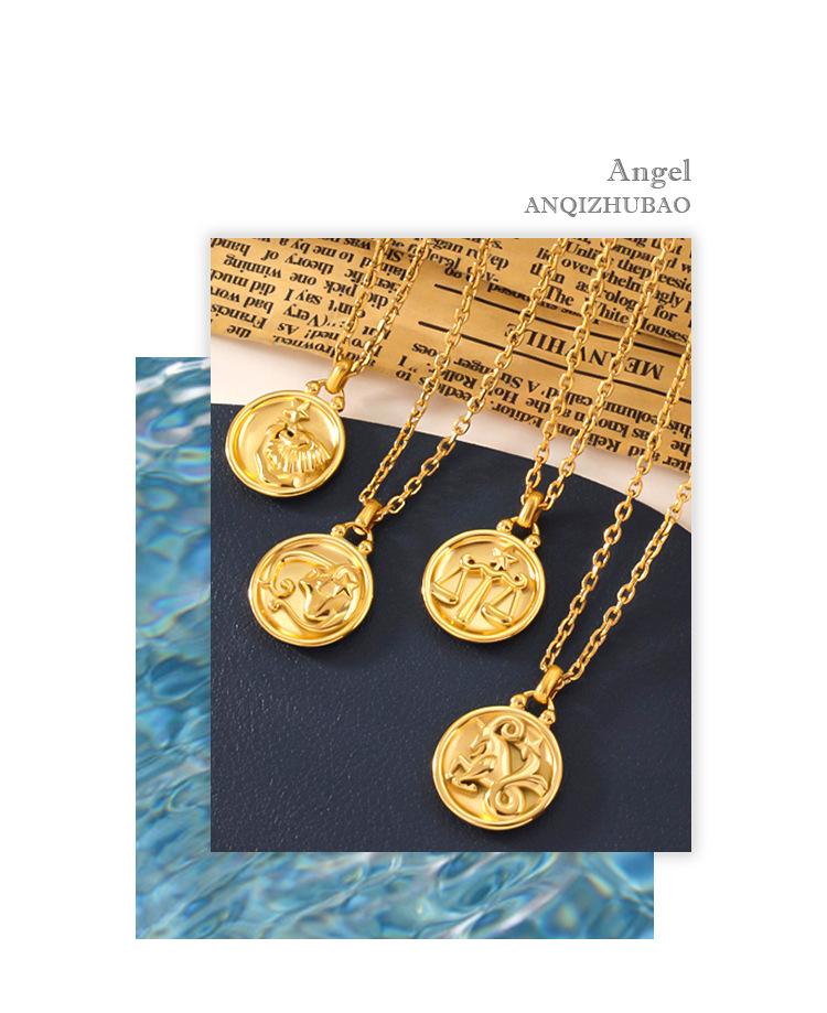 Collar con colgante de doce constelaciones de estilo europeo y americano original, cadena de suéter apilada de alta calidad, cadena de clavícula de oro de 18 quilates al por mayor
