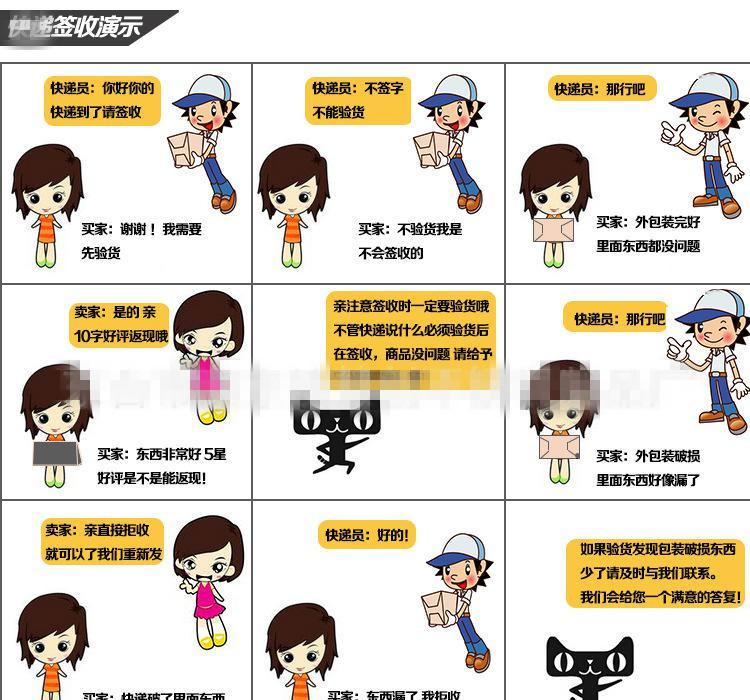 Antes de recibir (firmar) la mercancía, compruebe si está dañada (es necesario desembalarla para su inspección) (especialmente la verificación de la cantidad). Si presenta algún daño, no la acepte y devuélvala. Nos encargaremos de ello. Si la cantidad es incorrecta, nuestra empresa puede solicitar una compensación a la empresa de mensajería. Si firma sin una inspección minuciosa, será responsable de todas las consecuencias. ¡Preste atención! Y asegúrese de firmar en persona (las consecuencias de recogerla en nombre de terceros corren por su cuenta y riesgo). Si tiene alguna pregunta al recibir la mercancía, consulte con nuestro personal de atención al cliente y haremos todo lo posible por resolver sus problemas.