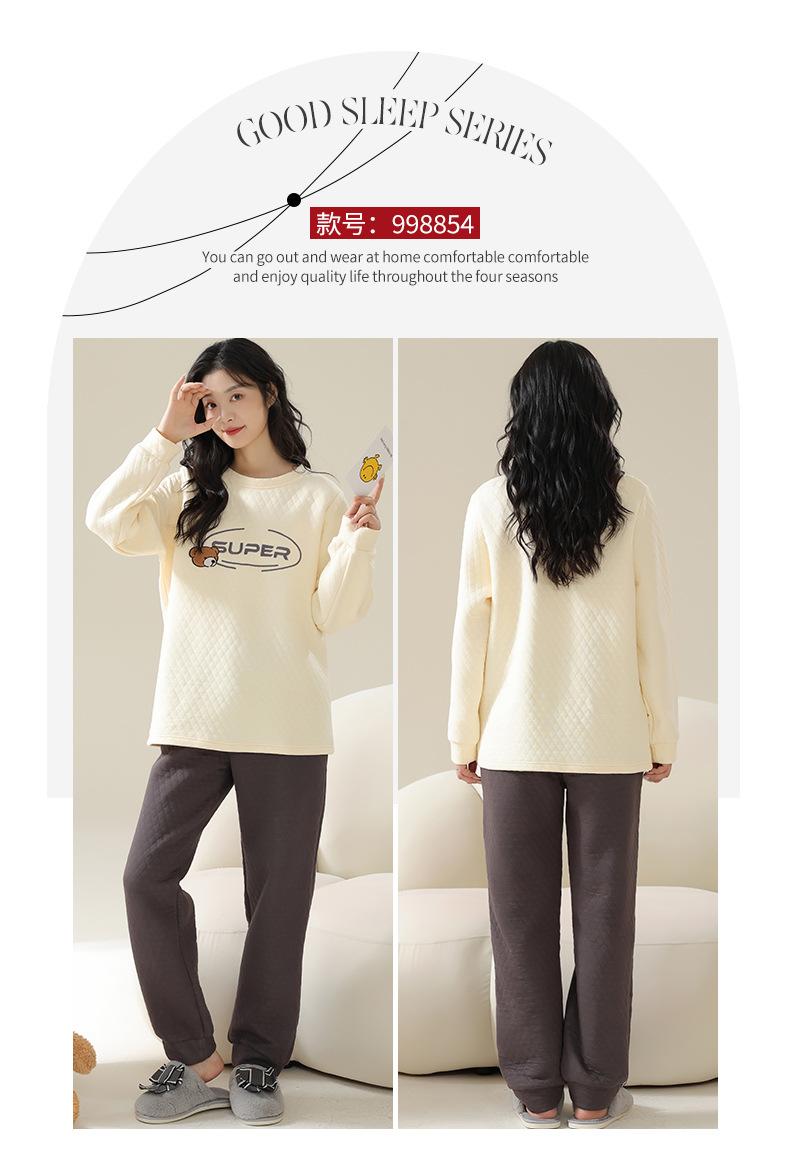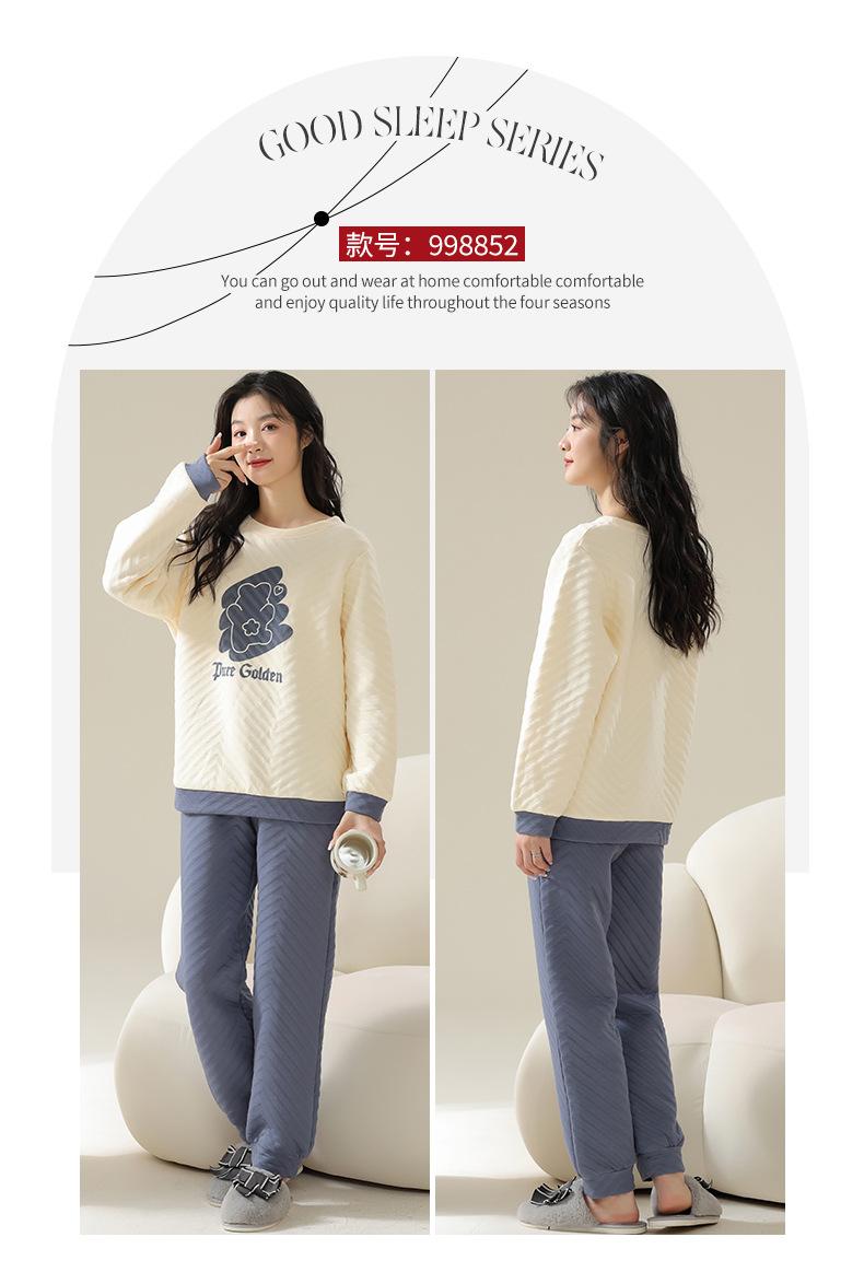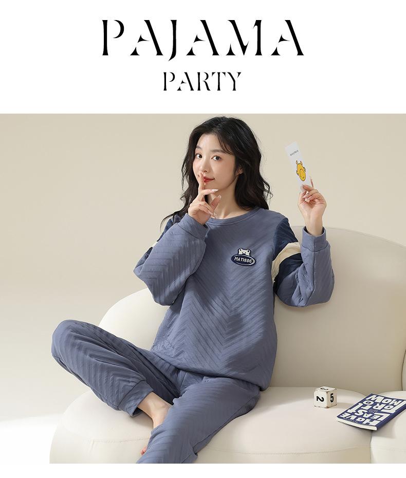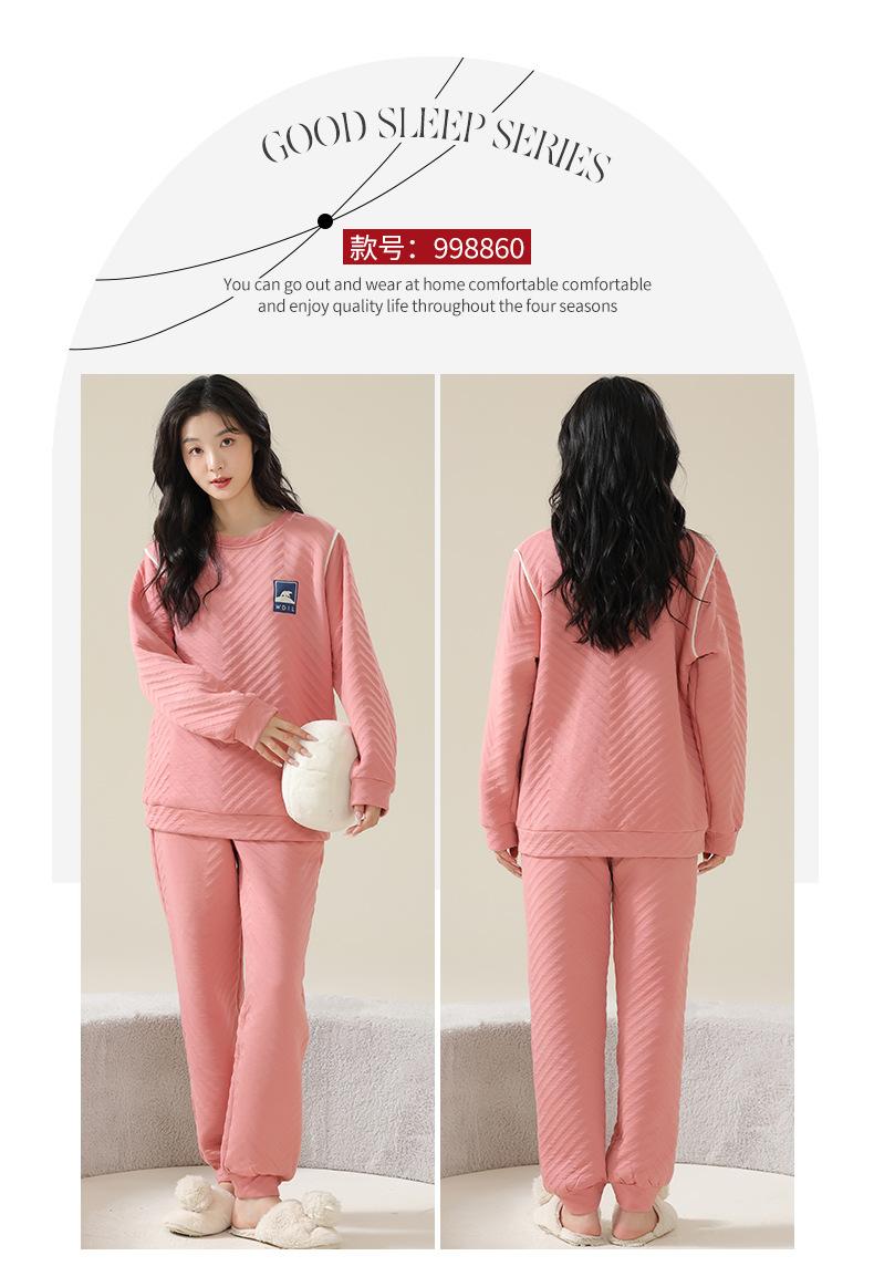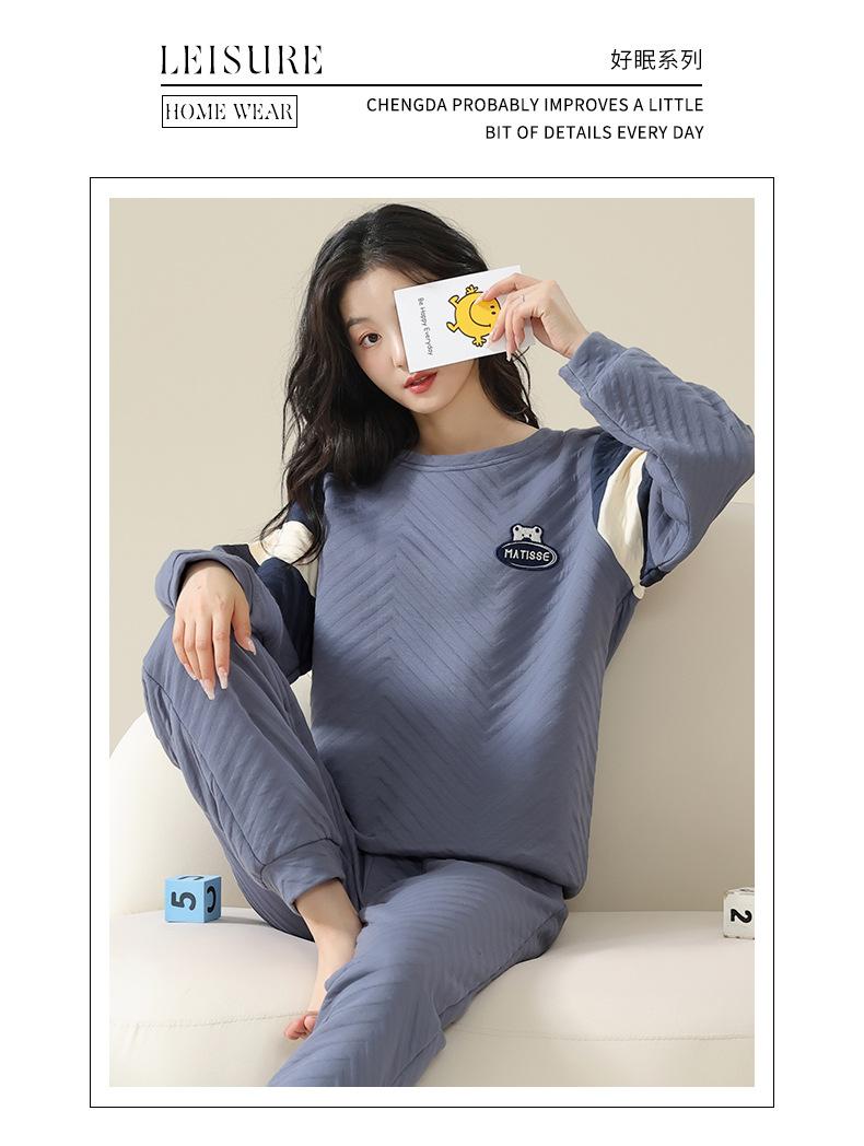 Nuevo pijama de algodón tipo sándwich de invierno para mujer, cálido, grueso, de tres capas, acolchado, sencillo, informal, para el hogar