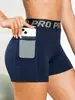 Pantalones cortos deportivos de verano para mujer, de cintura alta, para yoga, fitness, con bolsillo de malla, de tres puntos, para correr