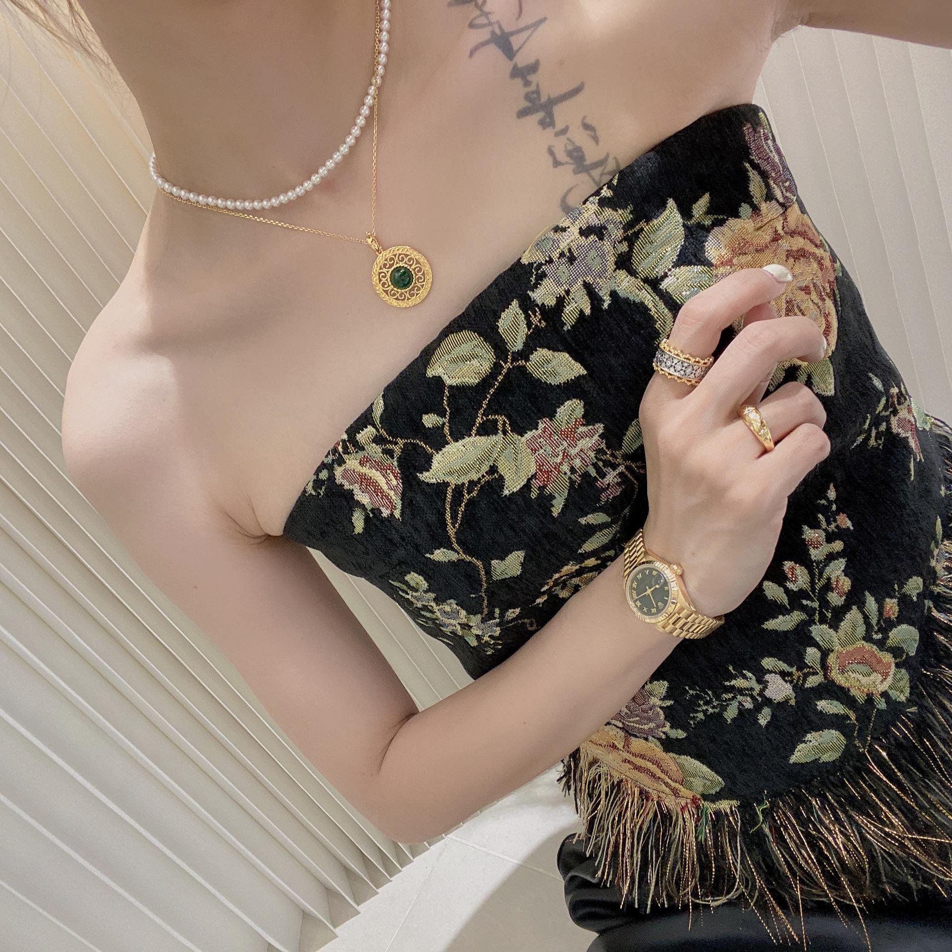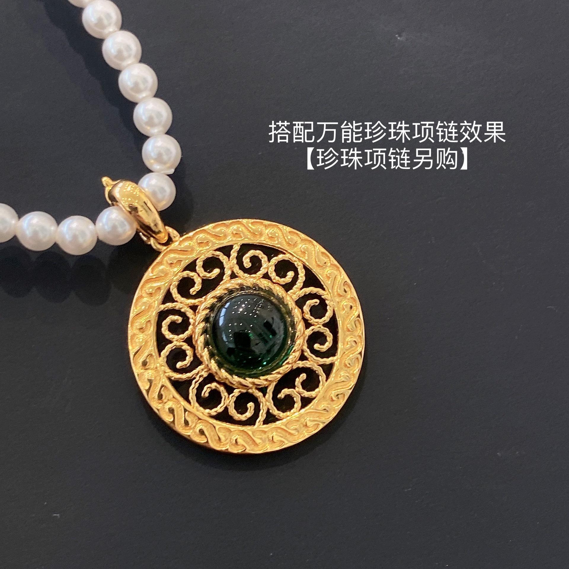 Collar Versátil de Plata Esterlina 925 con Colgante Redondo Retro Europeo y Americano, Esmeralda Tallada, Proceso de Galvanoplastia Seiko Redondo