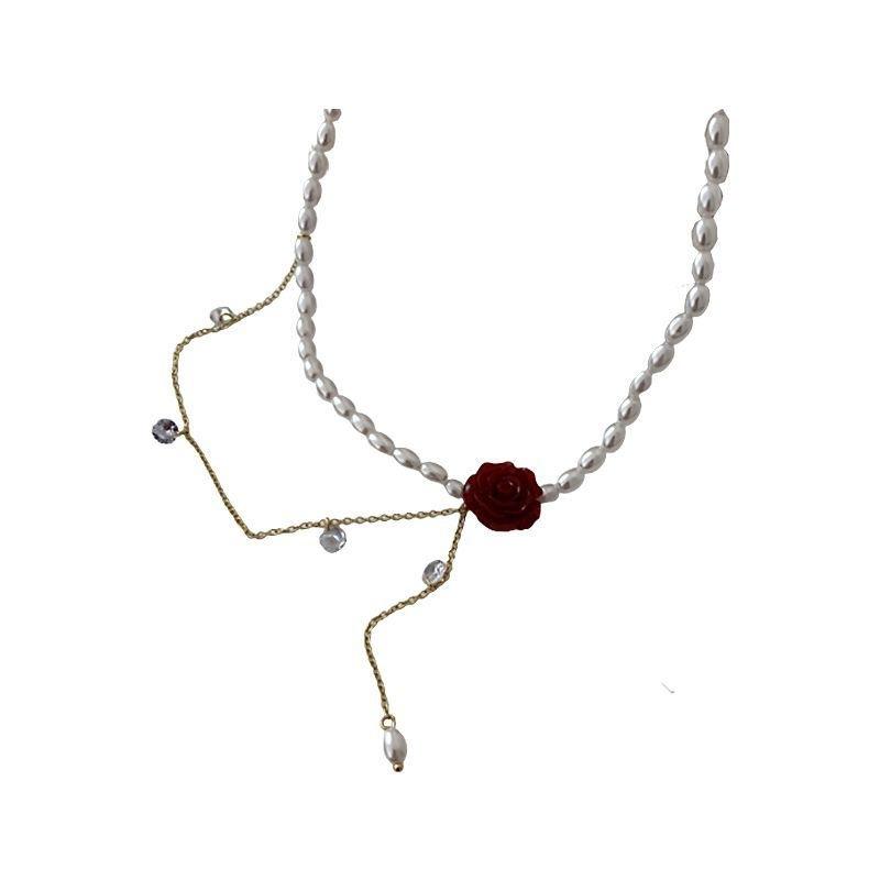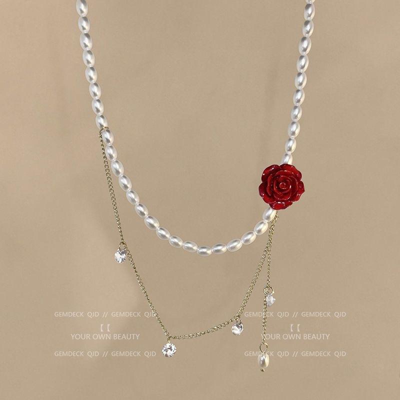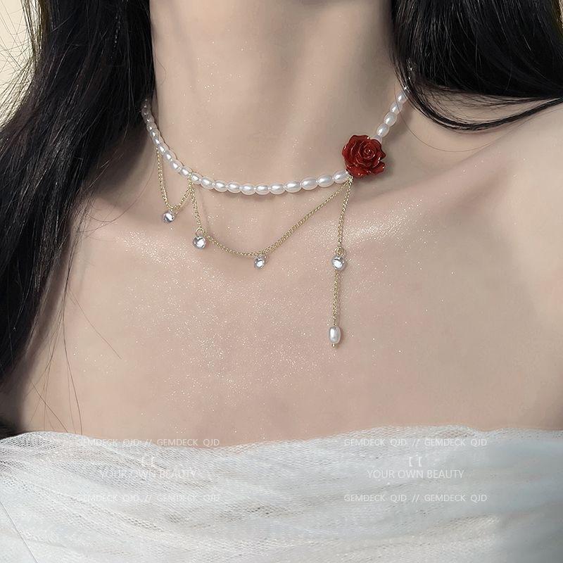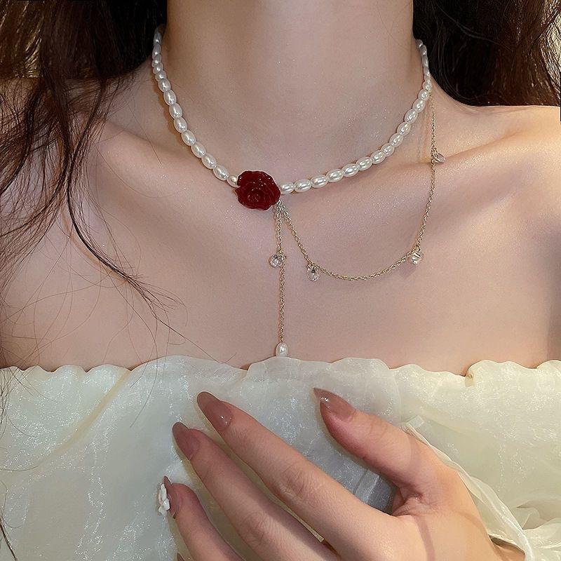 Collar de perlas y rosas para mujer, diseño moderno de nicho, de alta gama, ligero, de lujo, combinable con todo, elegante cadena de clavícula para mujer.