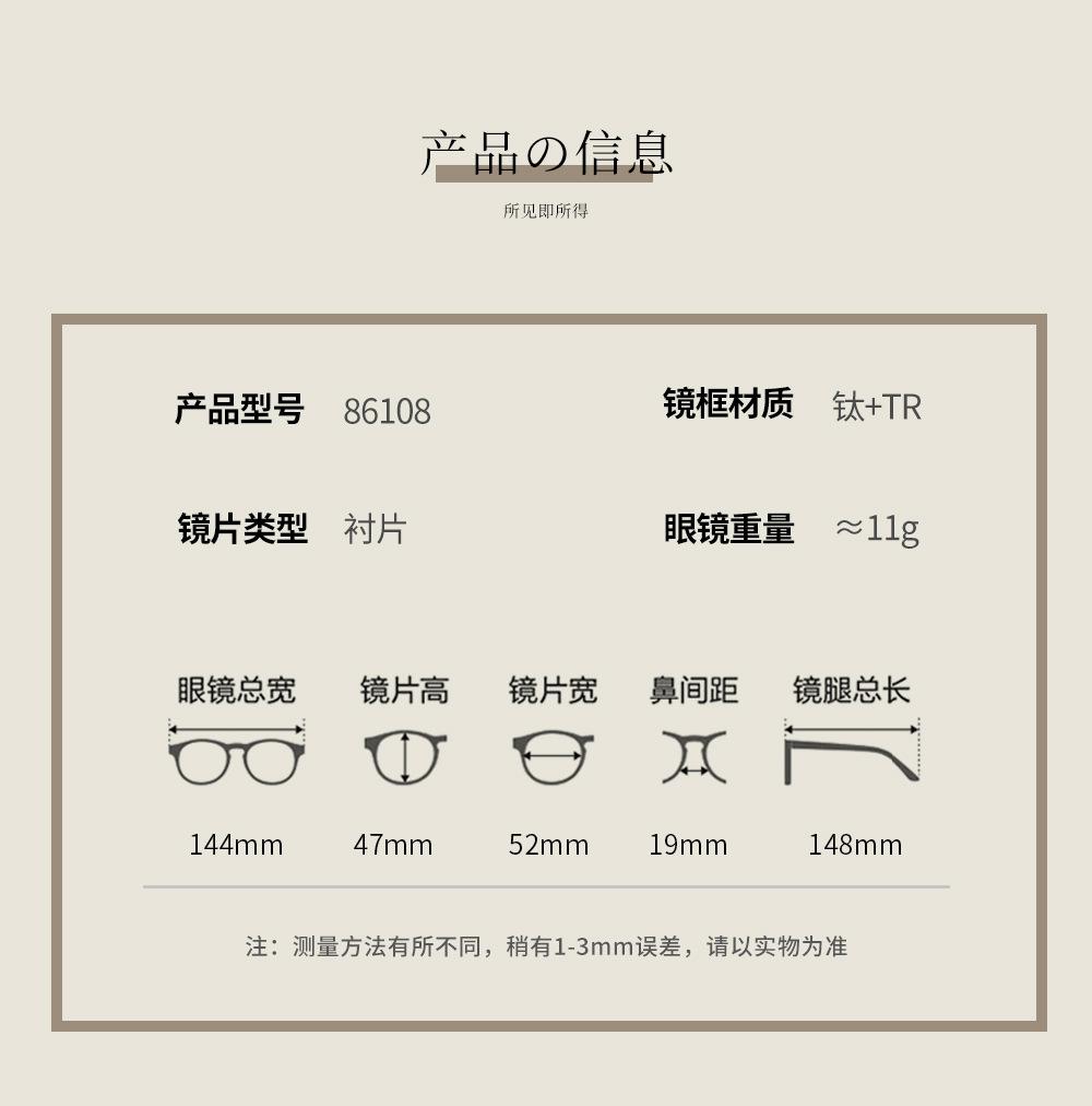 Gafas de miopía transparentes de moda para mujer, montura de titanio puro 86108, montura grande vintage, gafas lisas, gafas Danyang