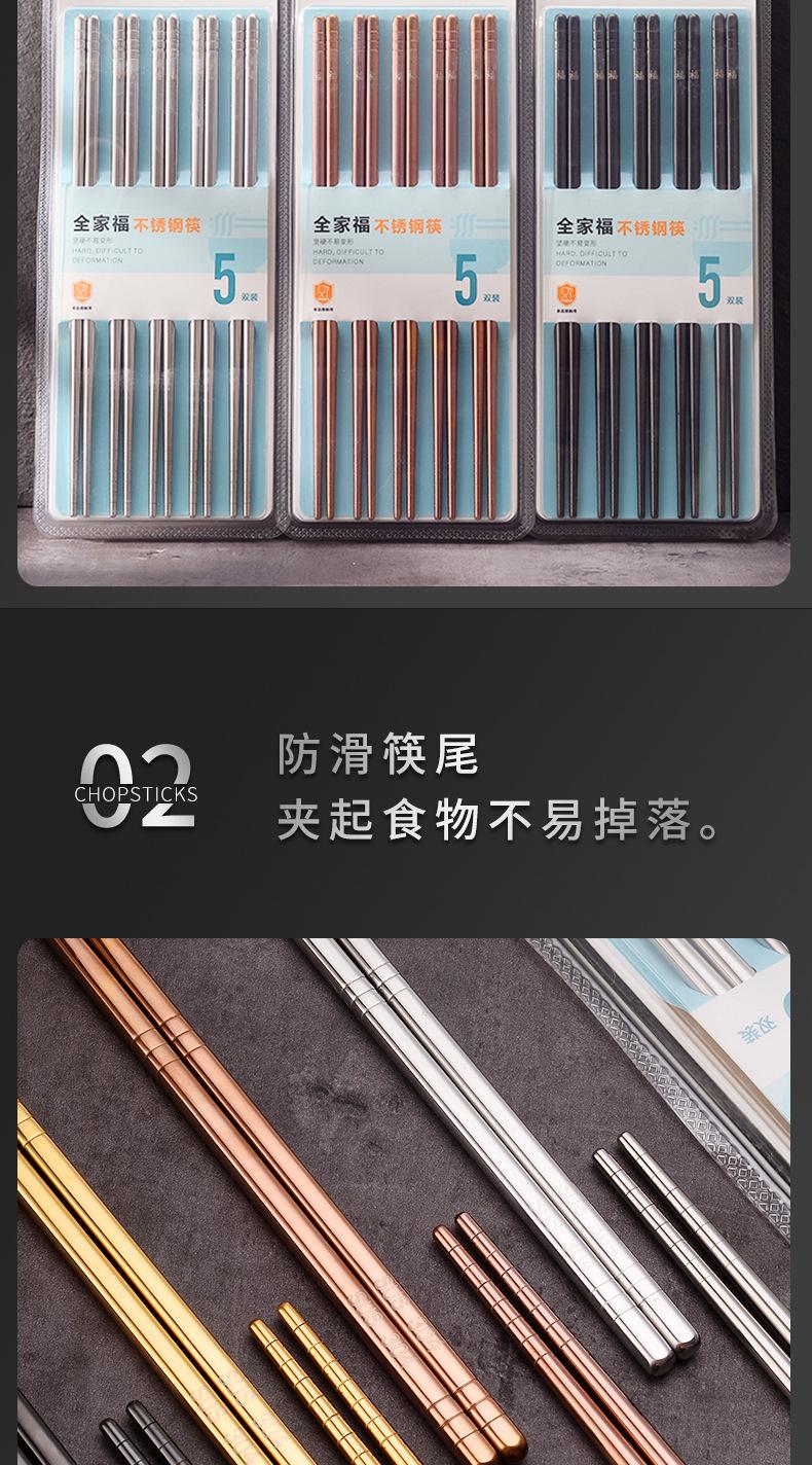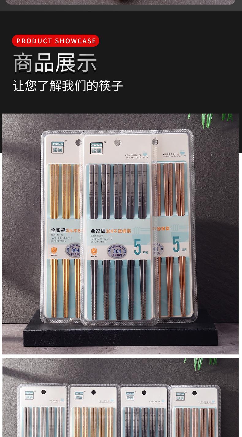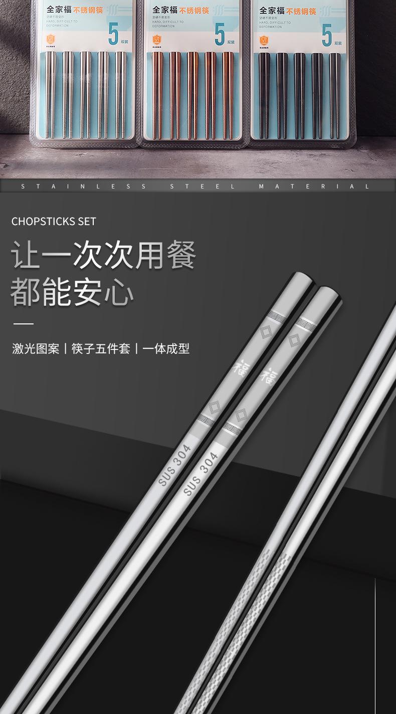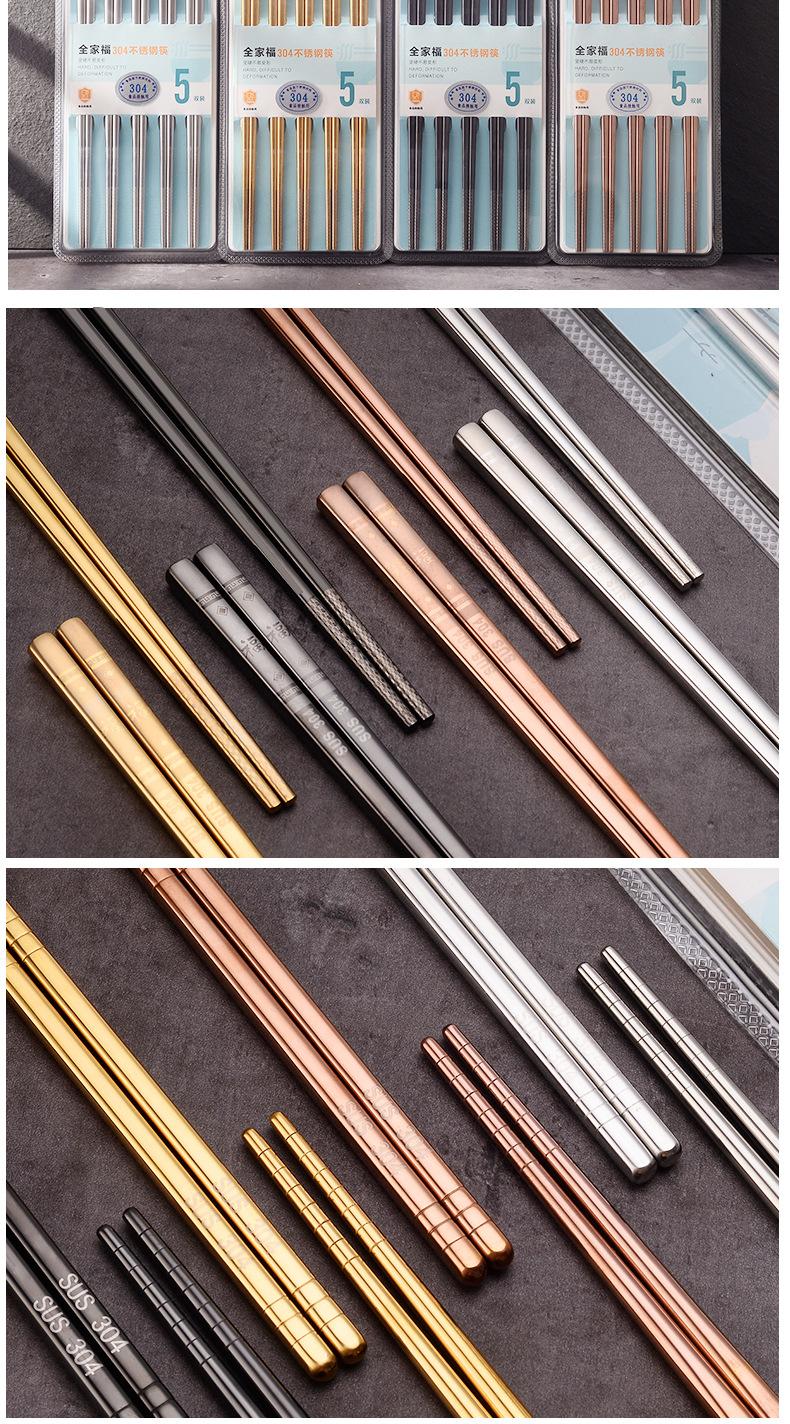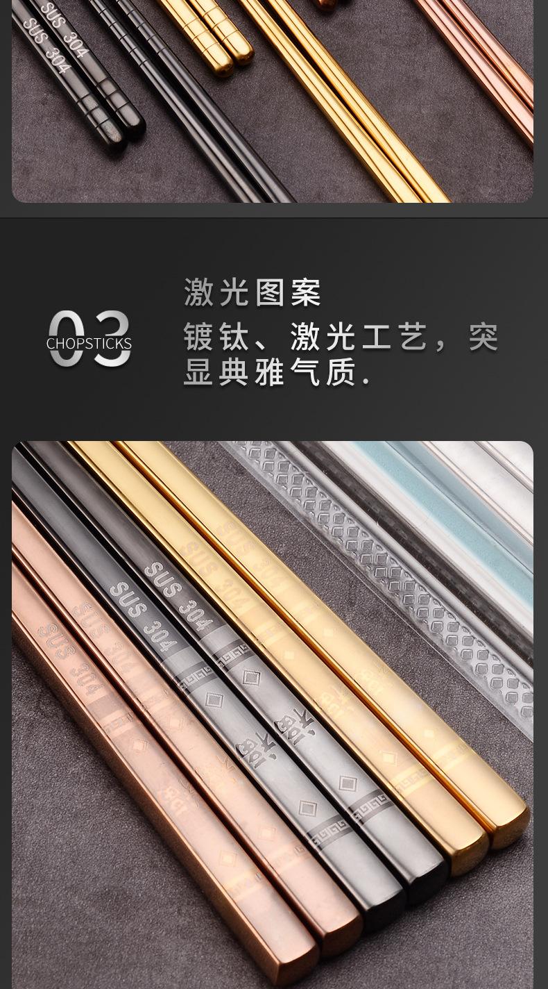 Palillos cuadrados huecos antideslizantes de acero inoxidable 304 5 pares de palillos de acero inoxidable de formación integrada por láser juego de 5 piezas