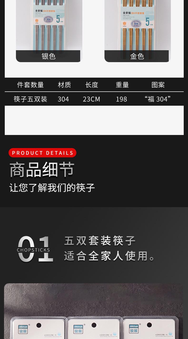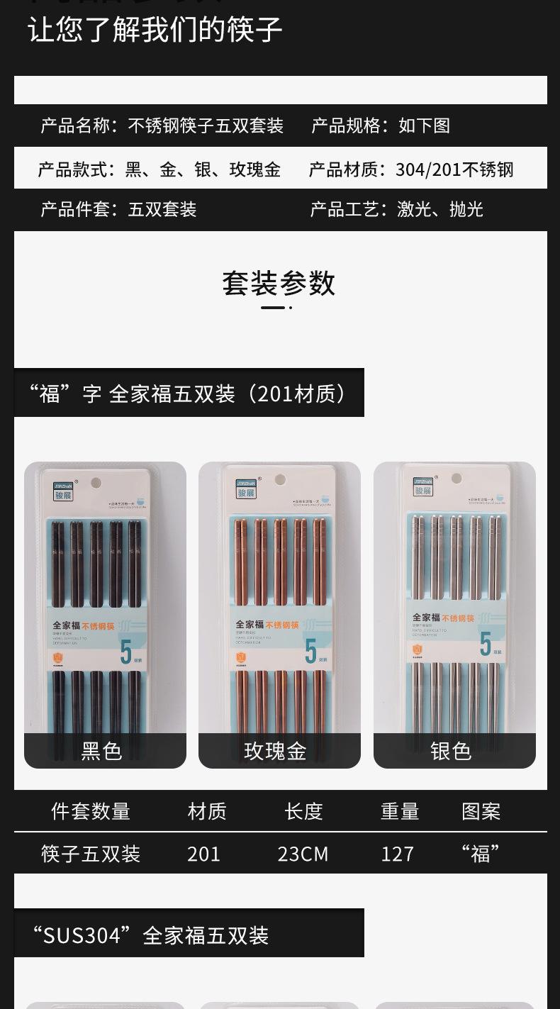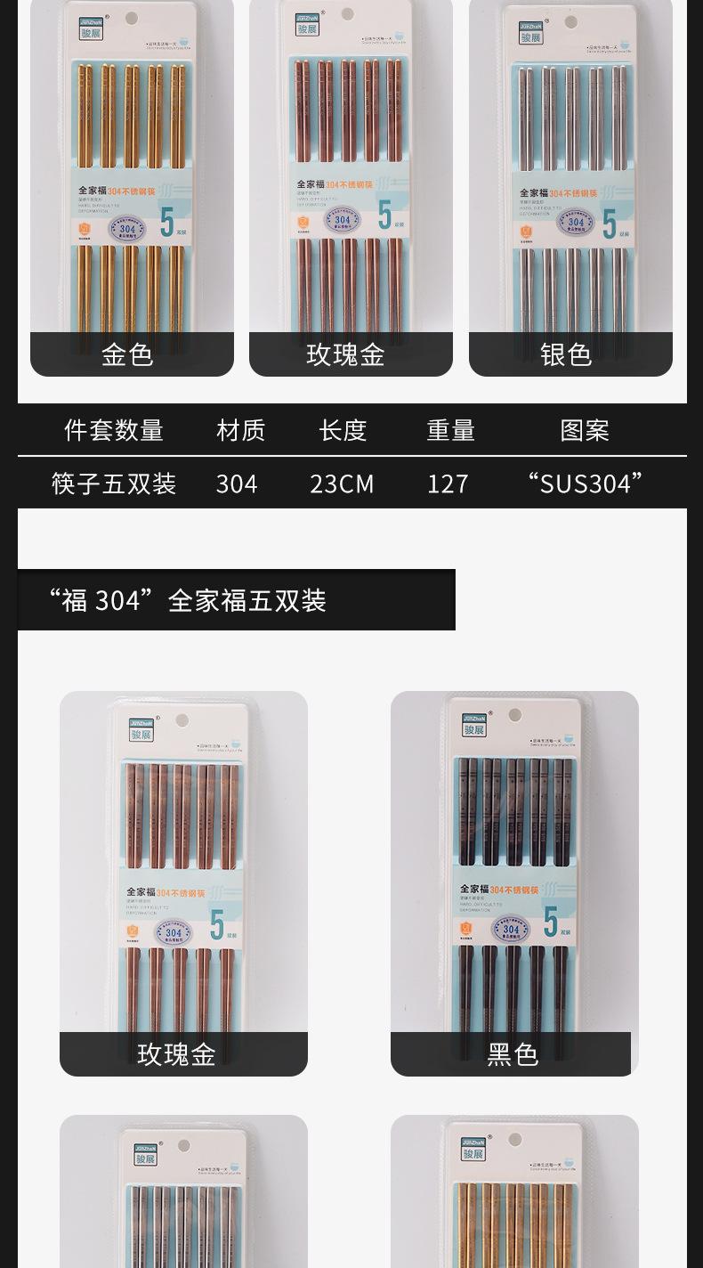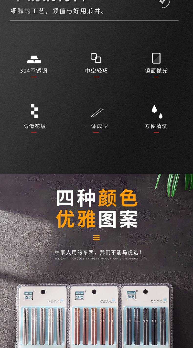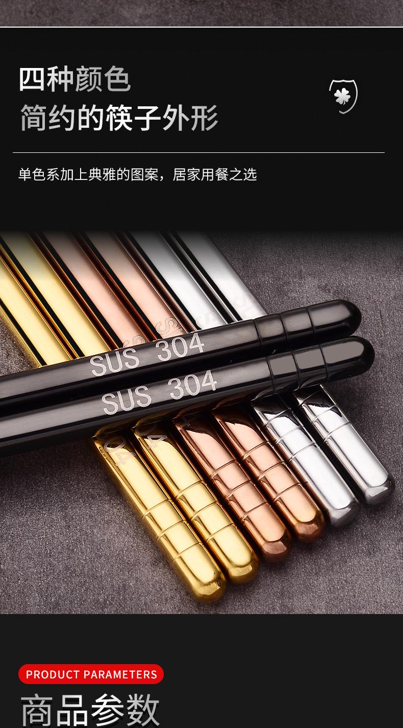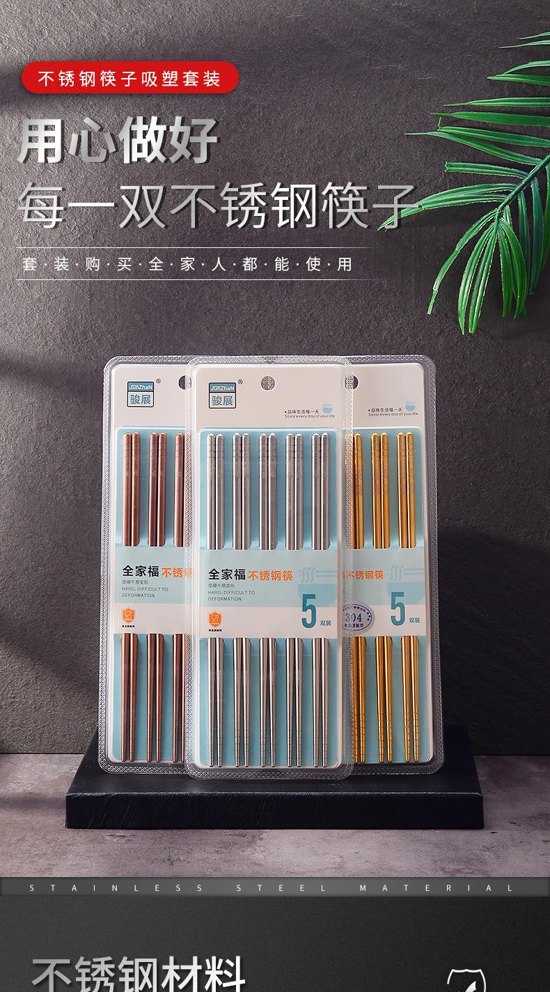 Palillos cuadrados huecos antideslizantes de acero inoxidable 304 5 pares de palillos de acero inoxidable de formación integrada por láser juego de 5 piezas