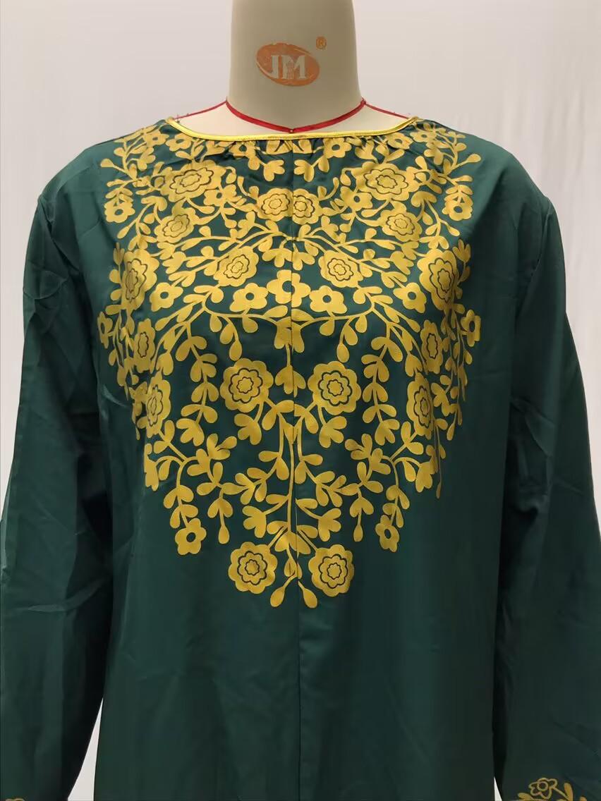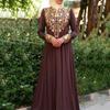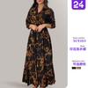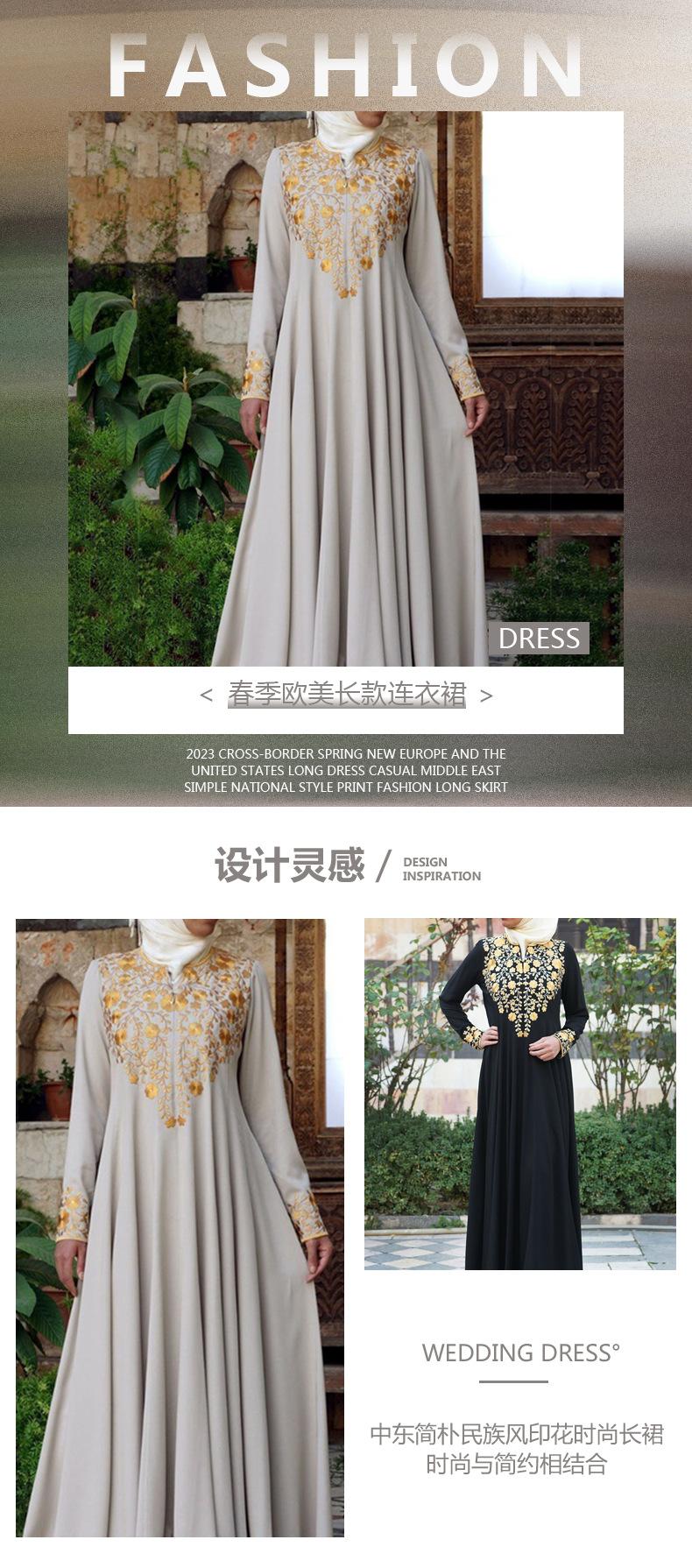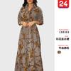 2025 Primavera Transfronteriza Nuevo Vestido Largo Europeo y Americano Casual Estilo Étnico Simple de Medio Oriente Estampado Vestido Largo de Moda