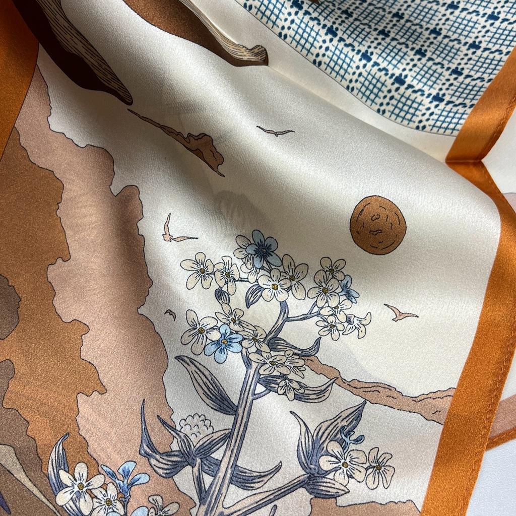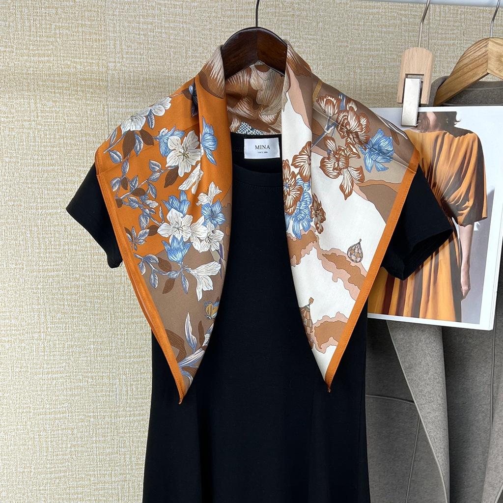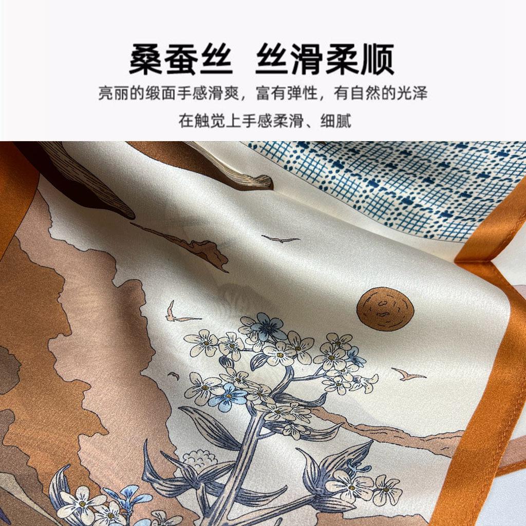 Bufanda cuadrada de seda morera 100% estilo pastoral de 70 cm, bufanda fina de primavera y otoño para mujer, bufanda de seda para regalo