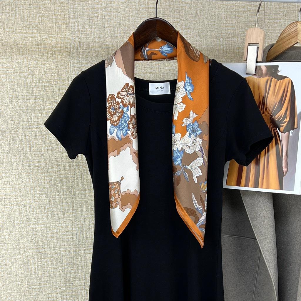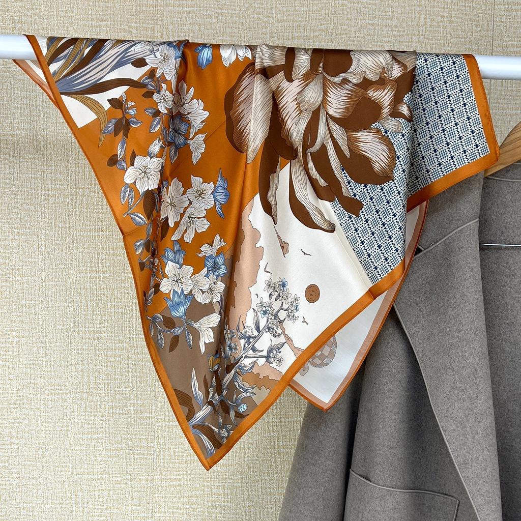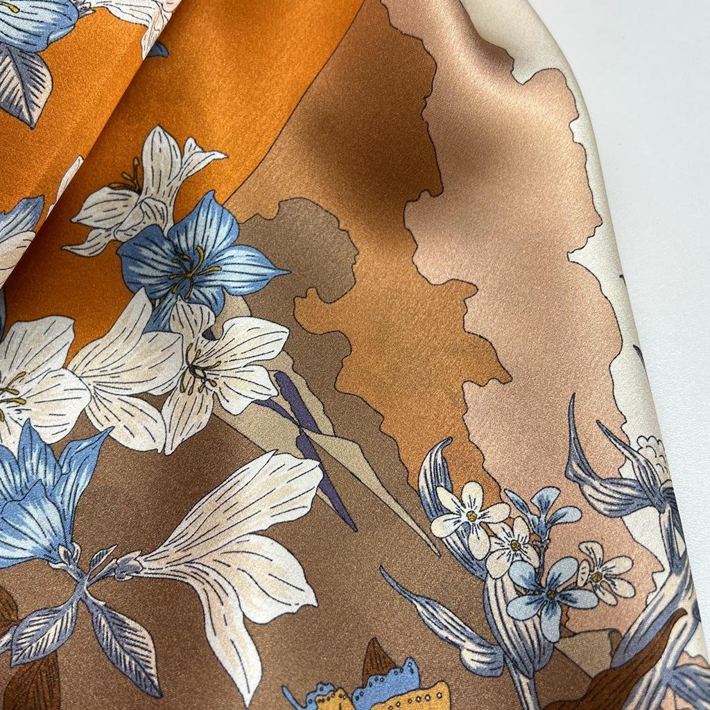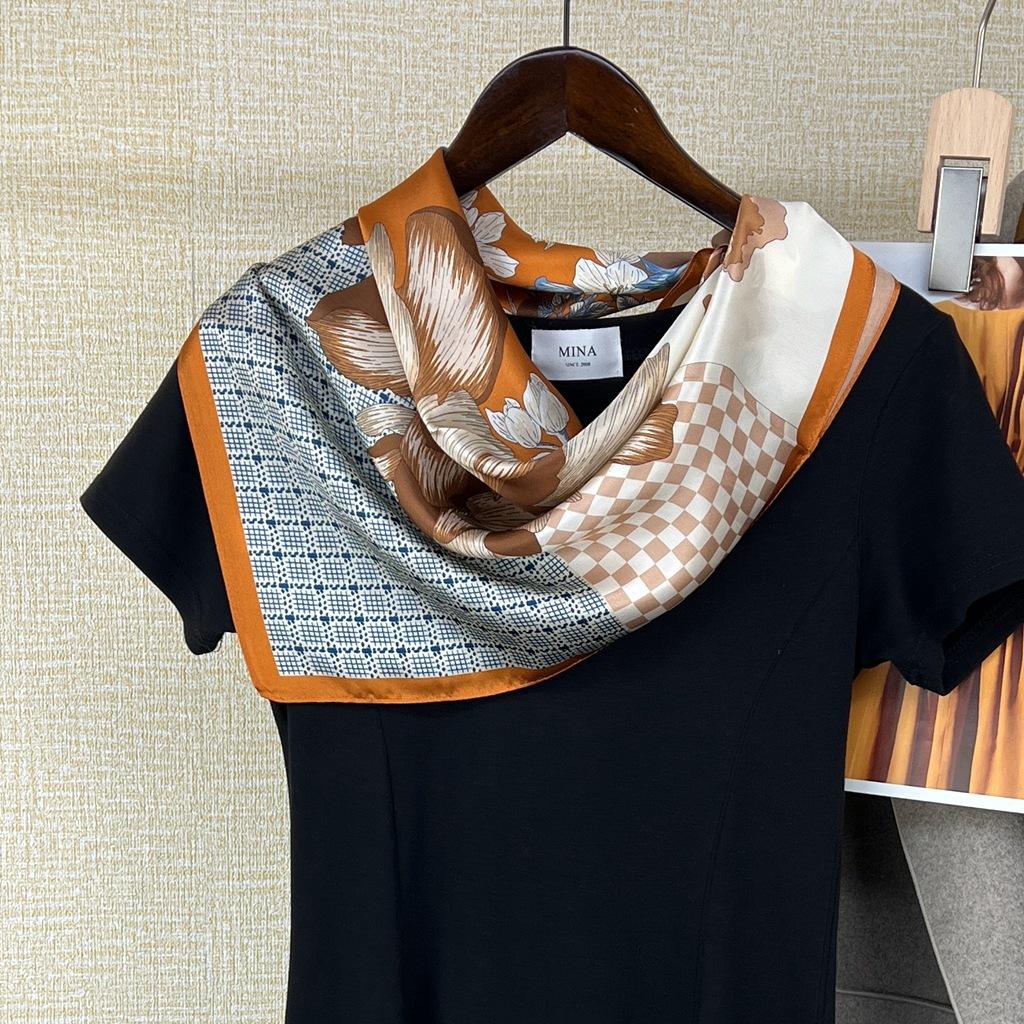 Bufanda cuadrada de seda morera 100% estilo pastoral de 70 cm, bufanda fina de primavera y otoño para mujer, bufanda de seda para regalo